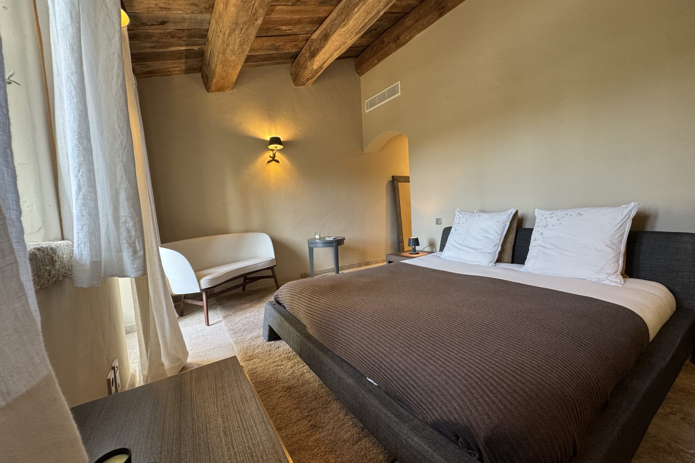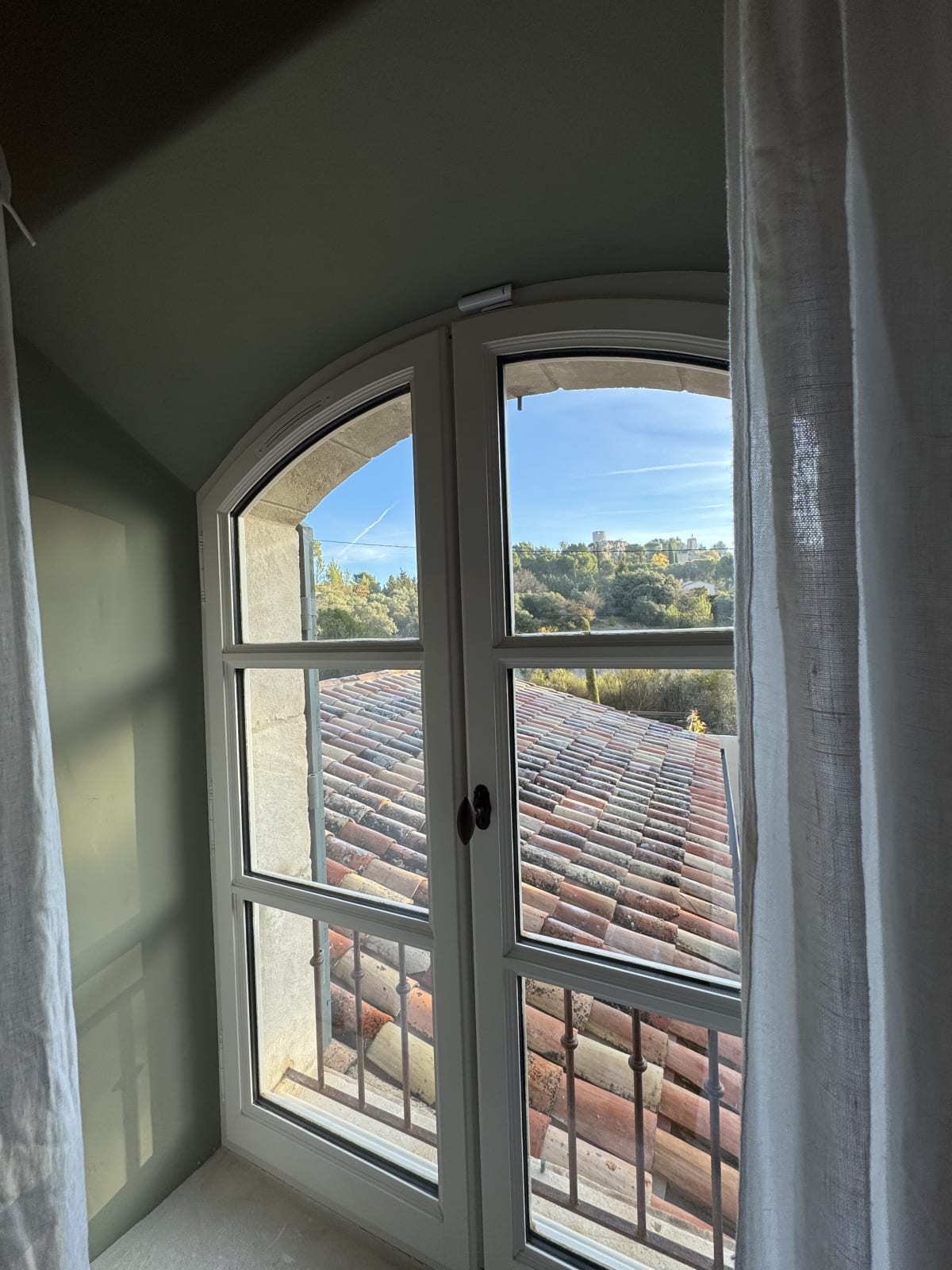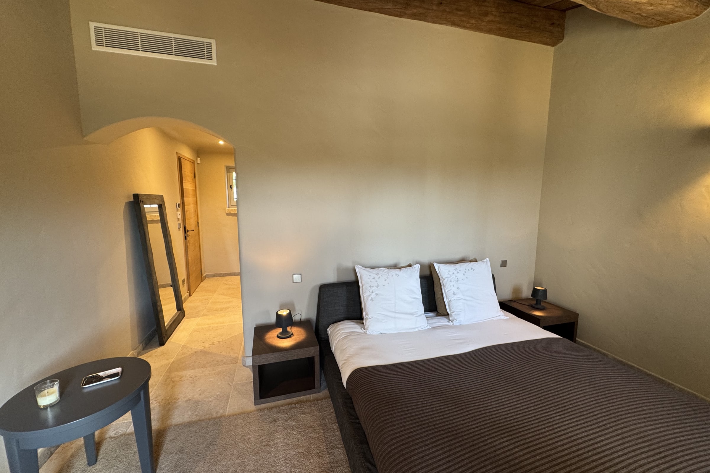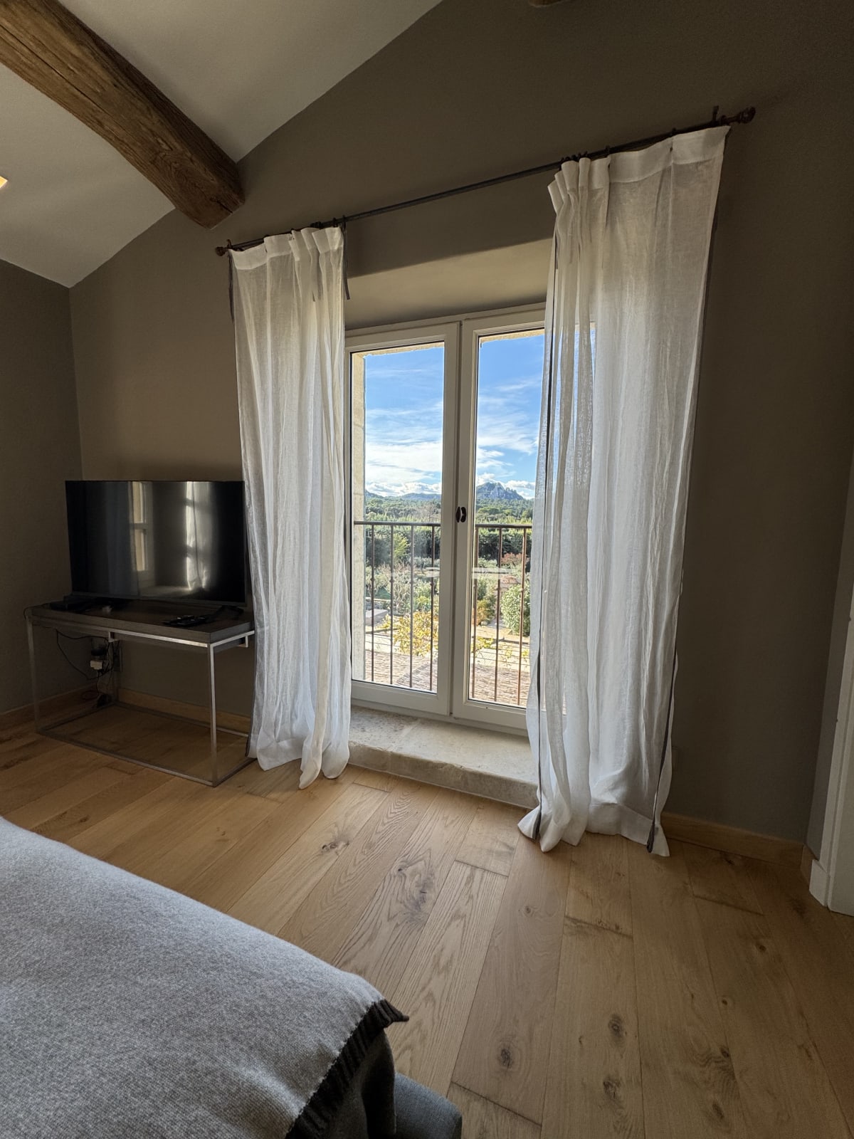 Bedroom 6: king-size bed 180x200 cm, dressing room, TV, bathroom with double sink, shower and WC. Panoramic view of the Alpilles