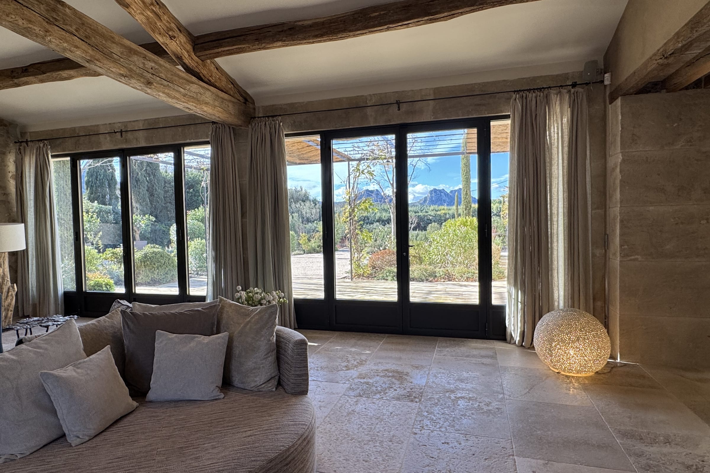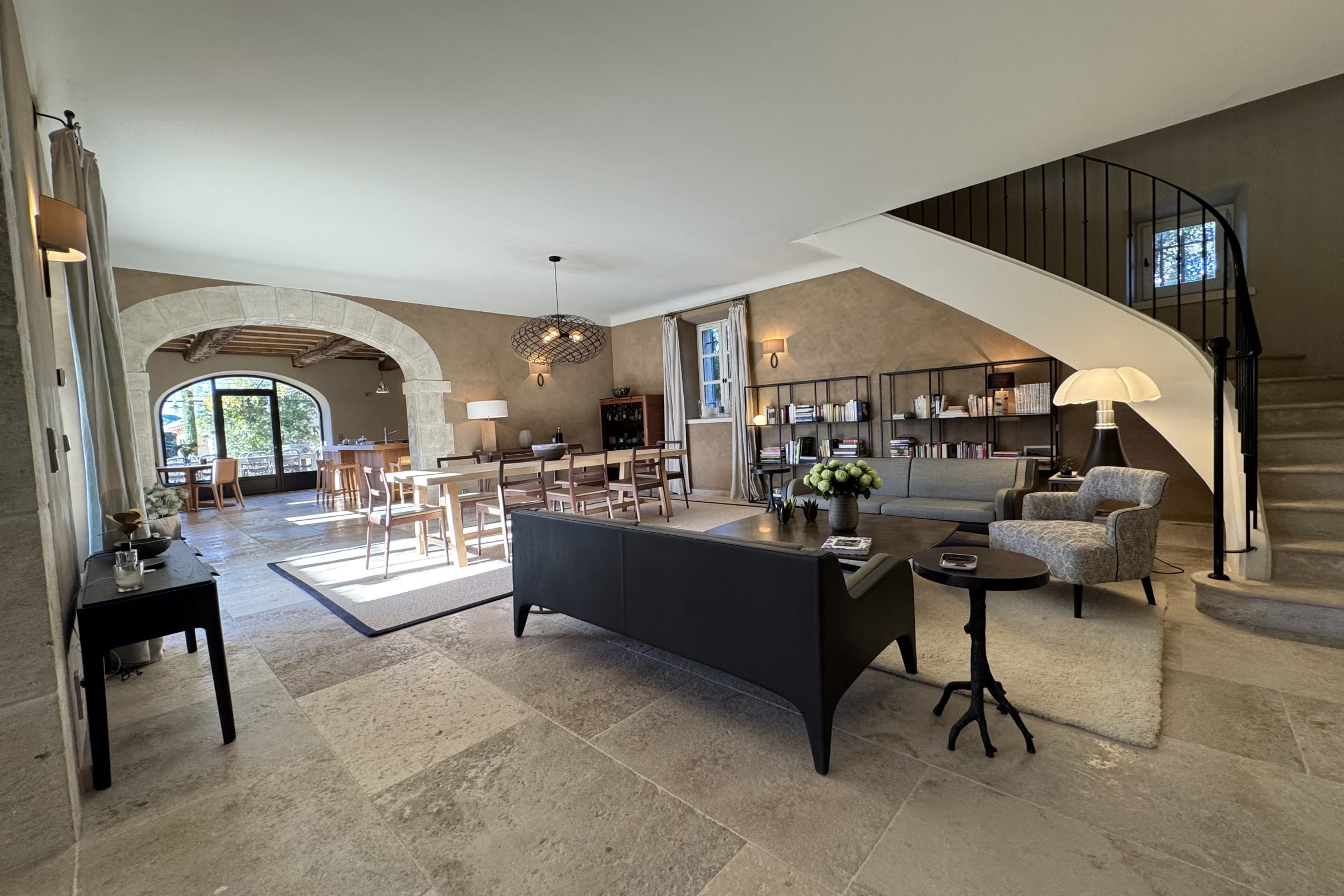 Just a 3-minute walk from the center of the emblematic village of Eygalières, this sumptuous 380 m² property, fully renovated in 2025, embodies the perfect alliance between Provençal authenticity and contemporary luxury. Set on a fully enclosed 2,300 m² landscaped plot, it benefits from a privileged location offering stunning dual views: on one side, the majestic panorama of the Alpilles mountain range, on the other, the rooftops and authentic charm of the village of Eygalières. This exceptional residence can accommodate up to 12 guests in absolute comfort.