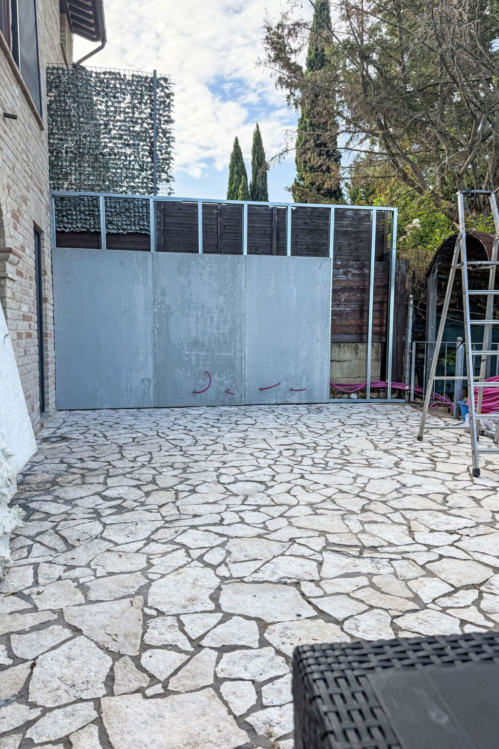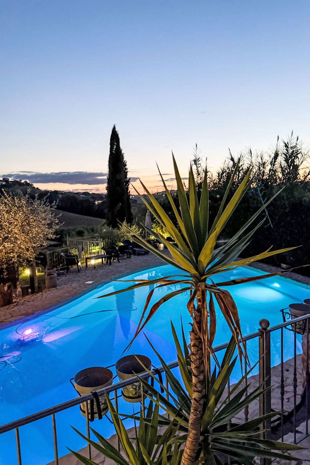 3-room villa 160 m2 on 2 levels. Stylish furnishings: living/sleeping room with 1 double sofabed and TV. Exit to the garden. Open dining room with dining table. Open kitchen (oven, dishwasher, Gas stove, toaster, kettle, microwave, freezer, electric coffee machine). Sep. WC. Upper floor: 1 room with 1 bed and 1 double bed. 1 room with 1 bed and 1 double bed. Shower/WC, hydro massage bath. Gas heating, air-conditioning. Balcony 10 m2, large terrace 50 m2 partly roofed. Terrace furniture, box-room. Beautiful panoramic view of the countryside. Facilities: washing machine, safe, baby cot, hair dryer. Internet (WiFi, free). Please note: non-smoking house. Maximum 2 pets/ dogs allowed. Fire extinguisher. IT109018C2IK328XU5