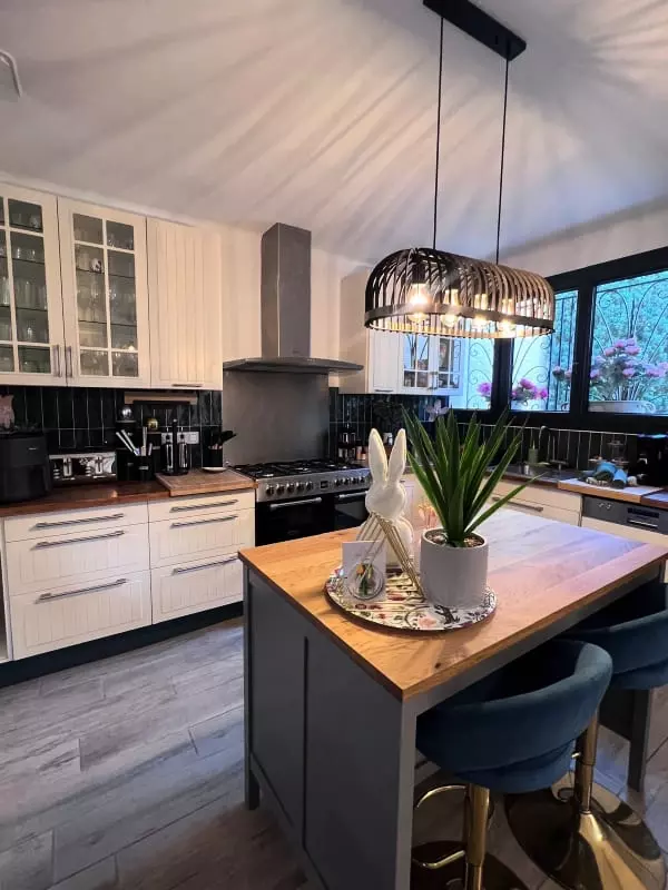 This 100m² house consists of a living room with a television, a dining room, and a fully equipped and furnished open-plan kitchen. It has three comfortable bedrooms, each with a television and air conditioning, as well as a bathroom with a shower.