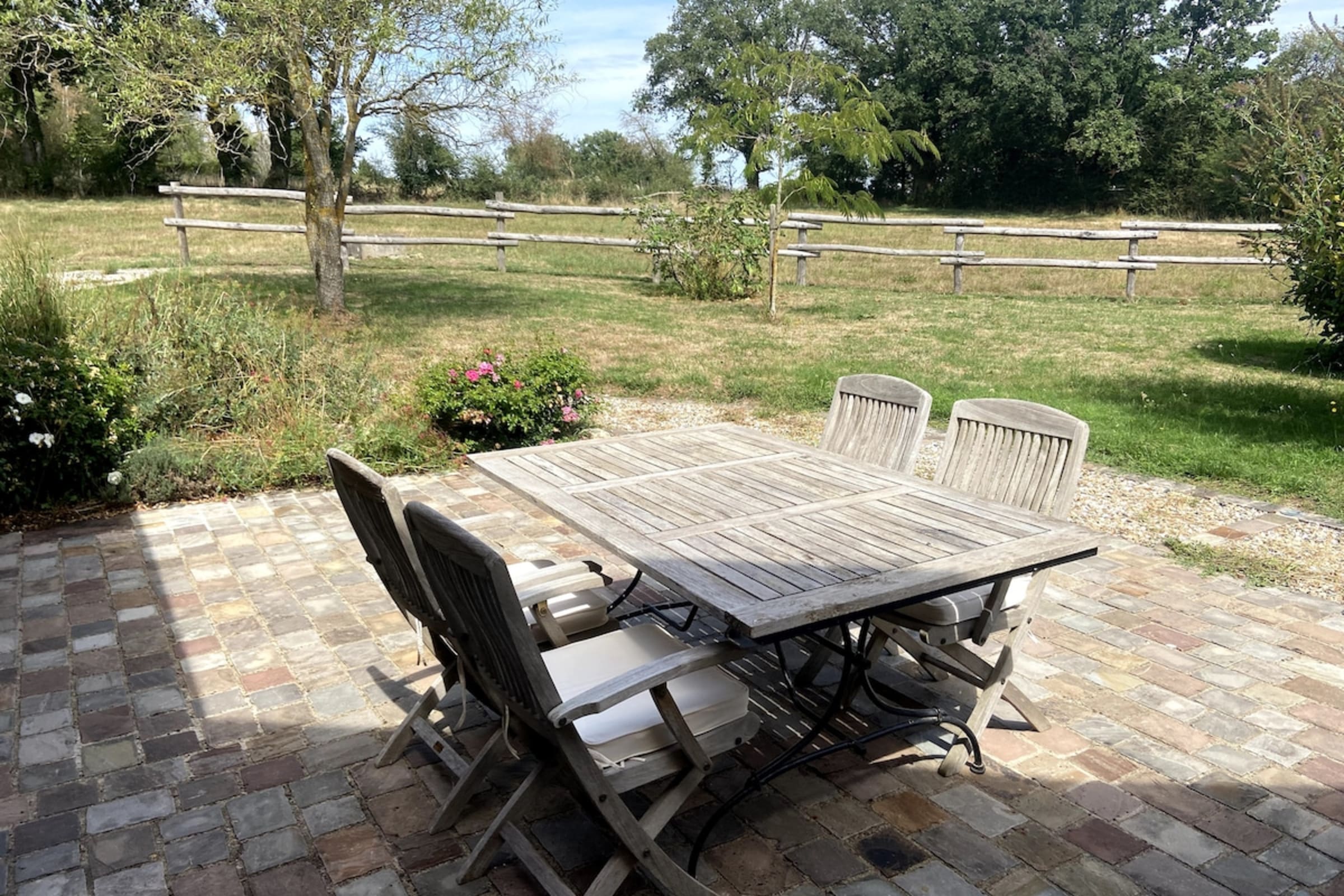 Surrounded by hedges, the property ensures privacy while opening onto calming views of the surrounding fields.