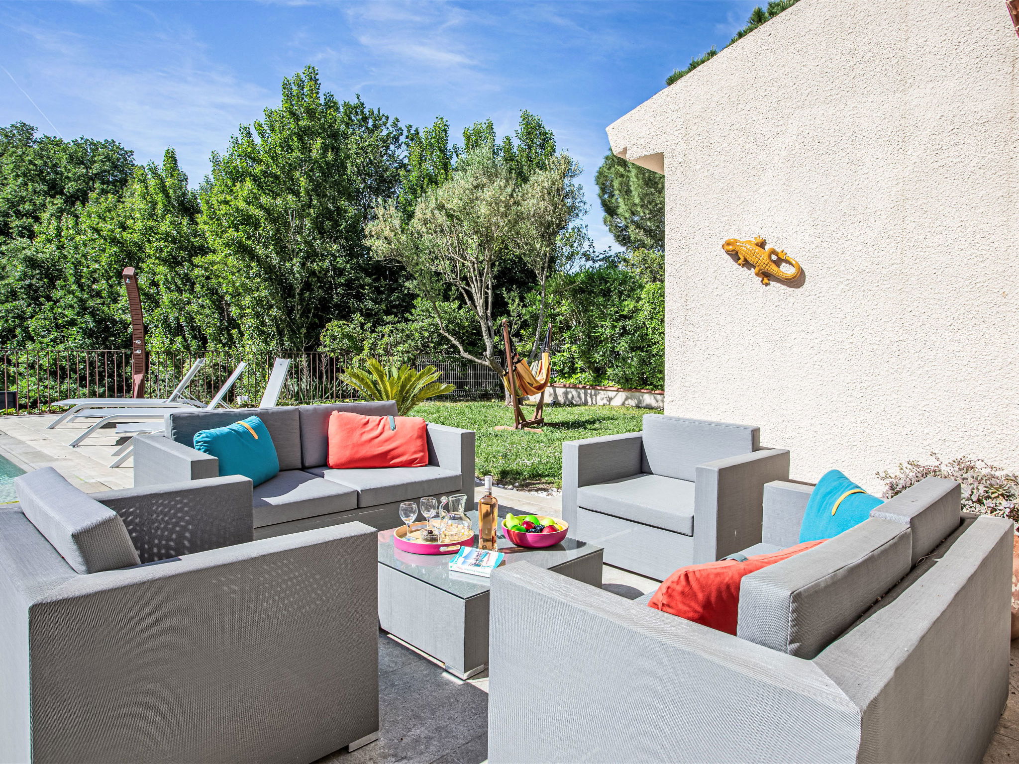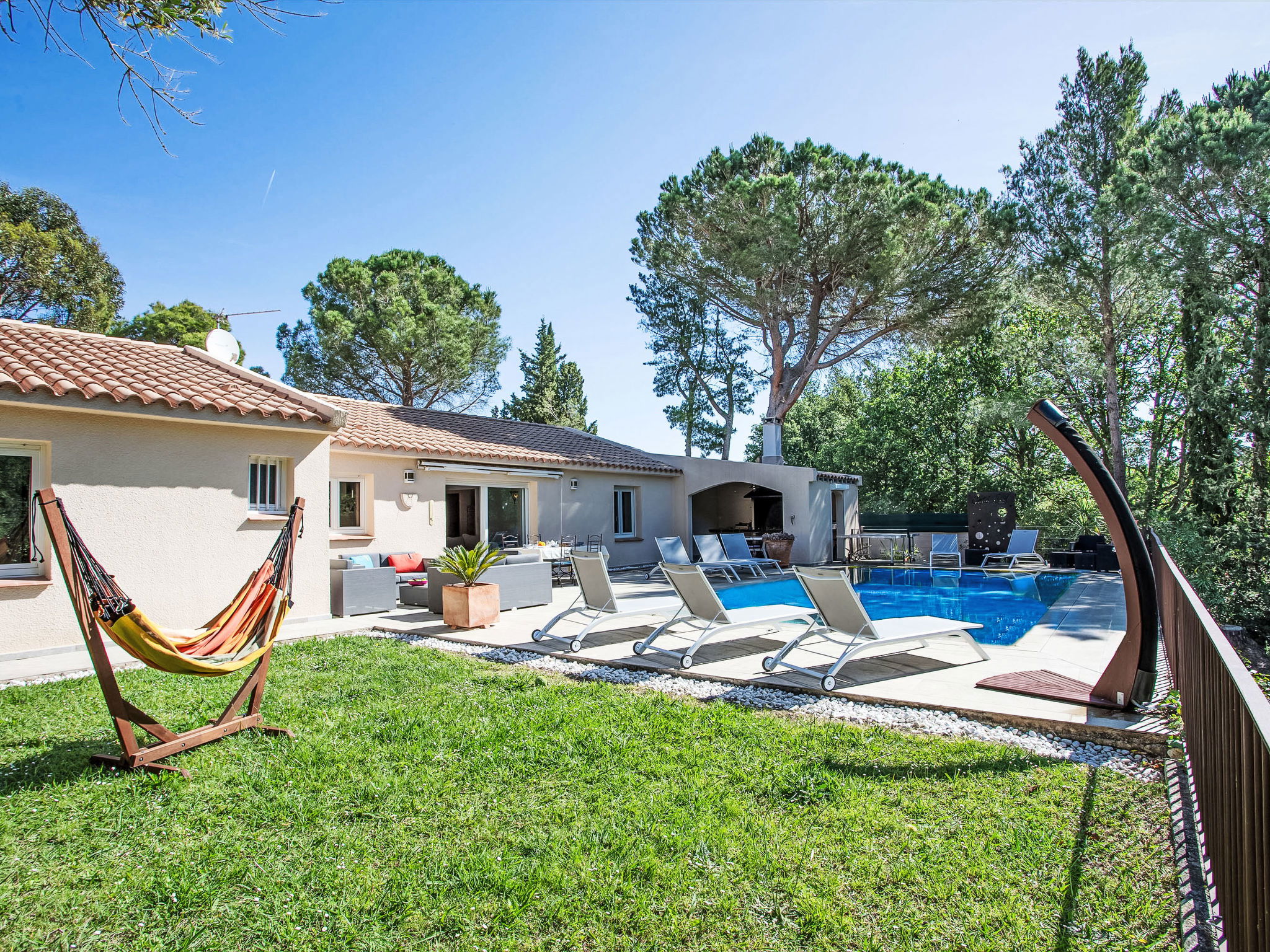 Fourques 8 km from Thuir: Single-family house "Côté Sud". In the resort 50 m from the centre of Fourques, in a quiet position in the residential district, 23 km from the sea, 23 km from the beach. Private: property 5'000 m2 (fenced), well-kept garden (fenced), swimming pool angular, heated, with privacy (9 x 4 m, depth 120 - 200 cm, seasonal availability: 01.Apr. - 15.Oct.) with shutter cover. Outdoor shower, pool house with cooking stove, table tennis, boules, terrace, garden furniture, barbecue house, pool maintenance by the owner/gardener. Parking (for 5 cars) on the premises. Grocery 50 m, restaurant 100 m, bakery 50 m, bus stop 100 m, railway station "Perpignan" 20 km, sandy beach "Saint Cyprien" 23 km. Sports harbour 23 km, golf course (18 hole) 23 km. Nearby attractions: le Monastir del Camp 4 km, Collioure 33 km, Thuir, cité du Byrrh et ses caves 8 km, Castelnou, village médiéval & château 9 km, Carcassonne 132 km, Espagne 24 km. Well-known lakes can easily be reached: Lac de Villeneuve de la Raho 14 km, Lac de St Jean Pla de Corts 5 km. Hiking paths: St Martin du Canigou 54 km, Pic du Canigou 64 km, Lac des Bouillouses 89 km. Please note: car recommended.