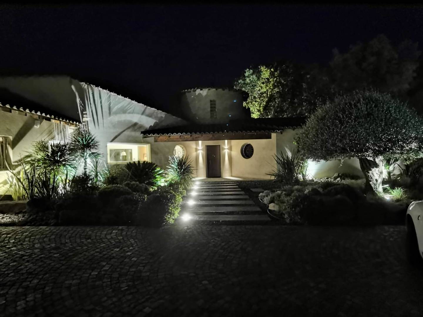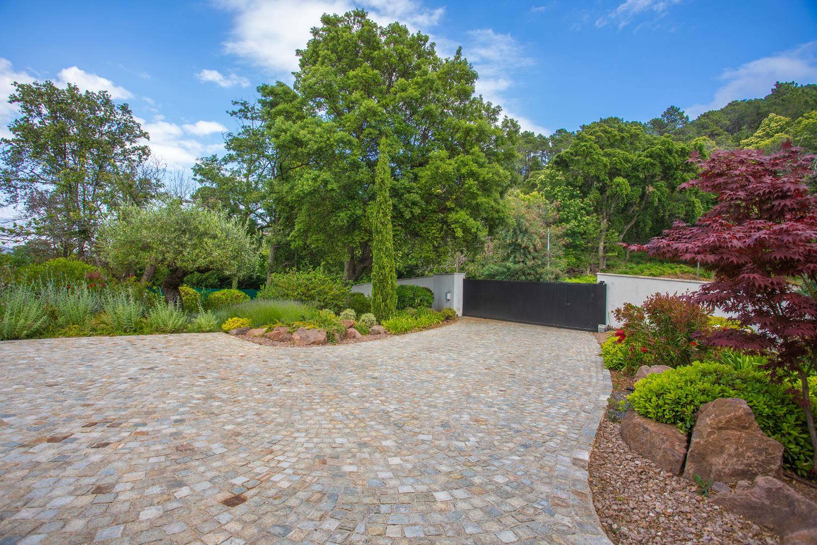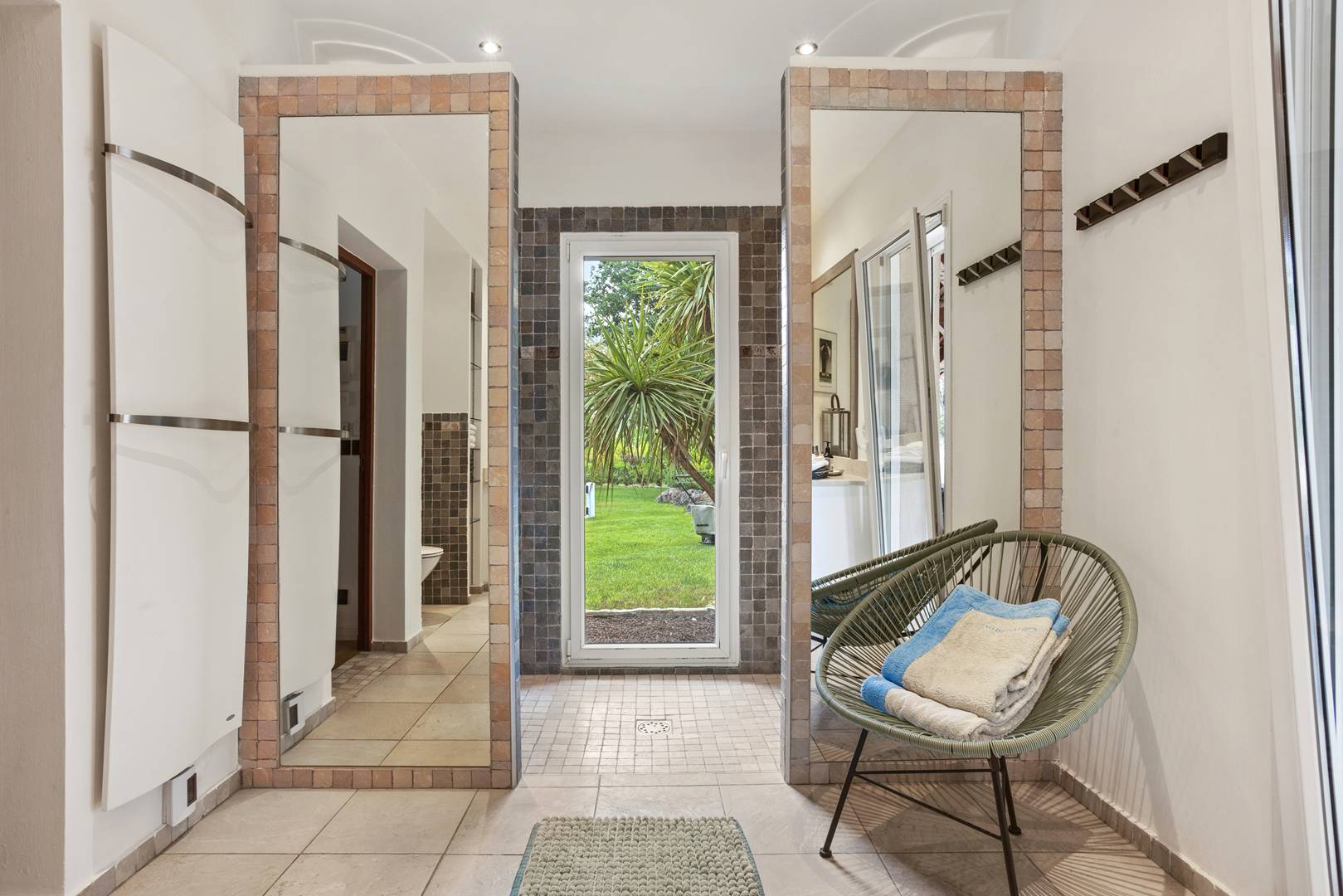 The one-hectare enclosed park showcases a beautiful Mediterranean landscape, with olive trees and pine trees. The large heated saltwater pool (10 x 6 m) can be heated on request and features a shallow beach area, ideal for children. The pool is secured with a perimeter alarm.