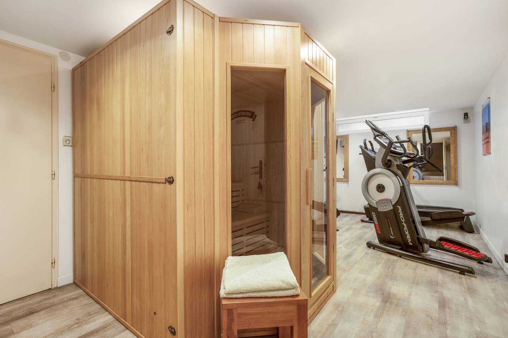 For your well-being, you will enjoy a private fitness room and sauna inside the villa. A guest WC is also available.