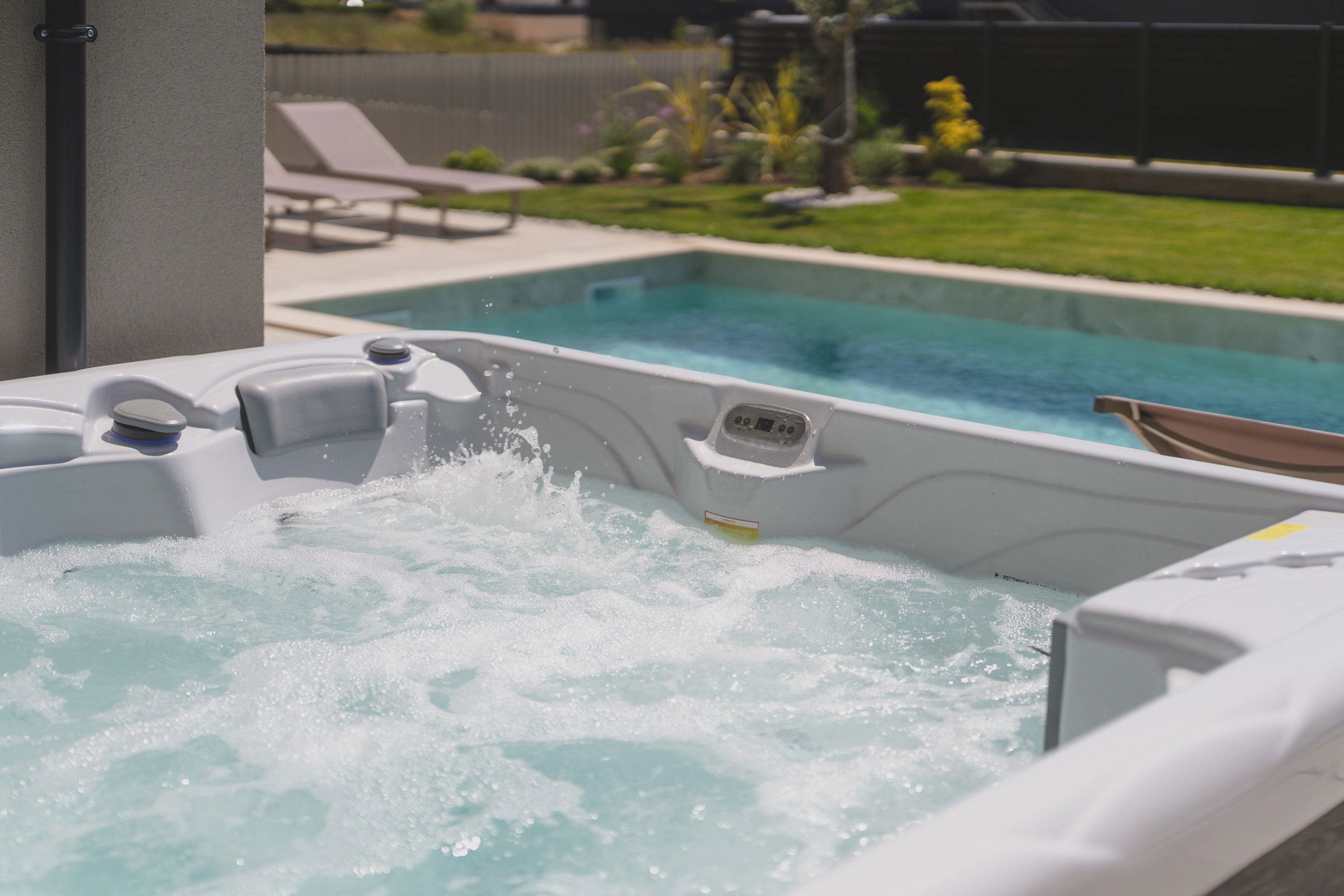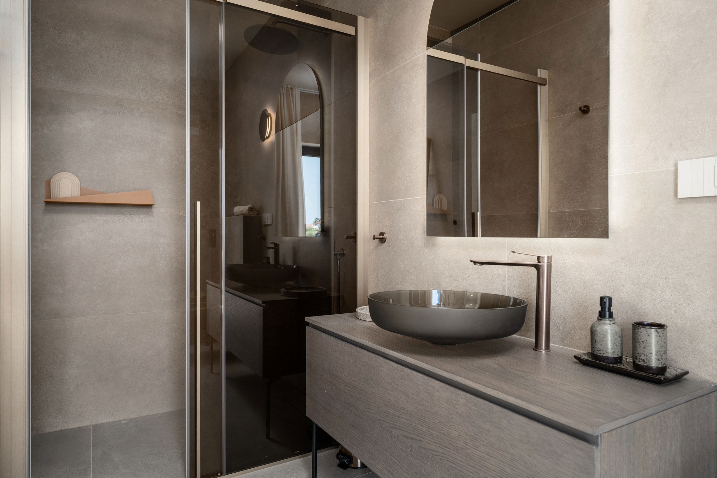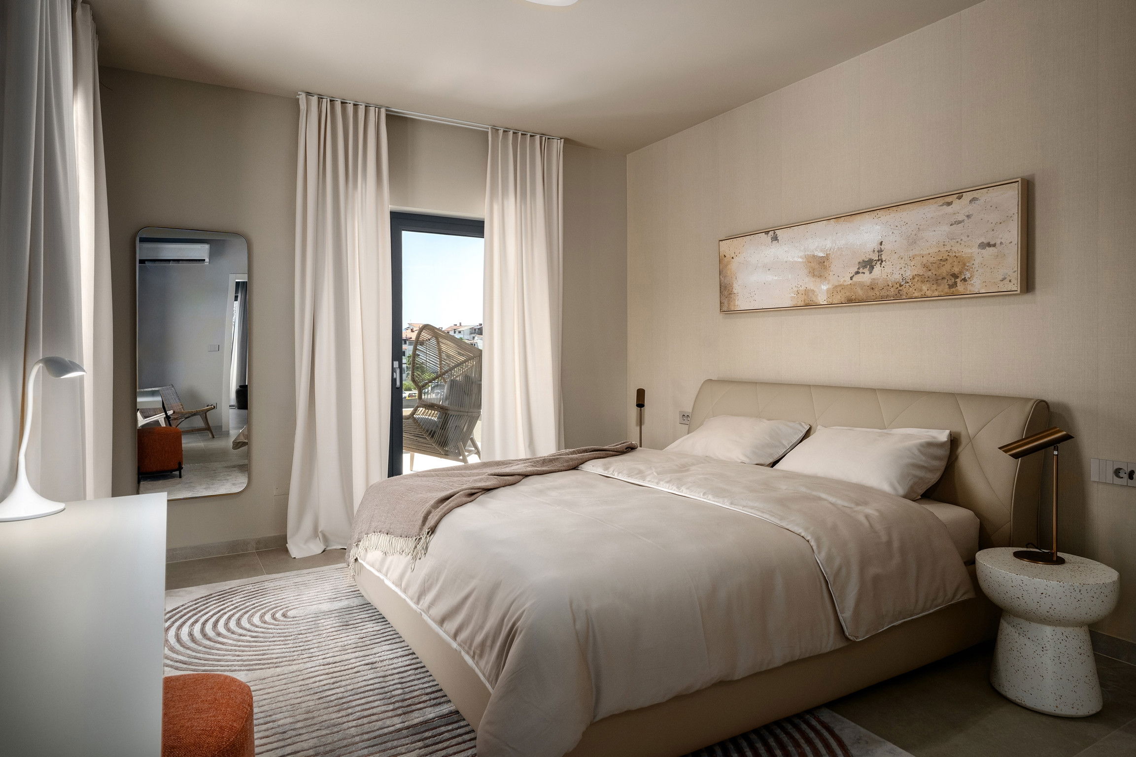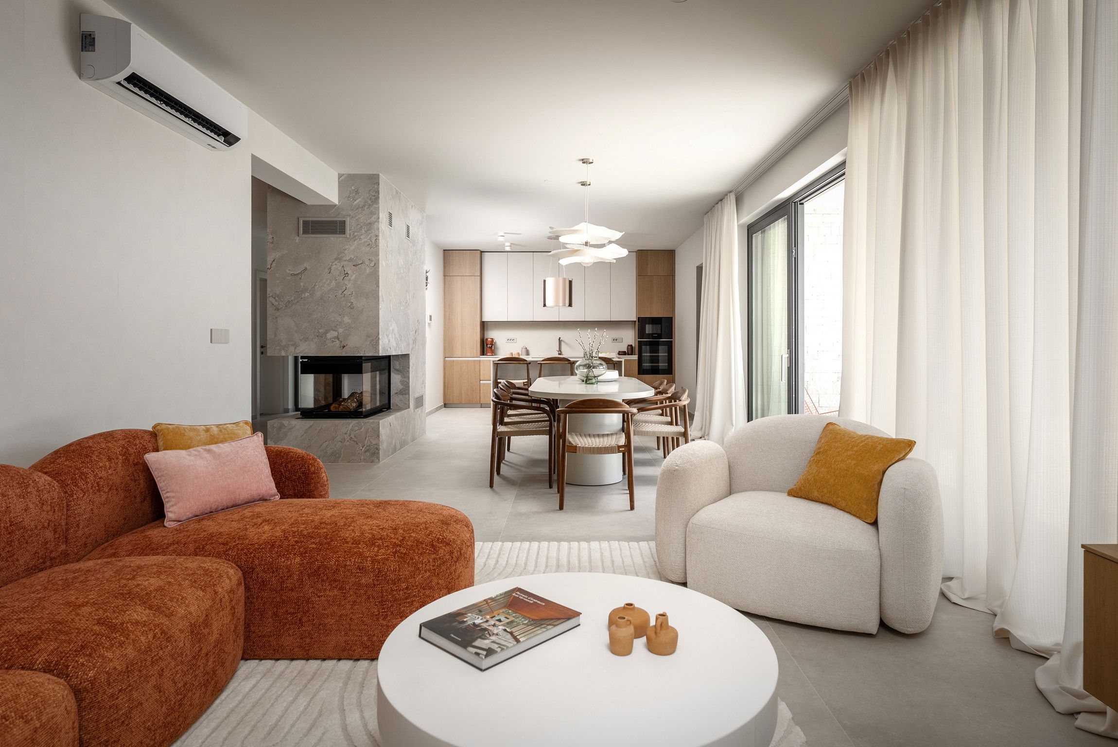 The heart of the villa opens onto a stunning 1000m2 outdoor area with a private 36 sq meter swimming pool and a relaxing jacuzzi, perfect for soaking up the sun during the day or unwinding under the stars in the evening. Comfortable loungers and outdoor seating create an inviting space for both relaxation and social gatherings. An outdoor kitchen ensures families can stay together even while preparing meals.