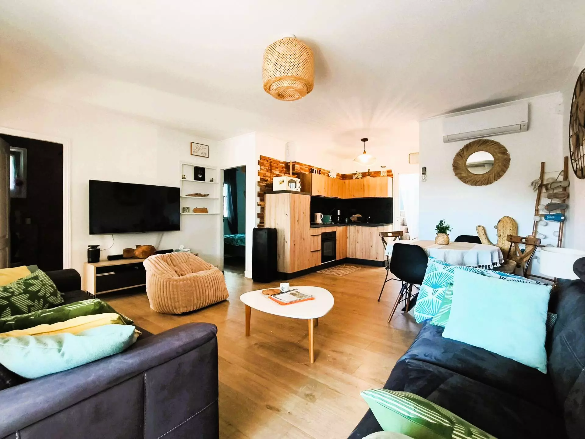 For your comfort: Wi-Fi, dishwasher, washing machine, microwave, oven and hob, air conditioning in the living room, refrigerator with freezer, deckchairs, gas griddle, a baby bed, televisions in the living room and bedroom, 1 Wii game console.