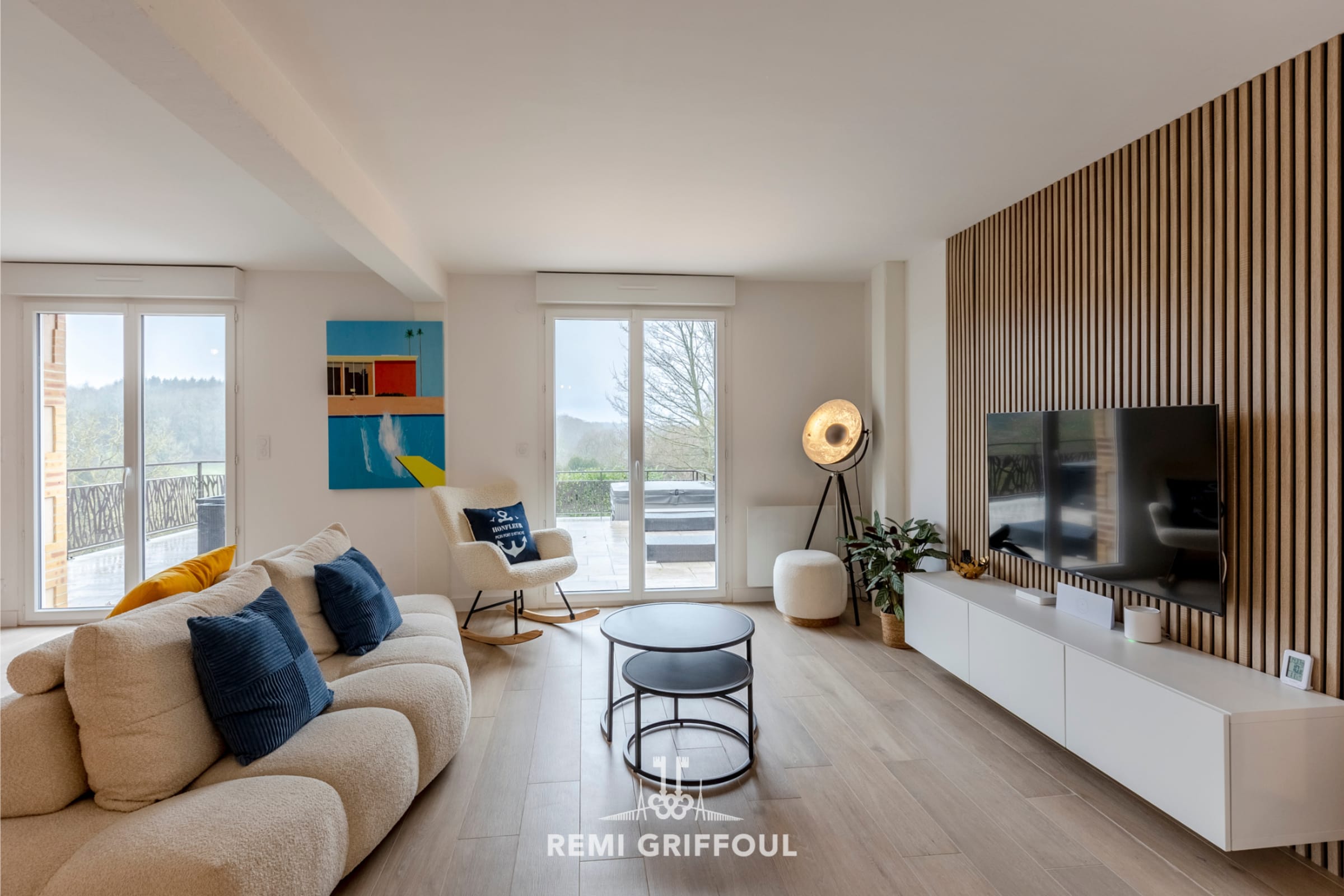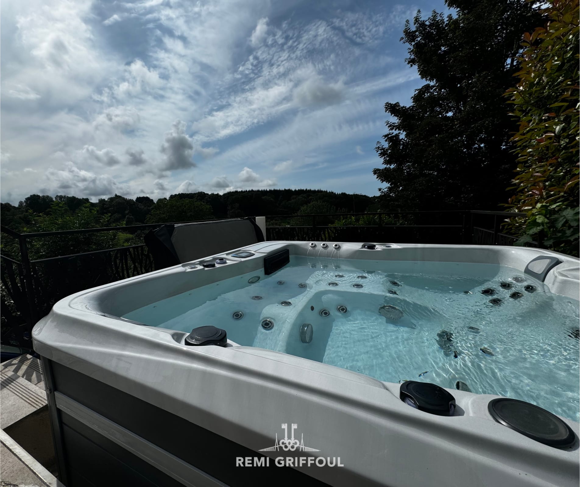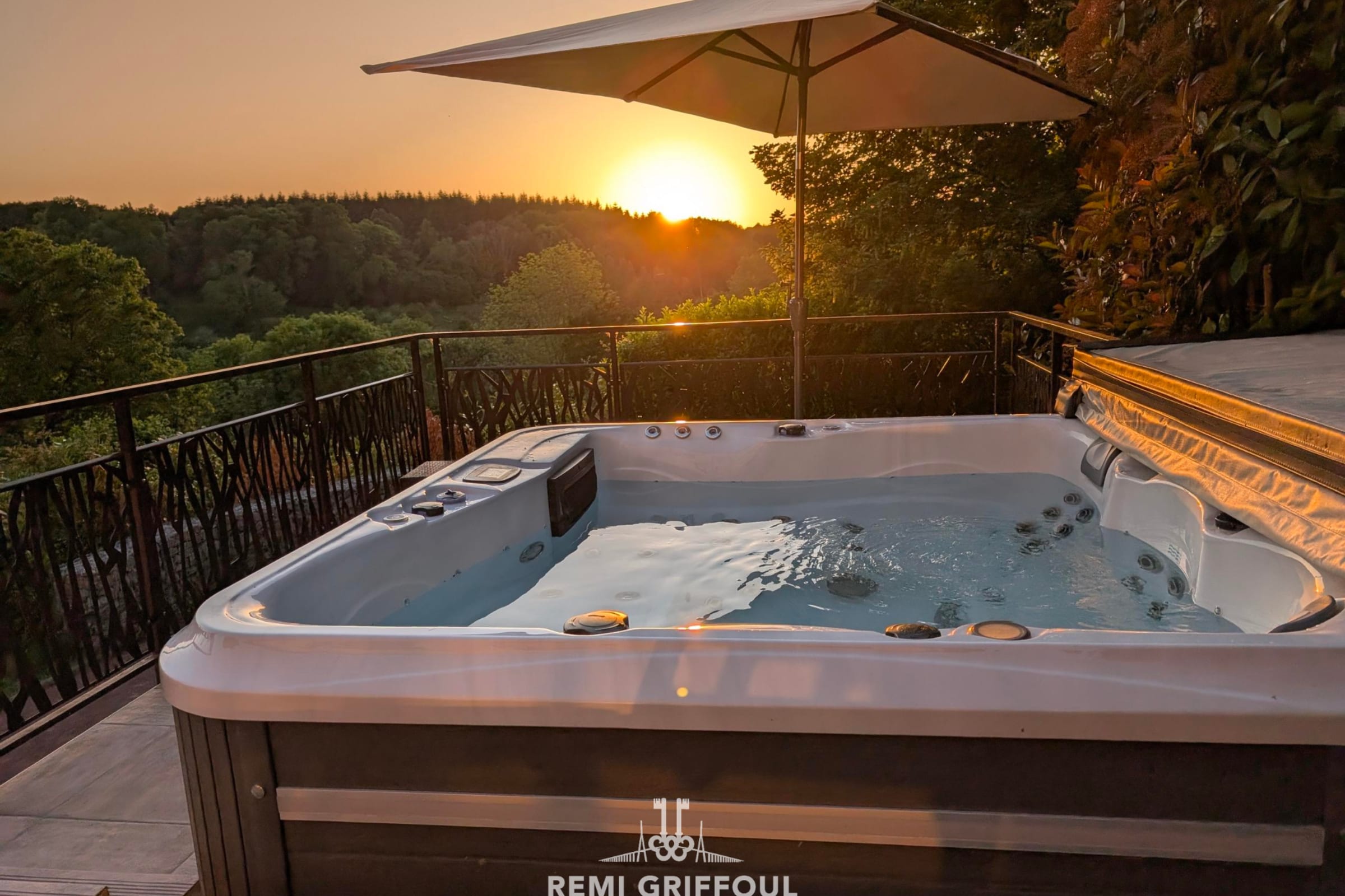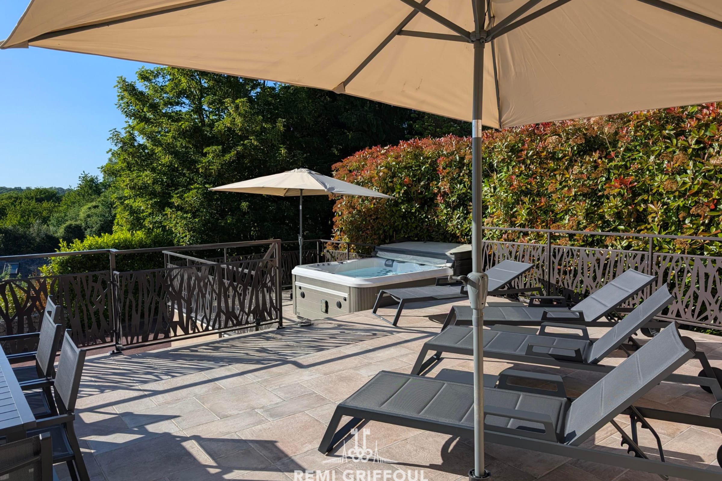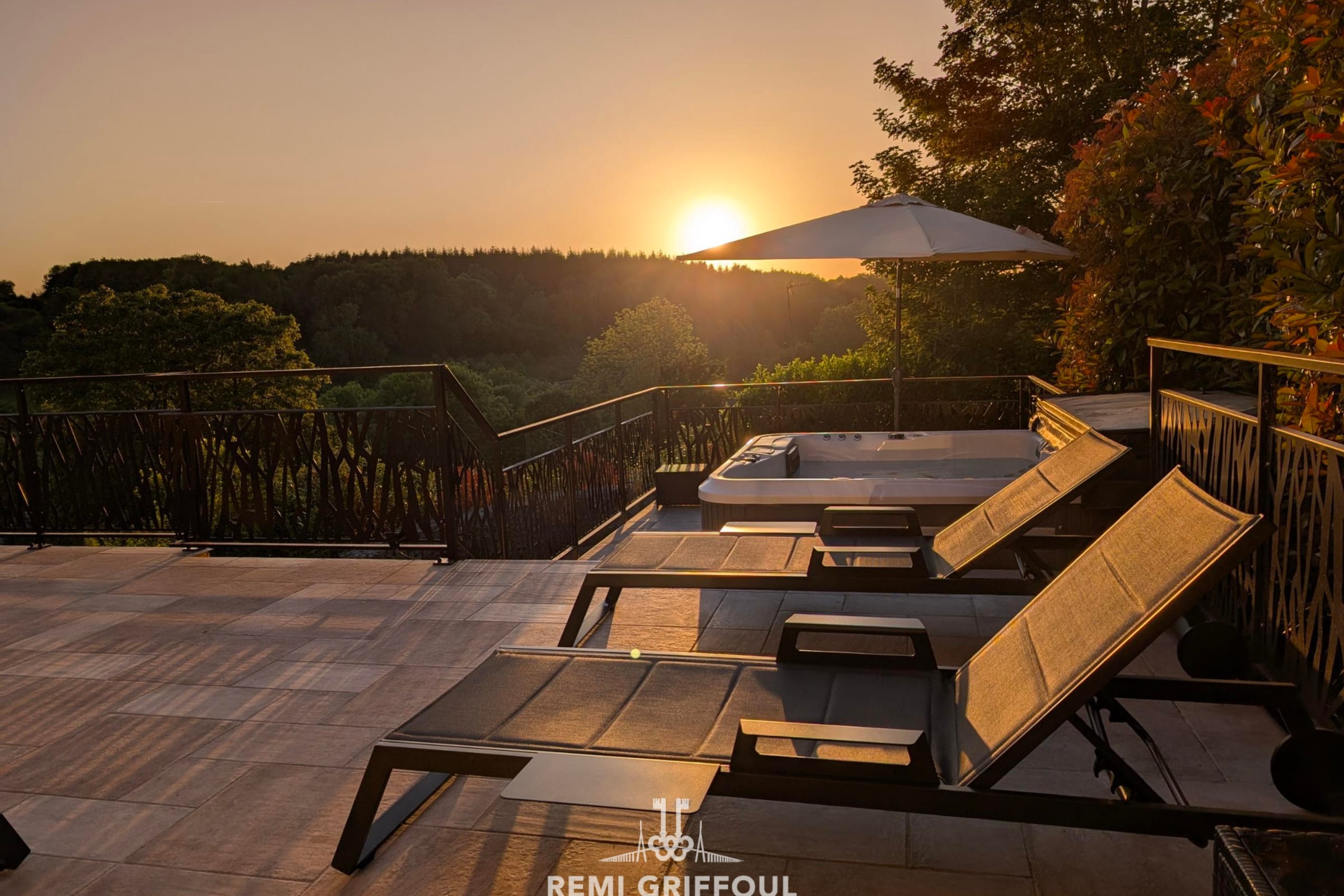 Adjacent to this living area, a large 40 m² terrace invites you to relax in the jacuzzi while admiring the valley view. You'll also find four sun loungers, a garden table, and an electric barbecue, perfect for enjoying outdoor moments.