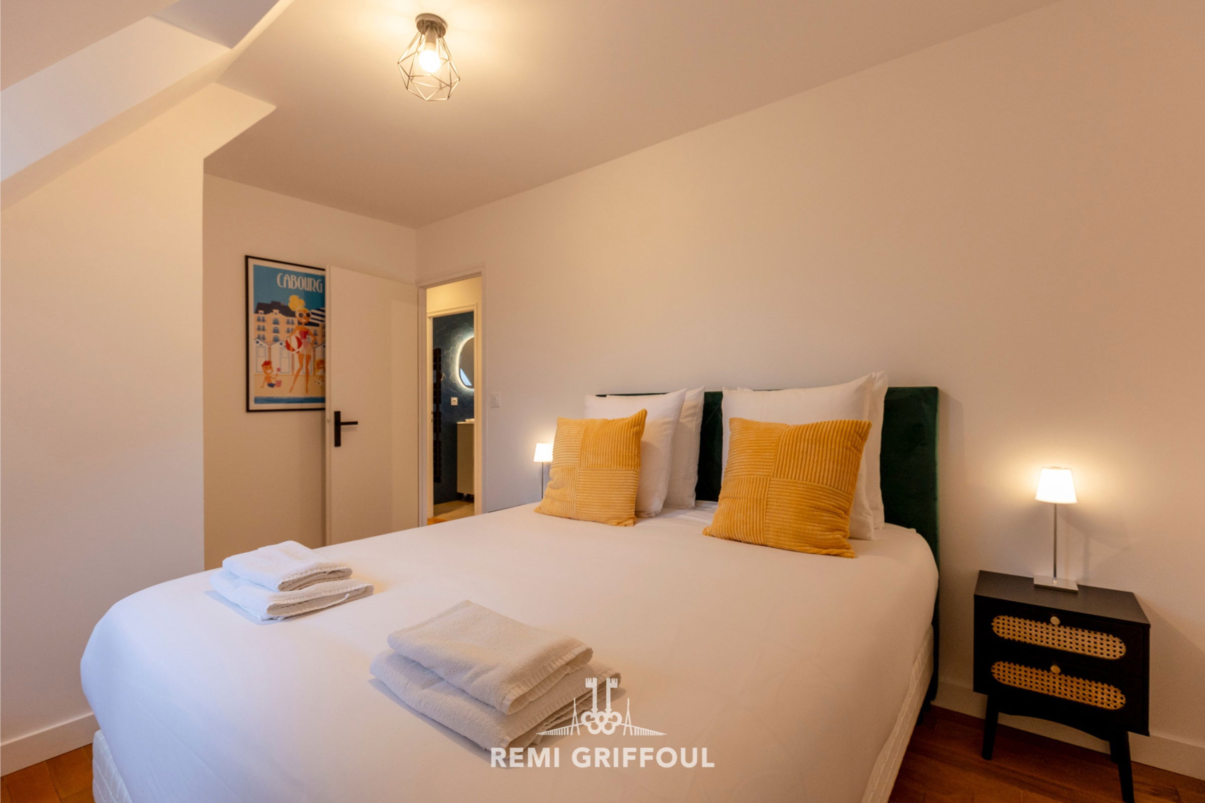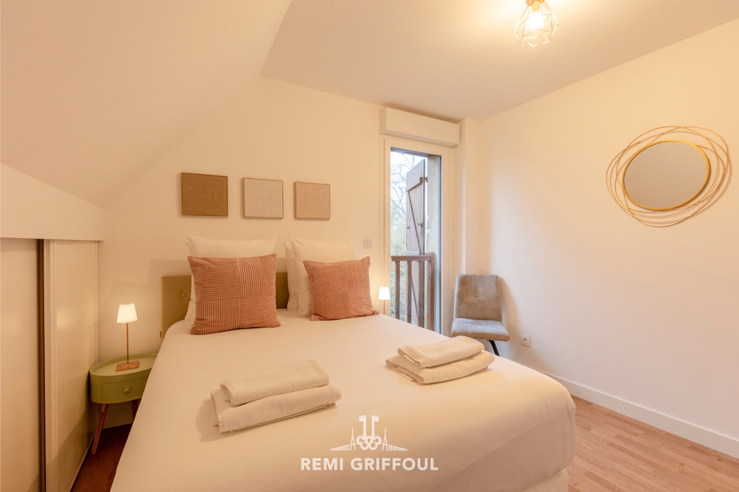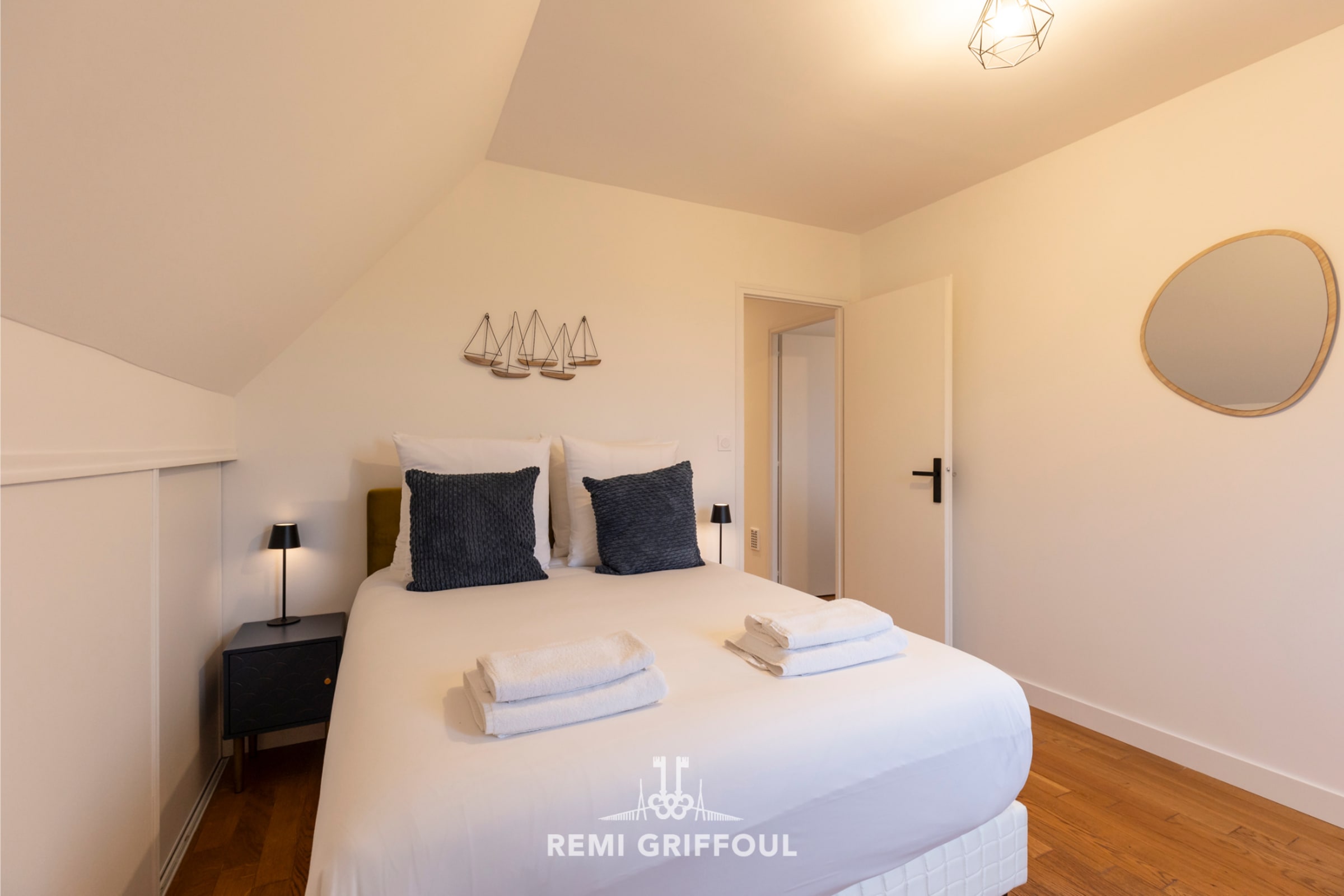 Upstairs, you'll find a bedroom with a 140x200 double bed, a bedroom with a 180x200 king-size bed and two others with 160x200 queen-size beds, a bathroom with bath and a separate toilet.