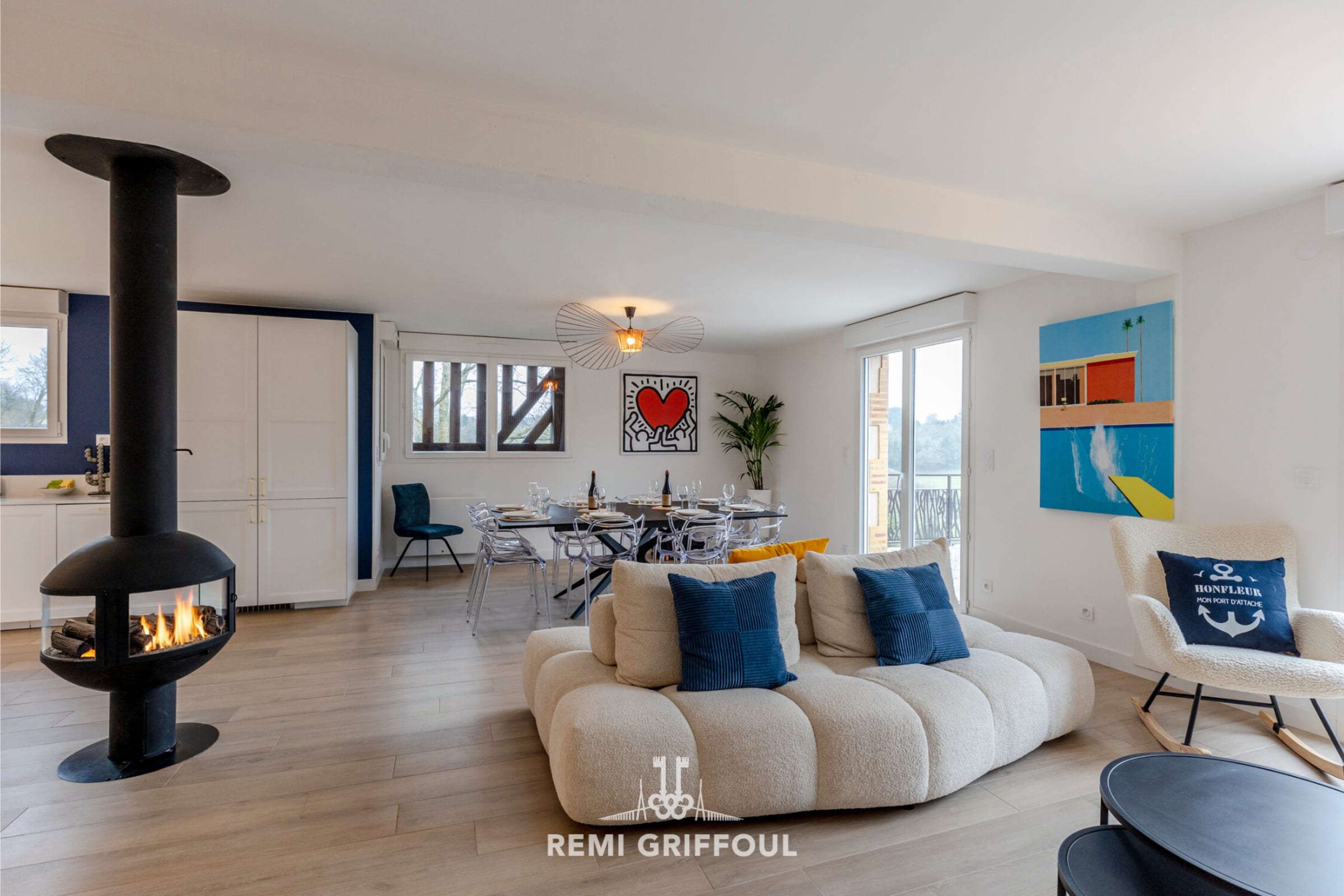 The cozy living room, equipped with a flat-screen TV with numerous streaming services included, is perfect for relaxation and sharing, while the dining area, with a wood-burning stove, sets the tone for convivial dinners in a warm ambiance.