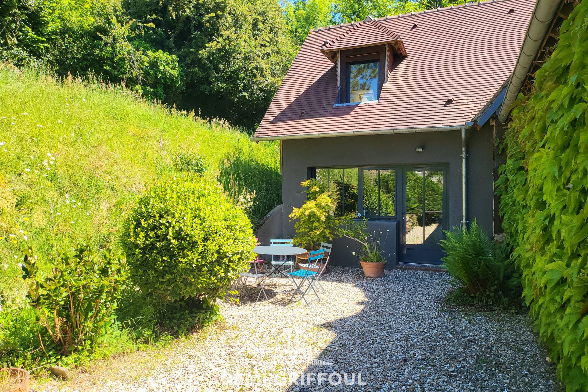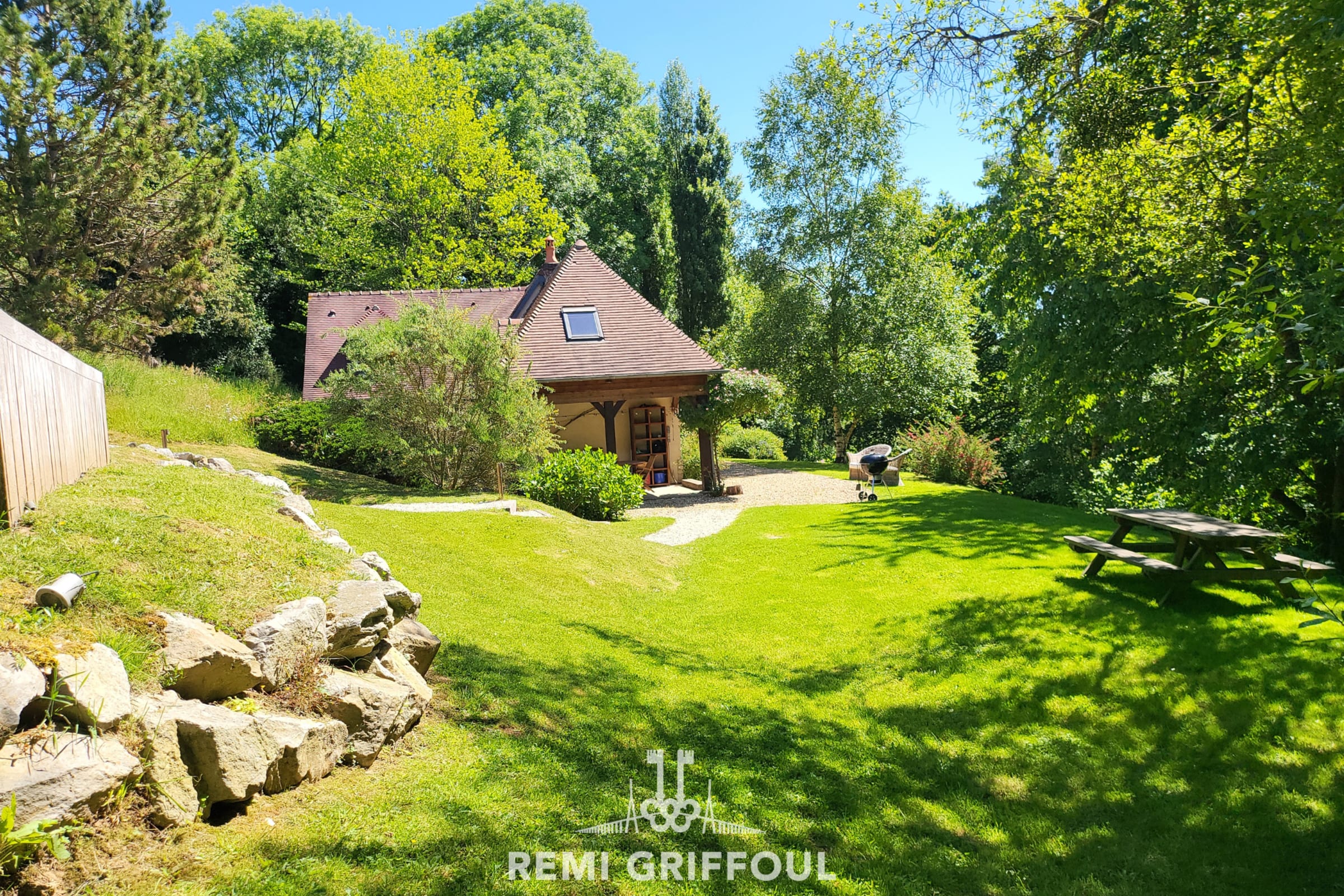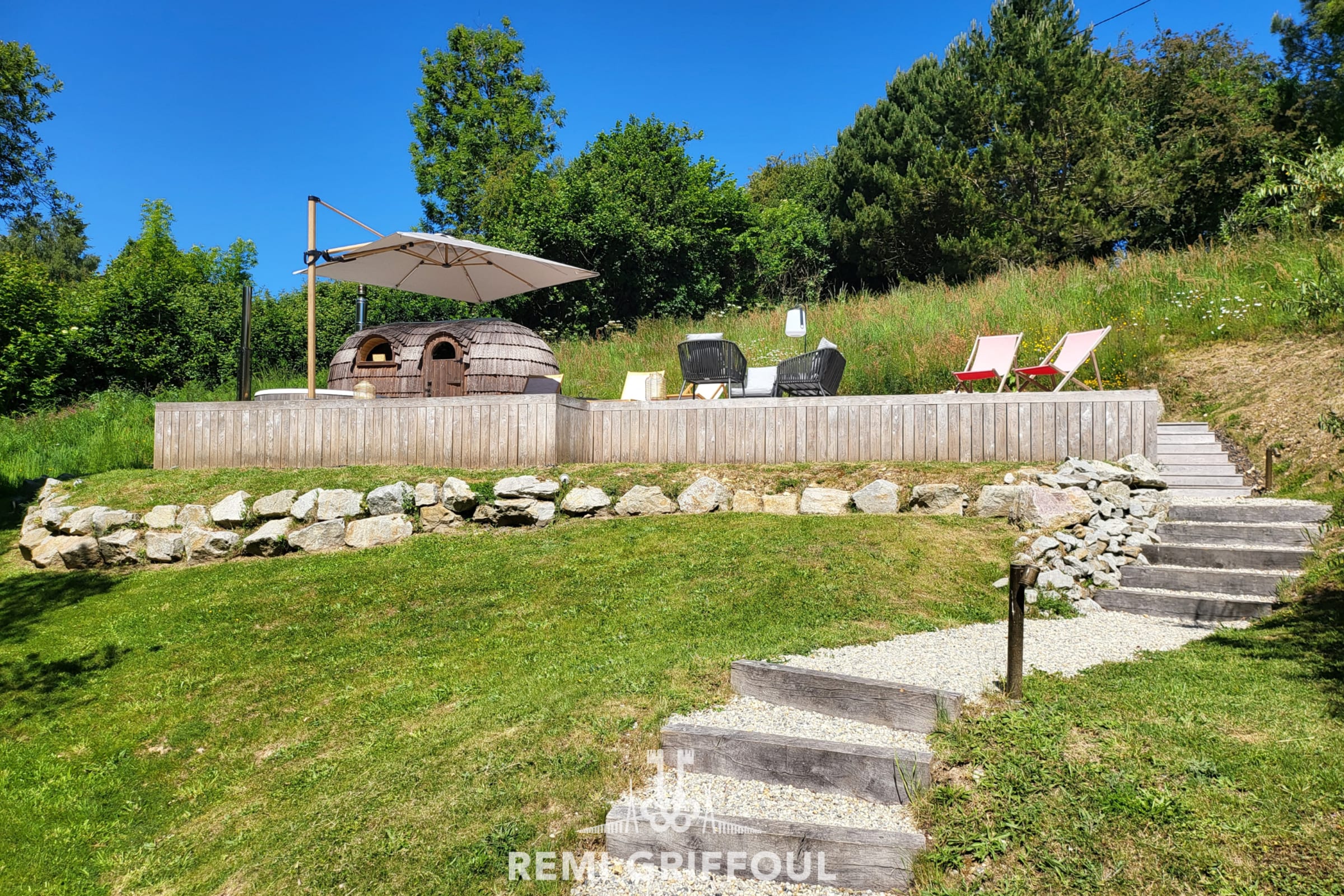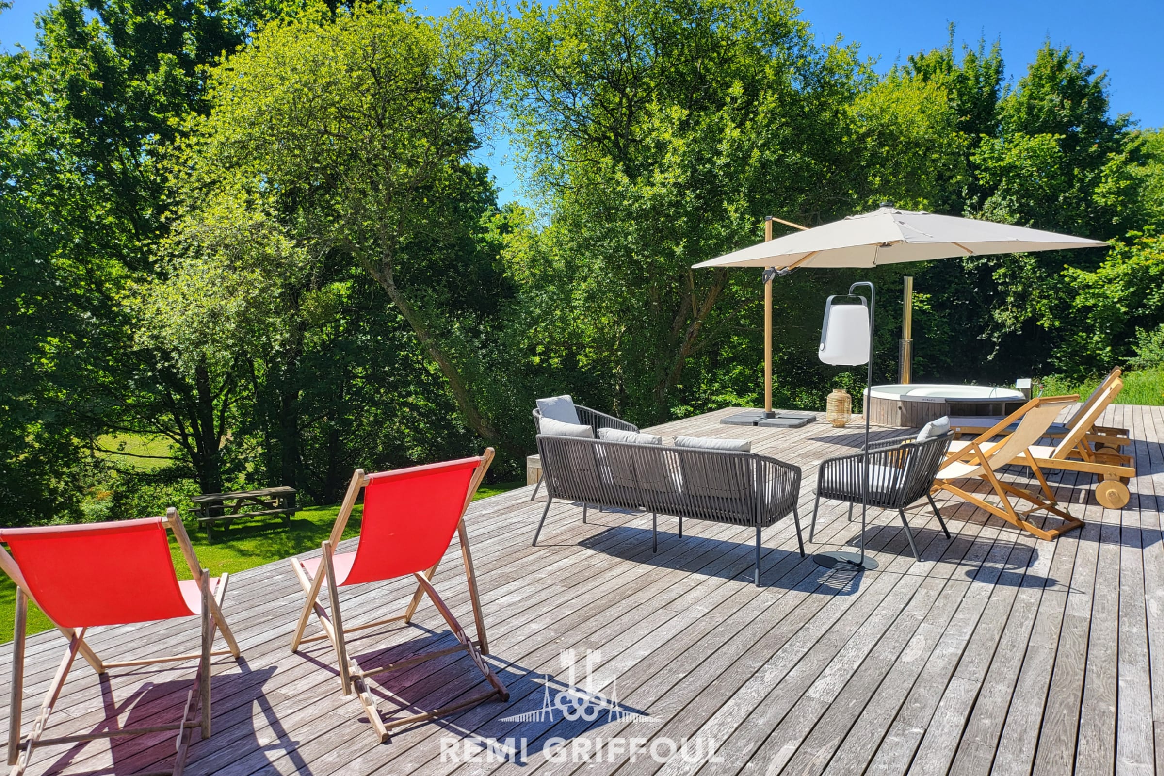Outside, the house offers a furnished terrace with a table, ideal for outdoor meals. You can also enjoy a large elevated terrace with a breathtaking view of the Pays d'Auge valley, perfect for unforgettable aperitifs or memorable yoga and meditation sessions.