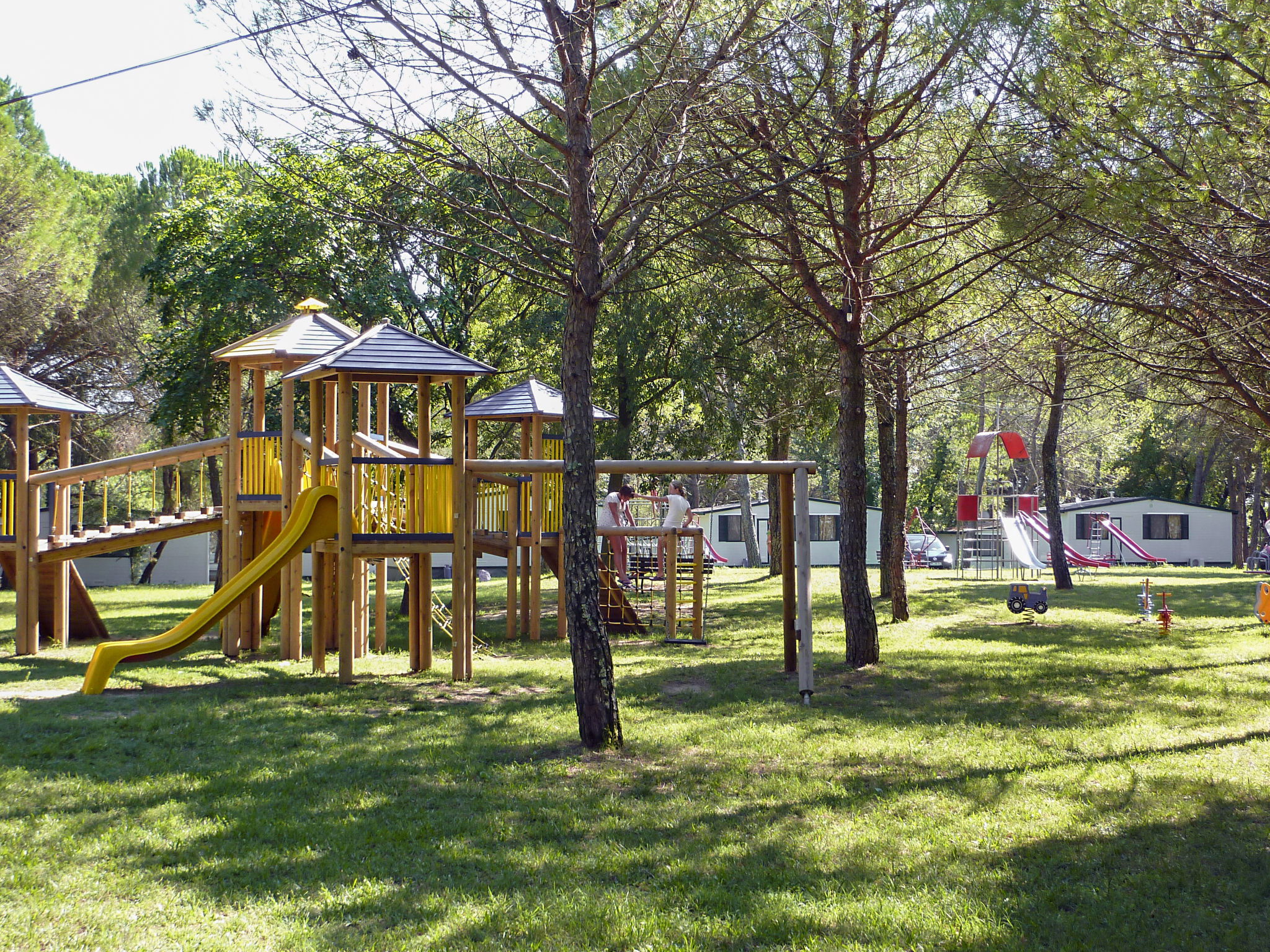 Child friendly resort "Belvedere Pineta Camping Village 4*". 173 houses in the resort. In the district of Belvedere 6 km from the centre of Aquileia, 7.5 km from the centre of Grado, 20 m from the sea, direct access to the beach, direct access to the lagoon. For shared use: natural state property 50 ha (fenced) with trees, swimming pool (25 x 12 m, seasonal availability: 01.May. - 21.Sep.). Children's pool, tennis (extra), table tennis, volleyball, beach volleyball, children's playground. In the complex: restaurant, bar, bistro, WiFi (extra). Shopping facilities, washing machine, tumble dryer (for shared use, extra), bicycle rental. Breakfast full board half board possible on request (extra). Supermarket 6 km, bus stop 1 km, railway station "Cervignano del Friuli" 14 km. Marina 7.5 km, cycle lane 1.3 km. Nearby attractions: Trieste 56 km, Riserva Naturale della Foce dell'Isonzo 20 km, Castello di Duino 32 km, Aquileia 6 km. Please note: entertainment in the season. Suitable for families. Obligation to wear bathing caps.