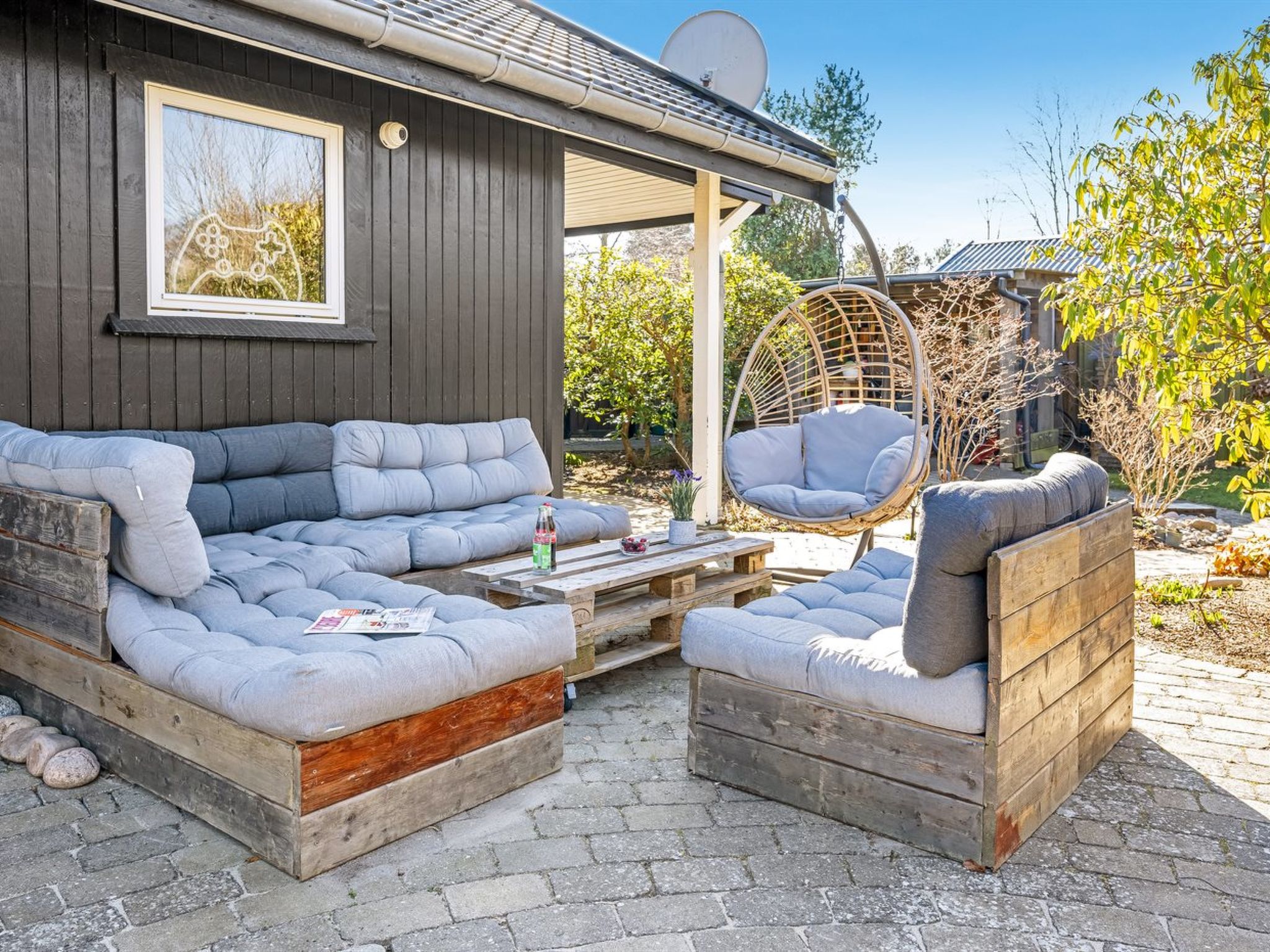 Single-family house, built in 1975. 1.3 km from the sea. Private: property 1'217 m2, well-kept garden. Barbecue. In the house: table football, trampoline, washing machine. Parking at the house. Grocery 1 km. The owner does not accept any youth groups.