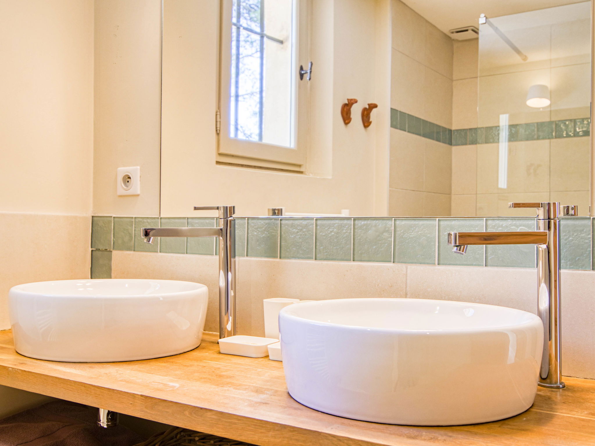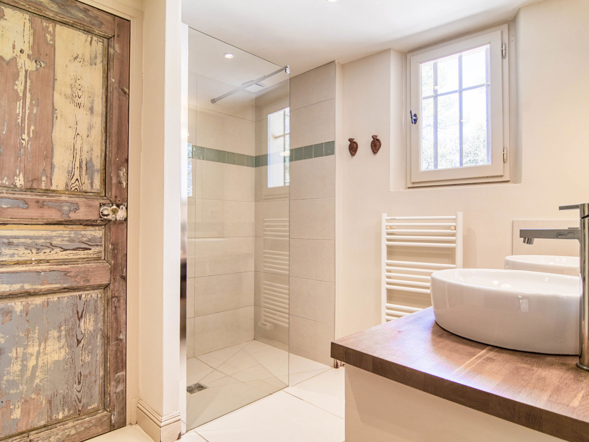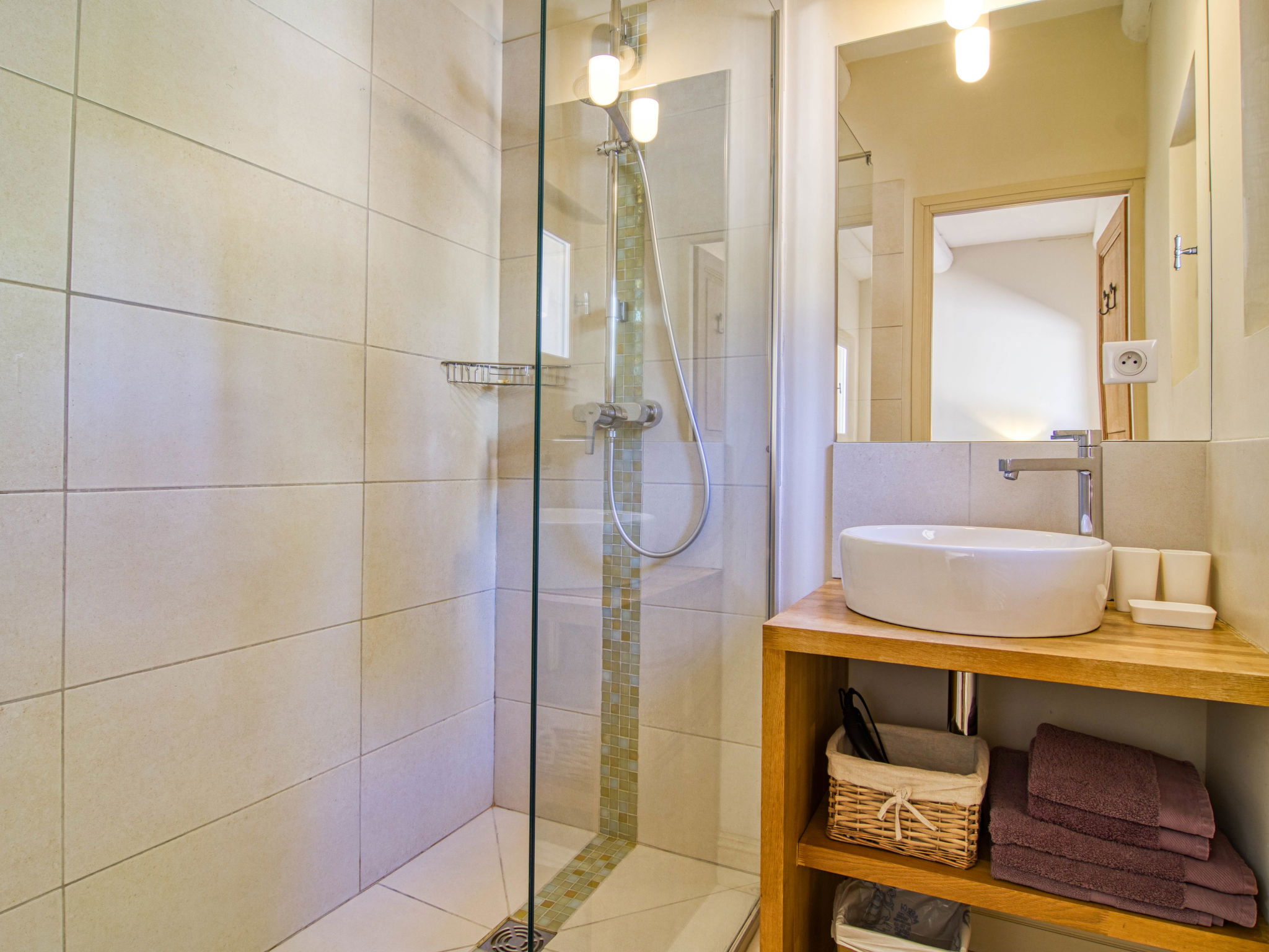 Located on land made up of woods, an olive grove and a lavender field. Available: plancha. Petanque pitch in front of the house. Pond at 150m with pontoon. two fountains on the property. On request, in addition, possibility of securing the services of a caterer or cook. Very beautiful house 2 storeys, surrounded by trees. Outside the resort, in a secluded, quiet, elevated position. Private: park 32 ha with trees, pond, swimming pool (12 x 6 m, depth 100 - 180 cm, seasonal availability: 01.May. - 30.Sep.) with internal staircase and shutter cover. Boules, terrace (20 m2), garden furniture, bathing jetty, pool maintenance by the owner/gardener. In the house: central heating system. Linen change (suppl. charge extra). Towel change (suppl. charge extra). Room cleaning daily on request (extra). Cook on request (extra). 1.7 km long bumpy motor access (via unmade road). Shop 5 km, restaurant 5 km, bus stop "Régusse" 8.5 km. Golf course (18 hole) 15 km, tennis 10 km. Please note: car recommended.