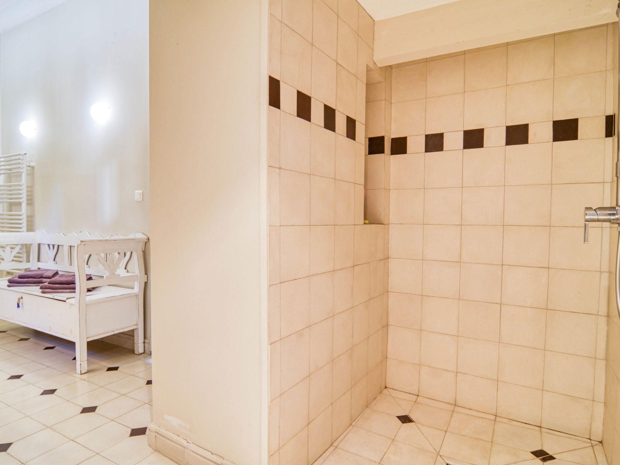 9-room house 500 m2 on 2 levels. Fully renovated: large entrance hall. Lounge 100 m2. Exit to the terrace. Lounge 30 m2 with satellite TV. Dining room 30 m2. Exit to the terrace. Kitchen 60 m2 (4 hot plates, oven, dishwasher, microwave) with dining table. Exit to the terrace. Sep. WC. Upper floor: 1 room with 1 french bed (1 x 180 cm, length 200 cm), separate WC and bath/shower. 1 room with 1 french bed (1 x 160 cm, length 200 cm), shower. 1 room with 1 french bed (1 x 180 cm, length 200 cm), shower. 1 room with 1 double bed (2 x 90 cm, length 200 cm), shower. 1 room with 1 double bed (2 x 90 cm, length 200 cm), shower/WC. 1 large room with 1 x 2 bunk beds (90 cm, length 200 cm), 1 french bed (1 x 180 cm, length 200 cm), separate WC and shower. Exit to the terrace. Sep. WC. Facilities: washing machine, dryer, safe, baby cot for up to 2 year olds. Internet (WiFi, free). Please note: non-smoking house. Maximum 1 pet/ dog allowed. Smoke alarm. In two of the bedrooms, it is possible to separate the large double beds into two single beds if you notify us.