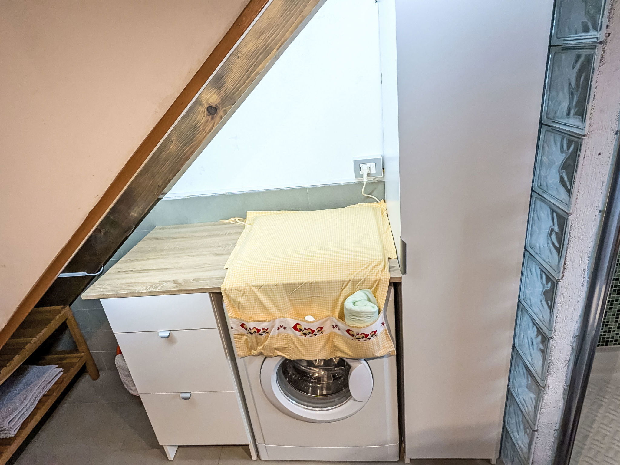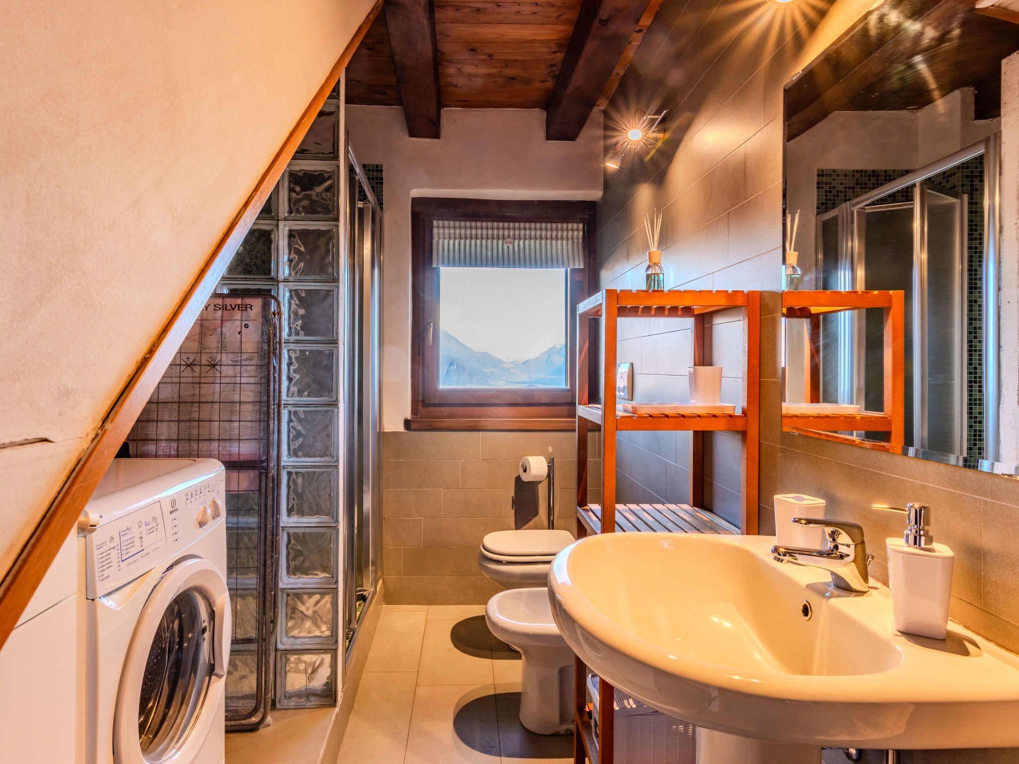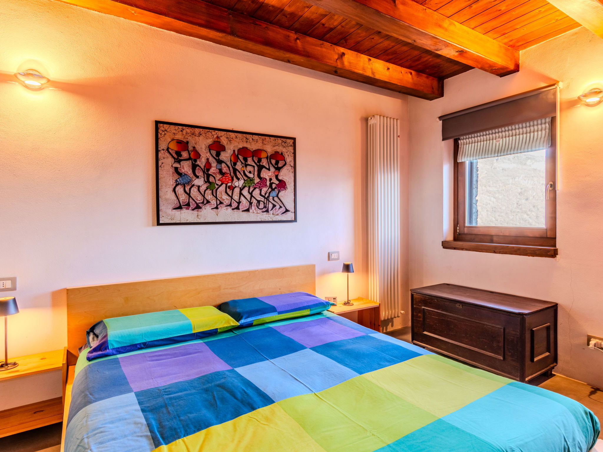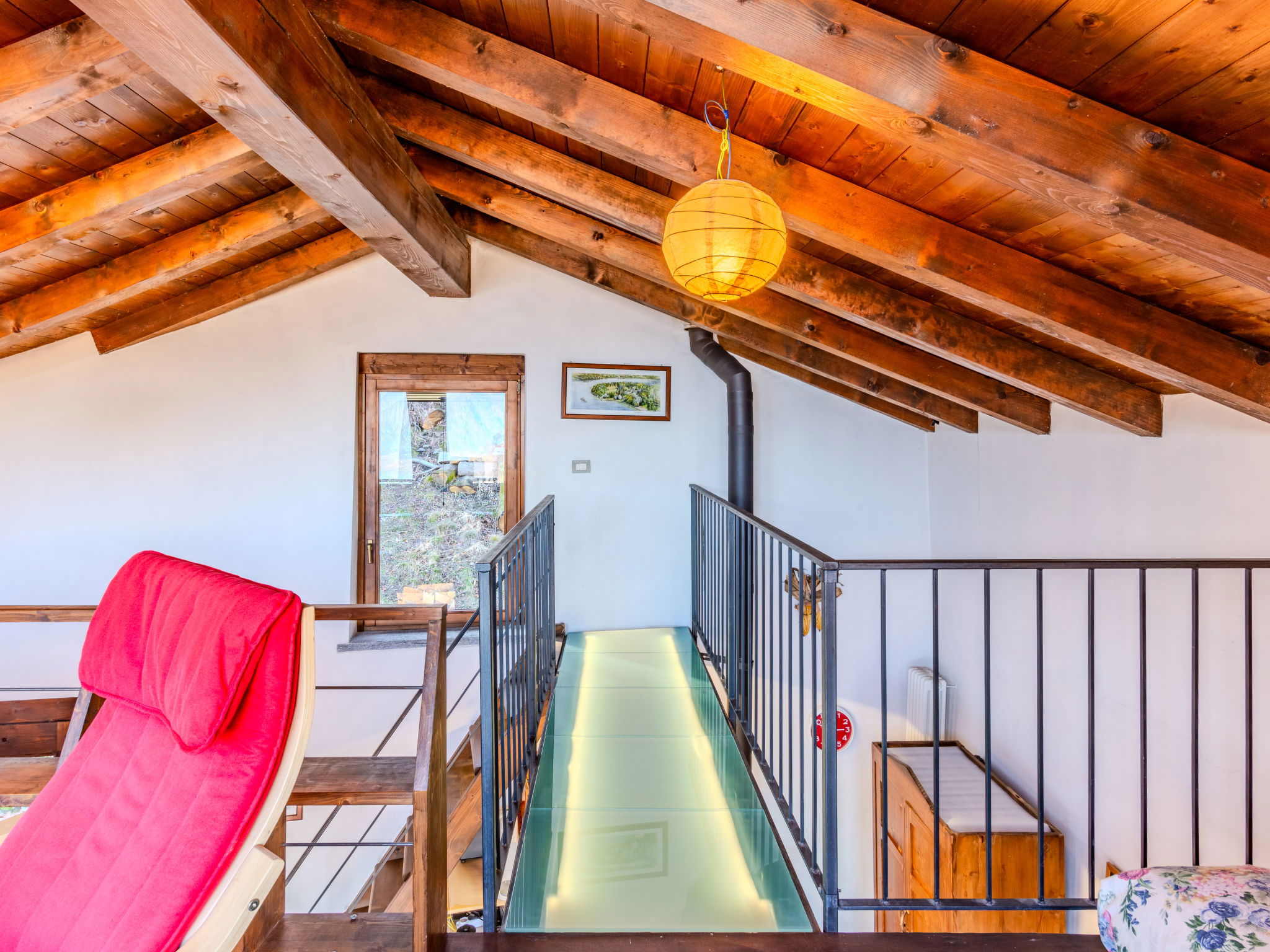 3-room house 70 m2 on 2 levels. Beautiful and tasteful furnishings: open living/dining room with Scandinavian wood stove (only for decoration), dining table and TV (flat screen). Exit to the garden, to the balcony, to the terrace. Open gallery. Open kitchen (oven, dishwasher, Gas stove, 4 gas rings, toaster, kettle, microwave, freezer). On the lower ground floor: 1 room with 1 x 2 bunk beds, 1 double bed. Exit to the garden. Shower/bidet/WC. Gas heating. Heating available only from 15.10. to 30.04. Natural stone floors. Small balcony, large terrace, garden. Terrace furniture, deck chairs (2). Marvellous panoramic view of the lake, the mountains and the resort. Facilities: washing machine, children's high chair, hair dryer. Internet (WiFi, free). Please note: non-smoking house, no parking. Maximum 1 pet/ dog allowed. Smoke alarm, fire extinguisher. IT013249C2G3DY7FHC