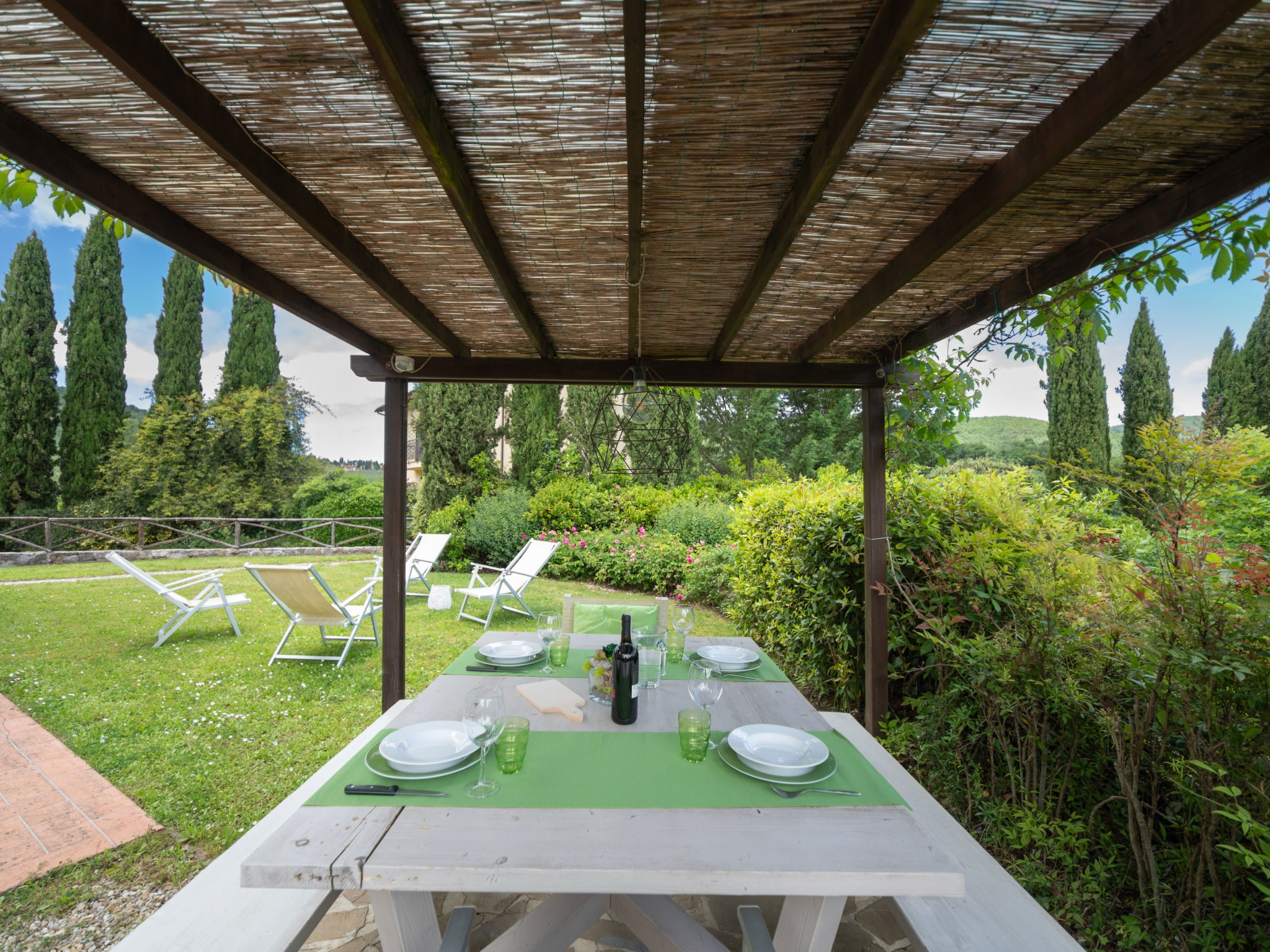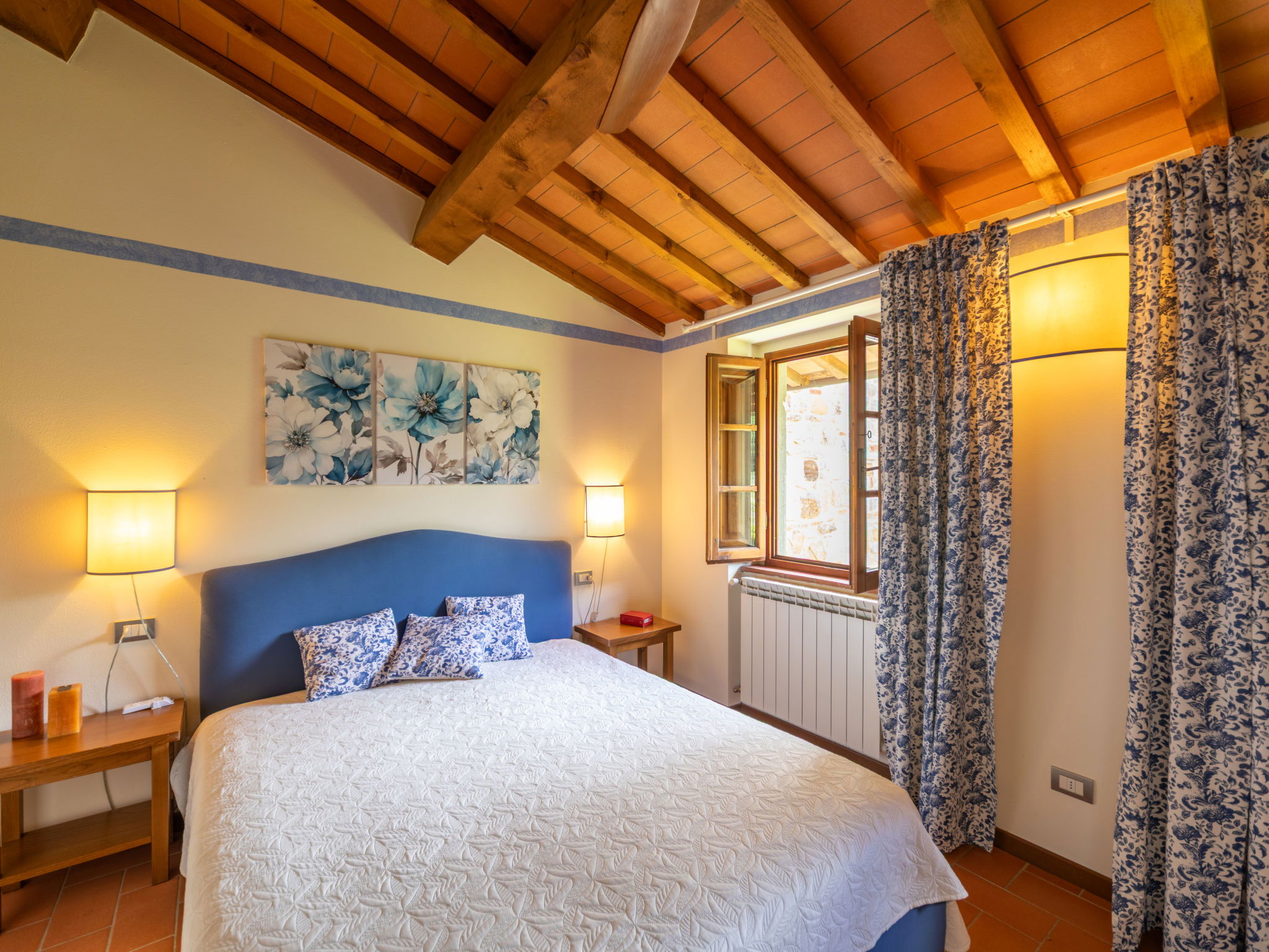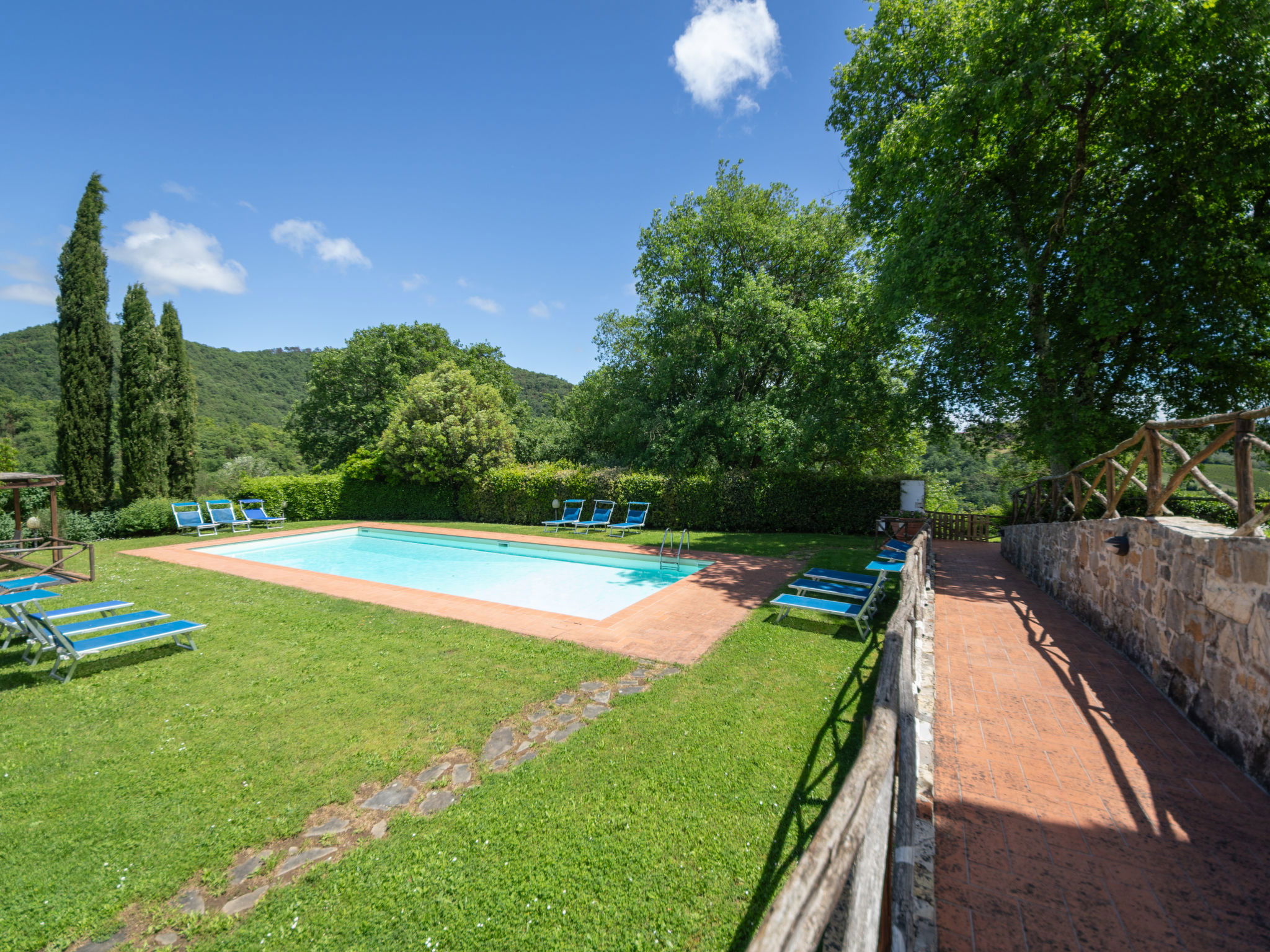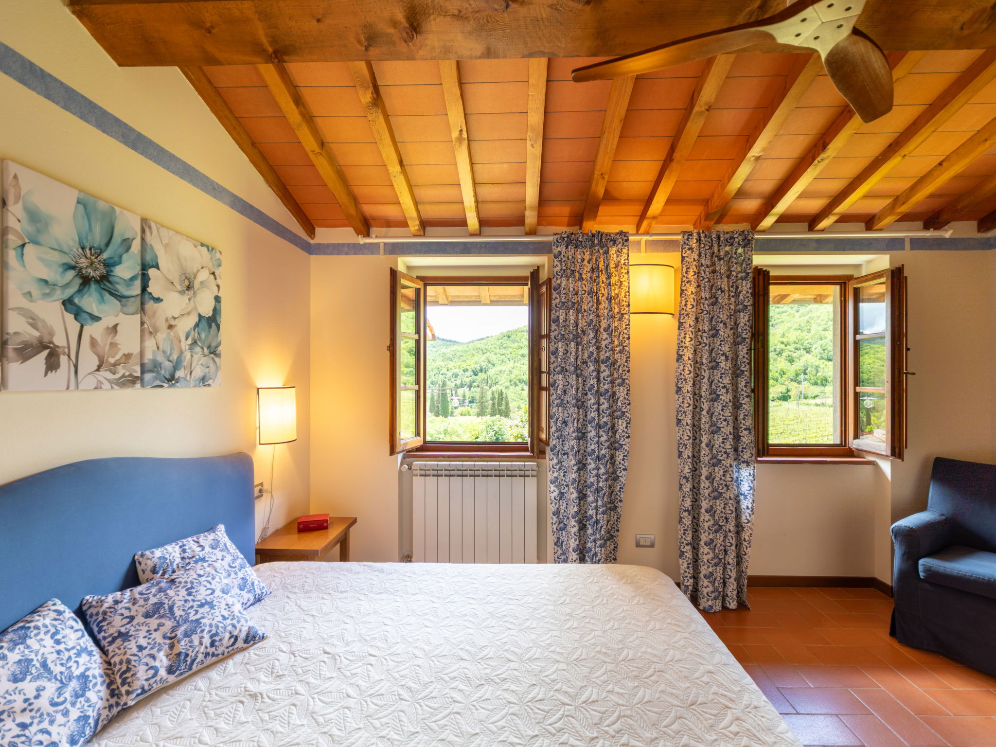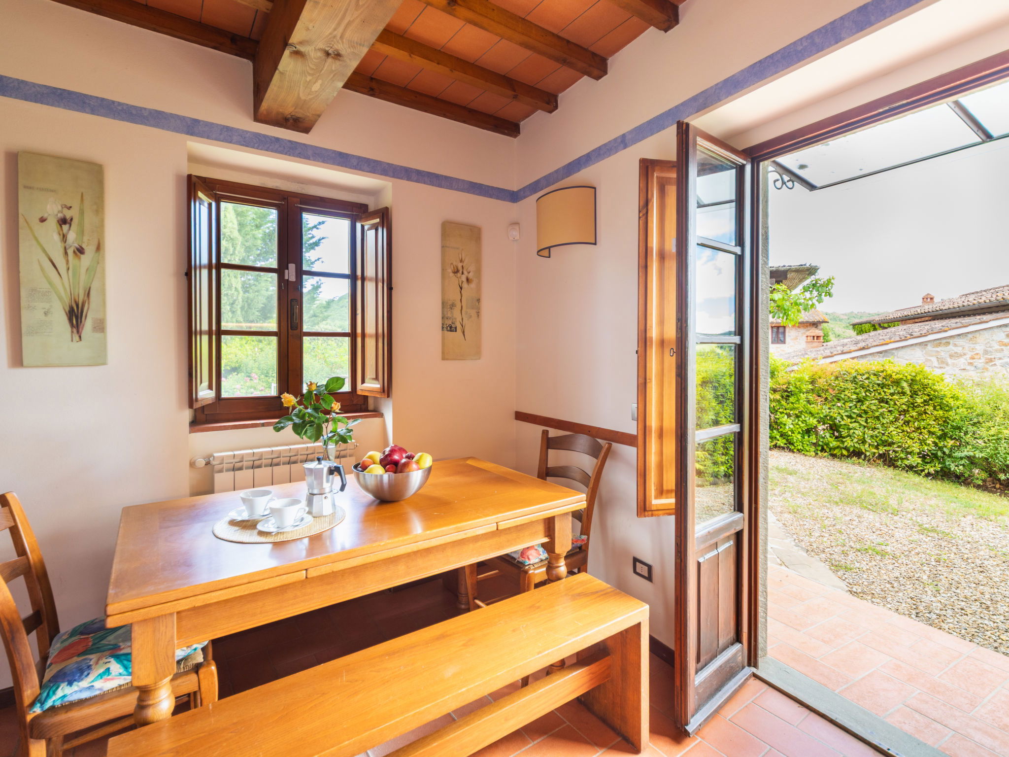 Hamlet surrounded by the countryside with 4 detached houses. In little square you can see 2 houses (I lecci, La Pieve), La Torre and La Corte are in another building separated from the rest by a central courtyard to esclusive use of « La Corte » (I5269.951.5). The furnishings and equipment are well-kept to ensure maximum comfort. Very child friendly, cosy holiday development "Borgo", surrounded by vineyards. 6 houses in the residence. 8 km from the centre of Greve in Chianti, 32 km from the centre of Firenze, 55 km from the centre of Siena, in a sunny position, in the countryside. For shared use: swimming pool (6 x 14 m, depth 80 - 220 cm, seasonal availability: 30.Apr. - 01.Oct.). Barbecue, pool maintenance by the owner/gardener. In the complex: internet access, WiFi, central heating system, heating to be paid on the spot, heating available only from 01.Nov. - 04.Apr.. Room cleaning on request (extra). Parking on the premises. Shop 3 km, supermarket 8 km, restaurant 3 km, bus stop 2 km. Golf course (18 hole) 9 km, tennis 9 km, riding stable 9 km. Nearby attractions: Panzano in Chianti 17 km, Radda in Chianti 21 km, San Casciano in Val di Pesa 23 km, Gaiole in Chianti 29 km, San Gimignano, Siena 55 km, Volterra 75 km. For the second week's supply, the cost of bed linen and towels is 12 euro per person (on request). The property is equipped with a video surveillance system with cameras.