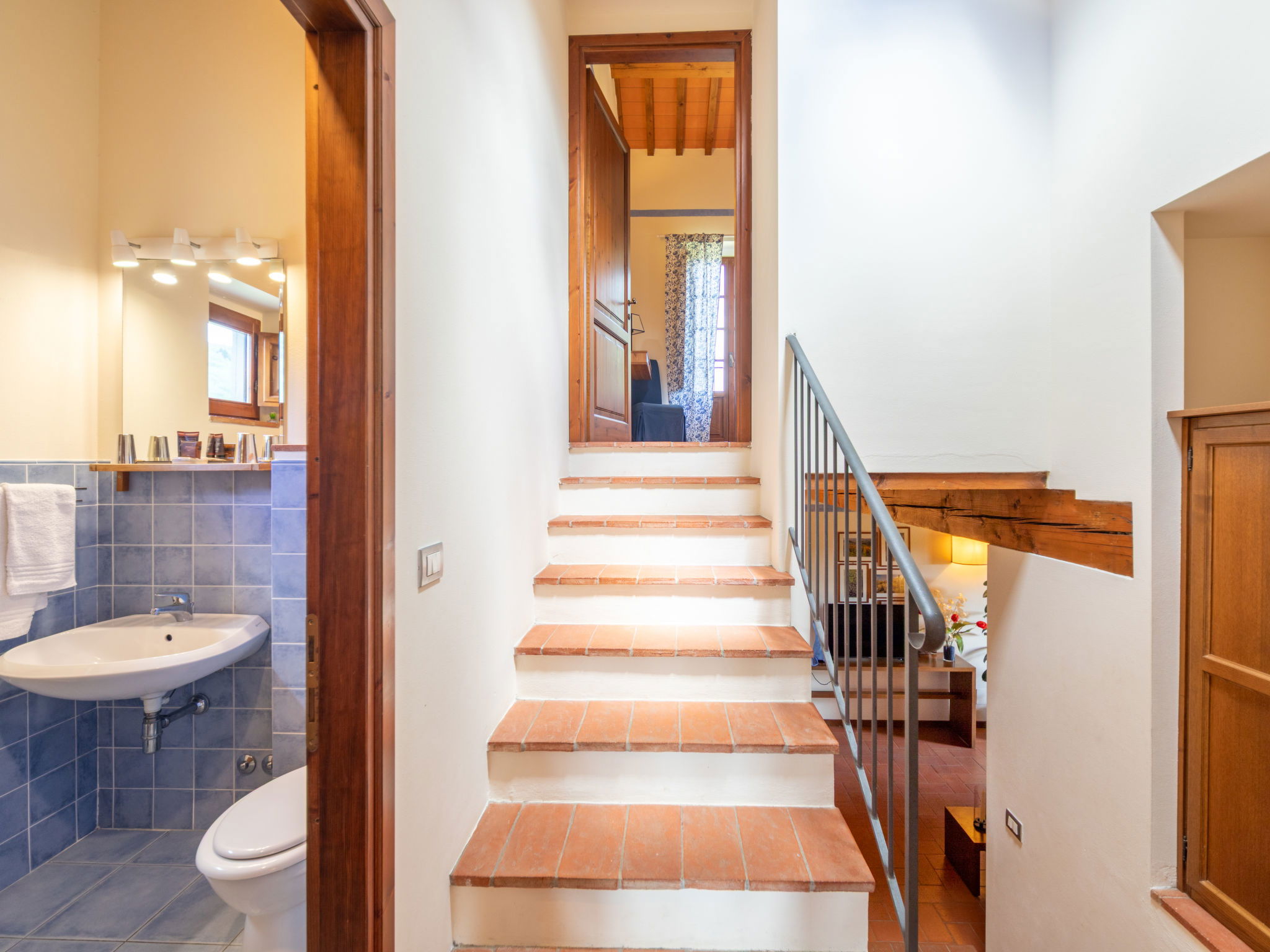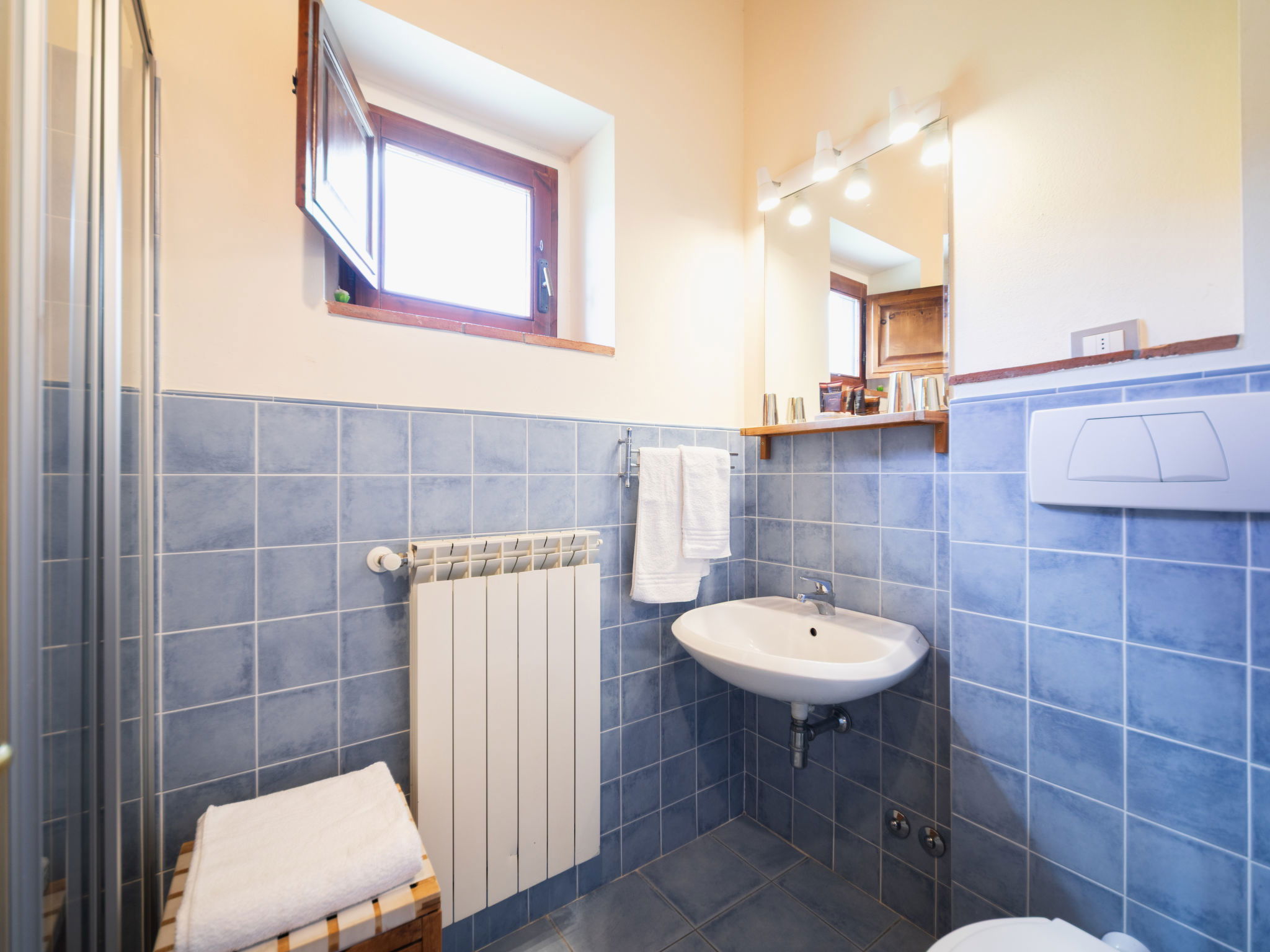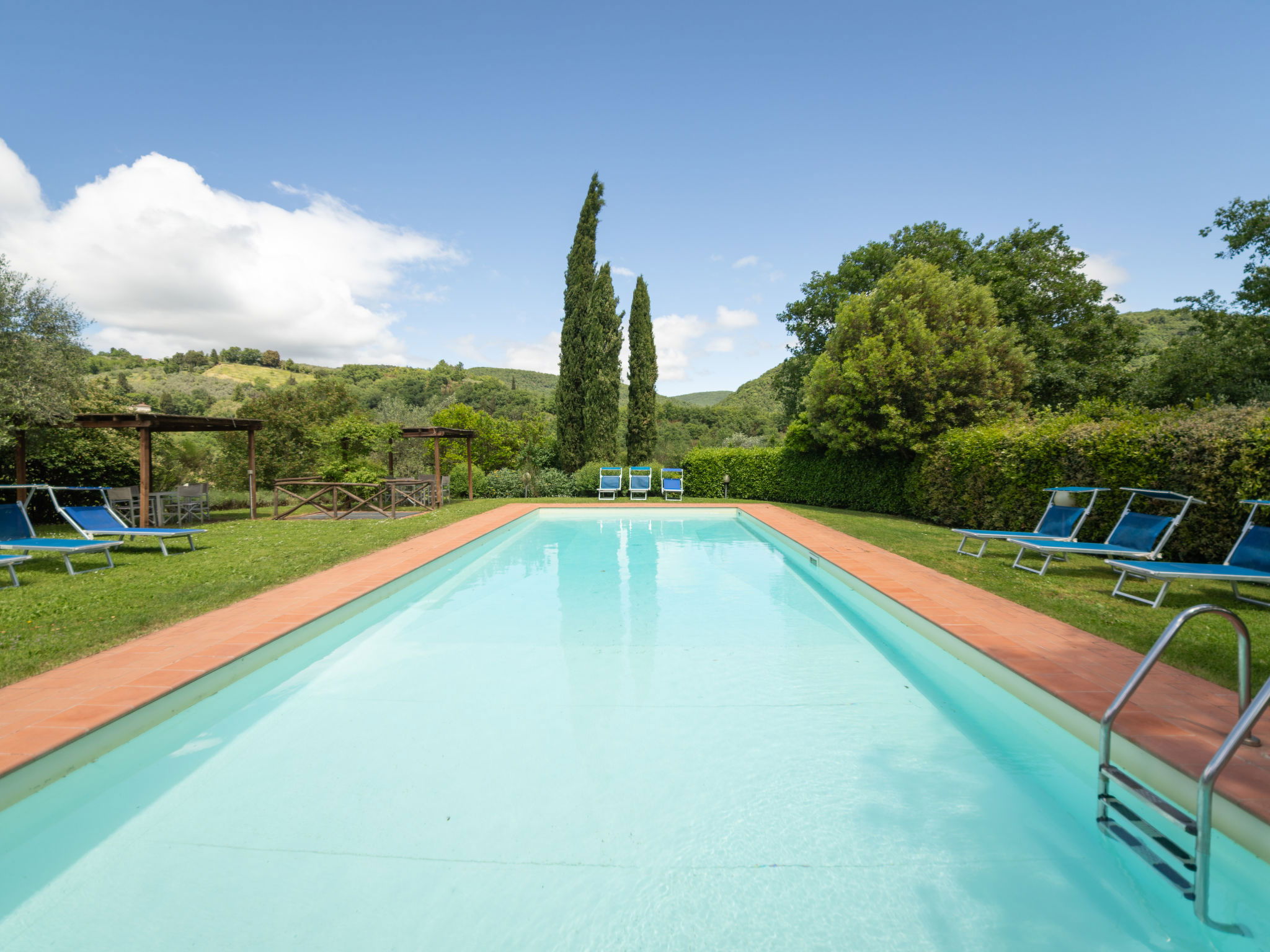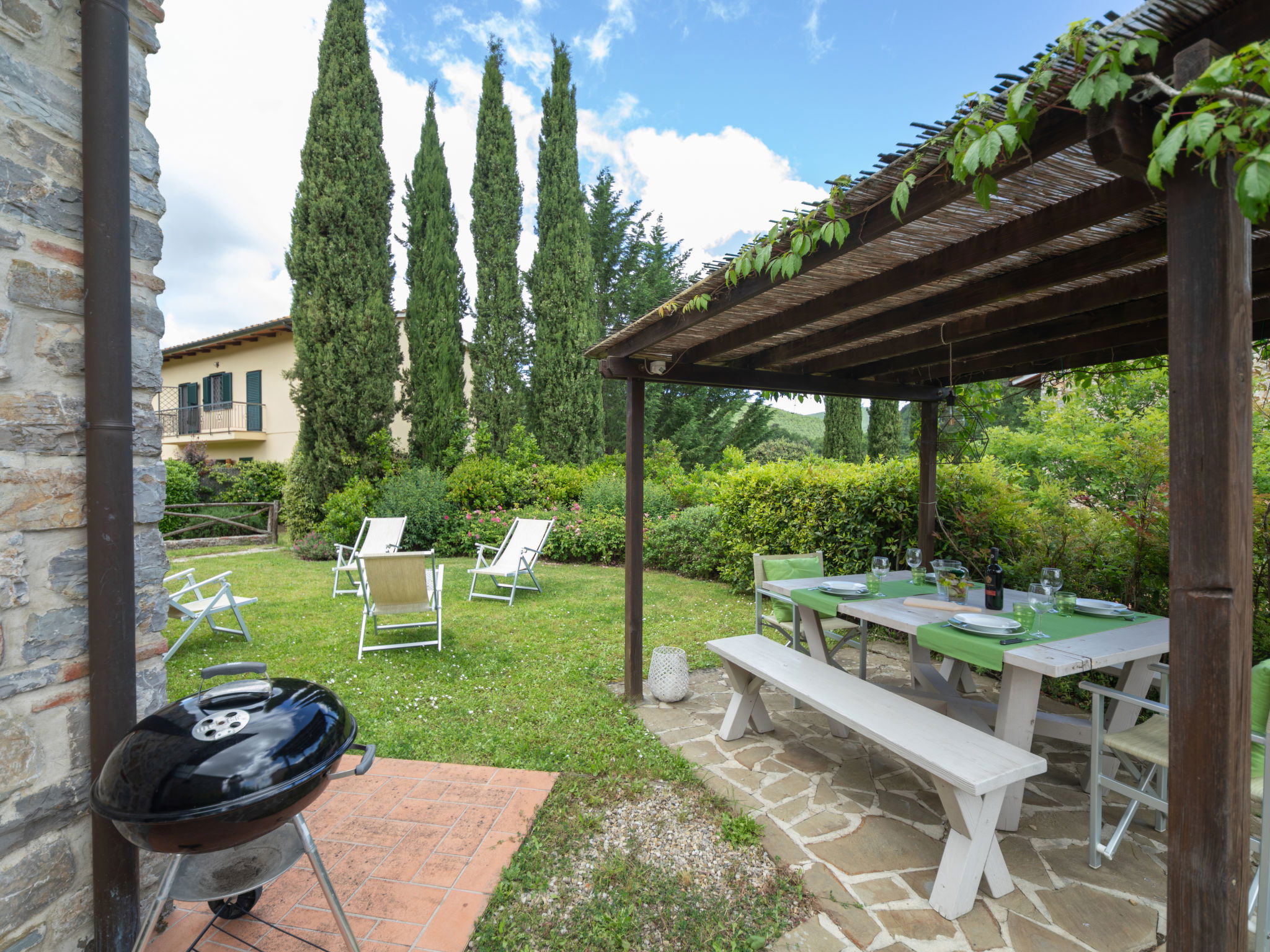 Hamlet surrounded by the countryside with 4 detached houses. In little square you can see 2 houses (I lecci, La Pieve), La Torre and La Corte are in another building separated from the rest by a central courtyard to esclusive use of « La Corte » (I5269.951.5). The furnishings and equipment are well-kept to ensure maximum comfort. Very child friendly, cosy holiday development "Borgo", surrounded by vineyards. 6 houses in the residence. 8 km from the centre of Greve in Chianti, 32 km from the centre of Firenze, 55 km from the centre of Siena, in a sunny position, in the countryside. For shared use: swimming pool (6 x 14 m, depth 80 - 220 cm, seasonal availability: 30.Apr. - 01.Oct.). Barbecue, pool maintenance by the owner/gardener. In the complex: internet access, WiFi, central heating system, heating to be paid on the spot, heating available only from 01.Nov. - 04.Apr.. Room cleaning on request (extra). Parking on the premises. Shop 3 km, supermarket 8 km, restaurant 3 km, bus stop 2 km. Golf course (18 hole) 9 km, tennis 9 km, riding stable 9 km. Nearby attractions: Panzano in Chianti 17 km, Radda in Chianti 21 km, San Casciano in Val di Pesa 23 km, Gaiole in Chianti 29 km, San Gimignano, Siena 55 km, Volterra 75 km. For the second week's supply, the cost of bed linen and towels is 12 euro per person (on request). The property is equipped with a video surveillance system with cameras.
