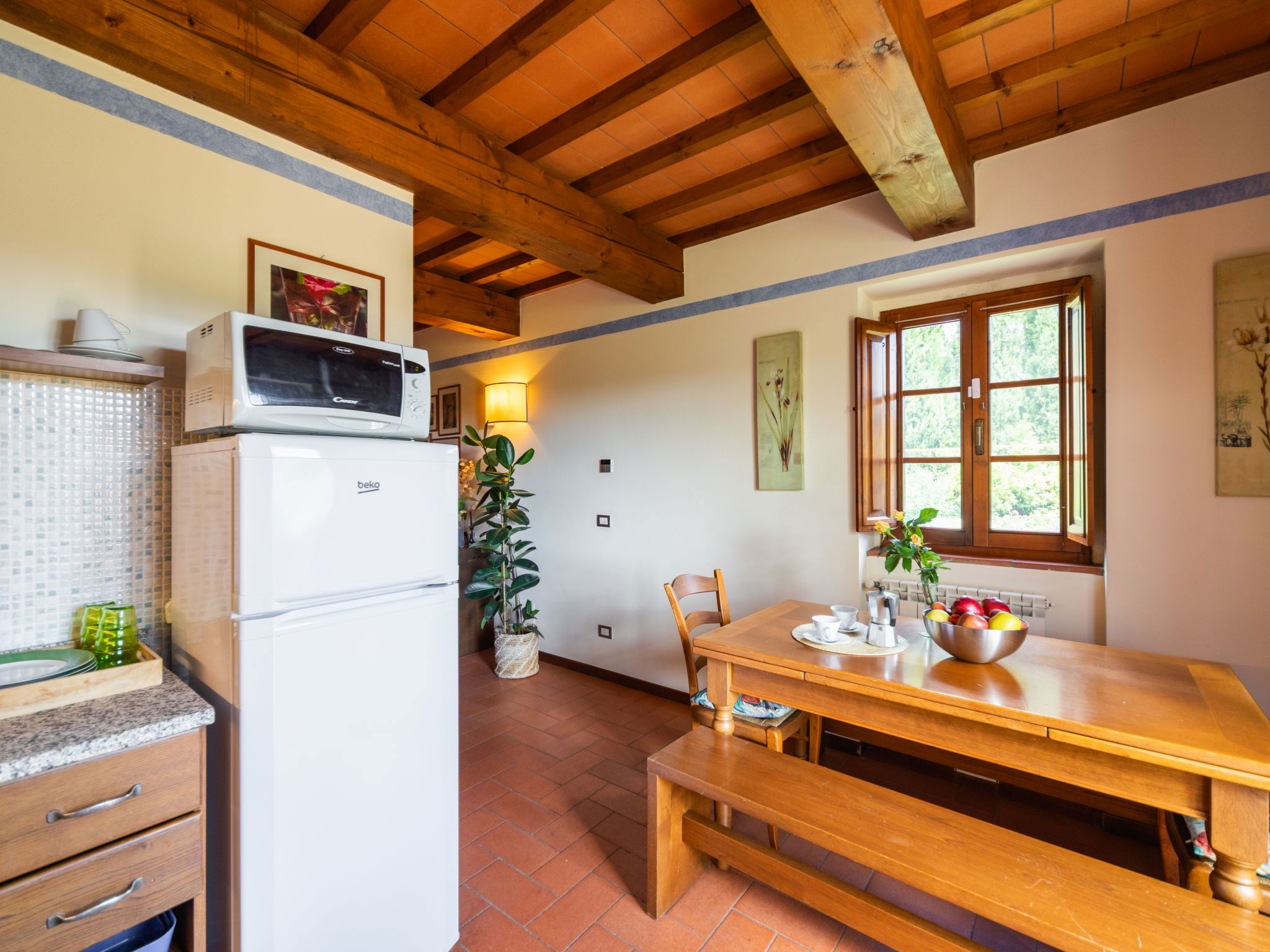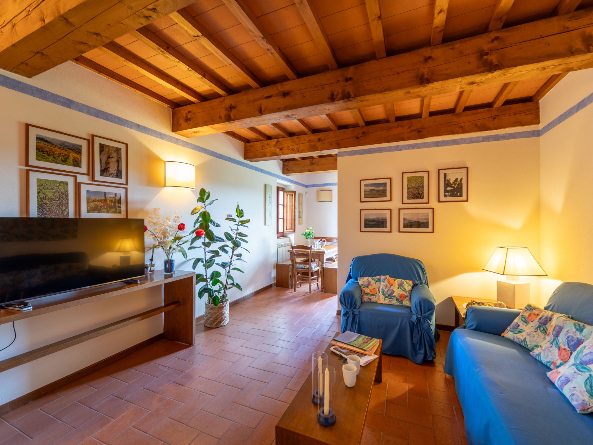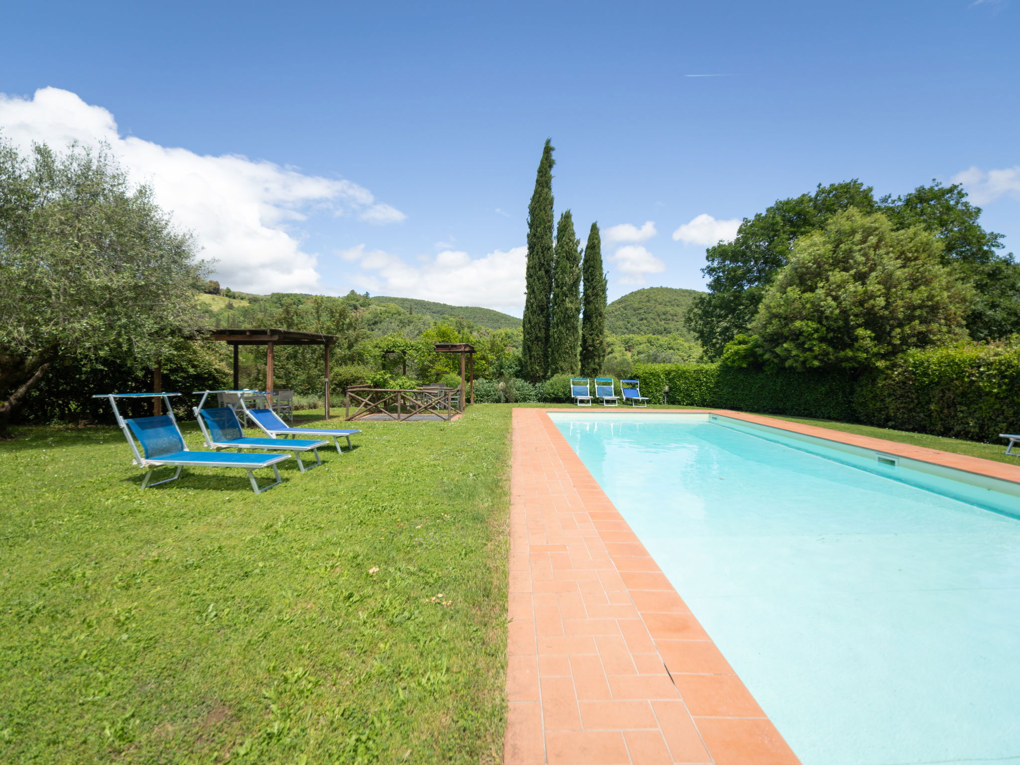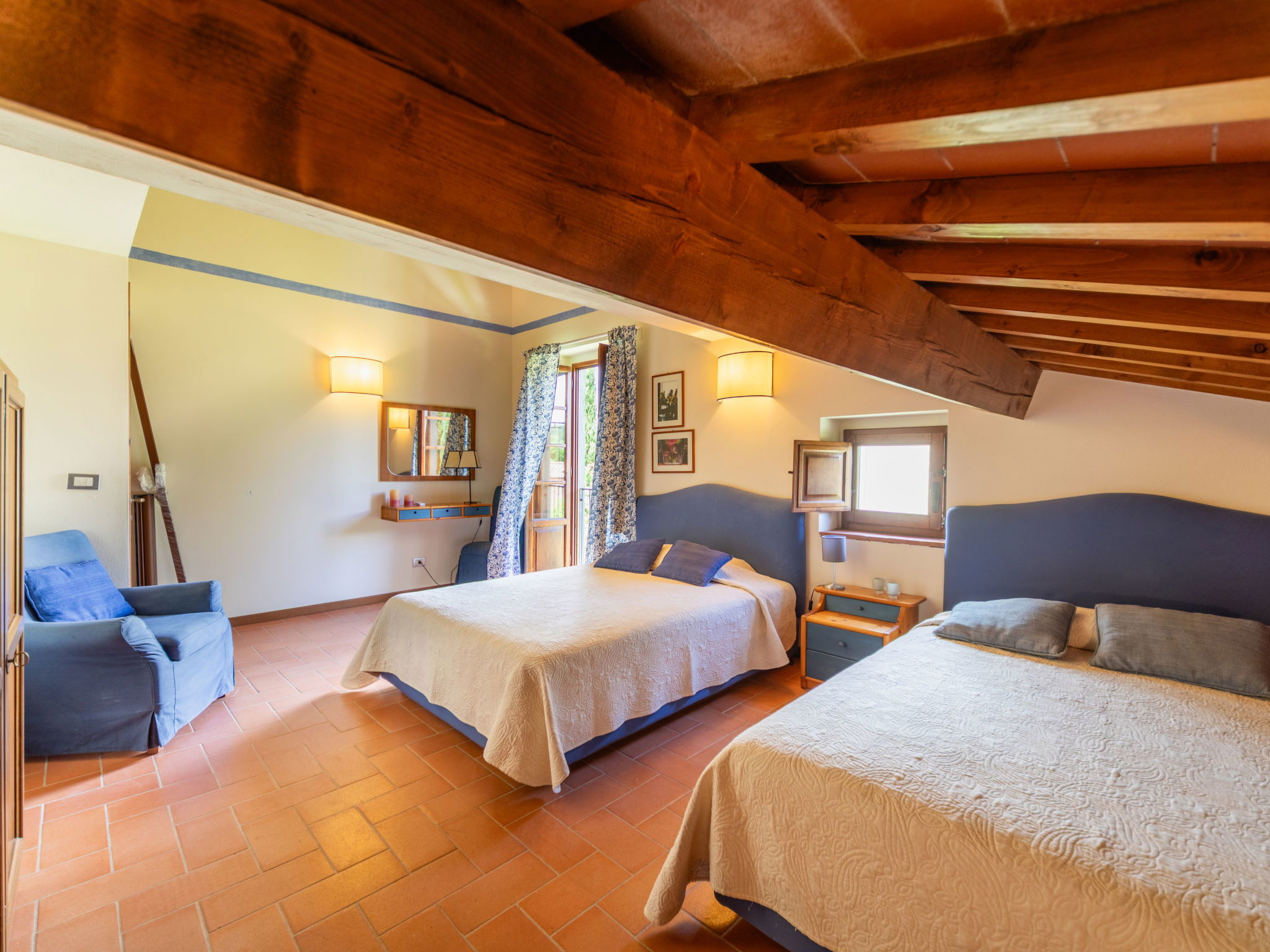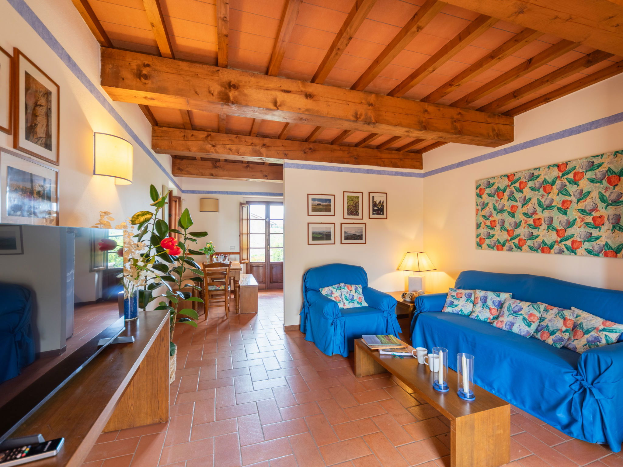 Hamlet surrounded by the countryside with 4 detached houses. In little square you can see 2 houses (I lecci, La Pieve), La Torre and La Corte are in another building separated from the rest by a central courtyard to esclusive use of « La Corte » (I5269.951.5). The furnishings and equipment are well-kept to ensure maximum comfort. Very child friendly, cosy holiday development "Borgo", surrounded by vineyards. 6 houses in the residence. 8 km from the centre of Greve in Chianti, 32 km from the centre of Firenze, 55 km from the centre of Siena, in a sunny position, in the countryside. For shared use: swimming pool (6 x 14 m, depth 80 - 220 cm, seasonal availability: 30.Apr. - 01.Oct.). Barbecue, pool maintenance by the owner/gardener. In the complex: internet access, WiFi, central heating system, heating to be paid on the spot, heating available only from 01.Nov. - 04.Apr.. Room cleaning on request (extra). Parking on the premises. Shop 3 km, supermarket 8 km, restaurant 3 km, bus stop 2 km. Golf course (18 hole) 9 km, tennis 9 km, riding stable 9 km. Nearby attractions: Panzano in Chianti 17 km, Radda in Chianti 21 km, San Casciano in Val di Pesa 23 km, Gaiole in Chianti 29 km, San Gimignano, Siena 55 km, Volterra 75 km. For the second week's supply, the cost of bed linen and towels is 12 euro per person (on request). The property is equipped with a video surveillance system with cameras.
