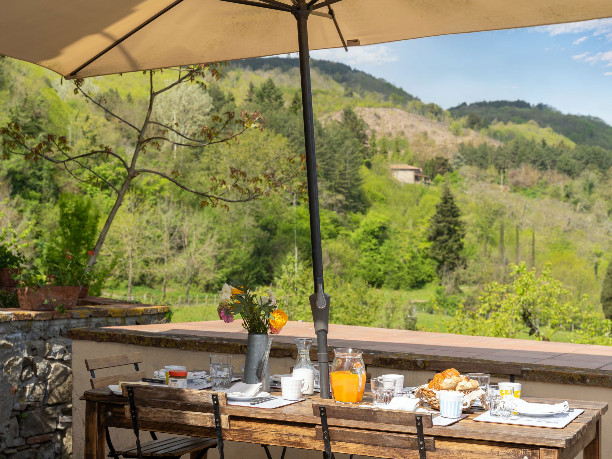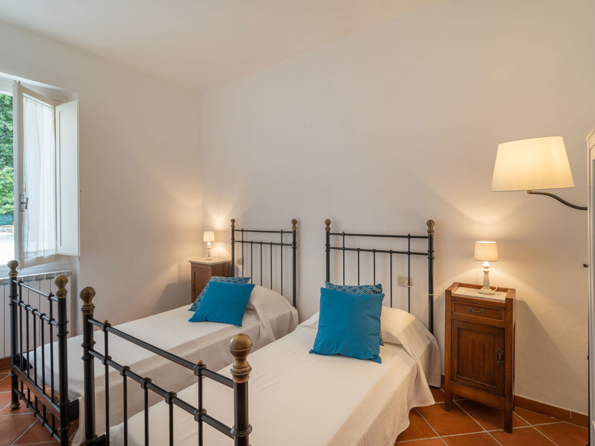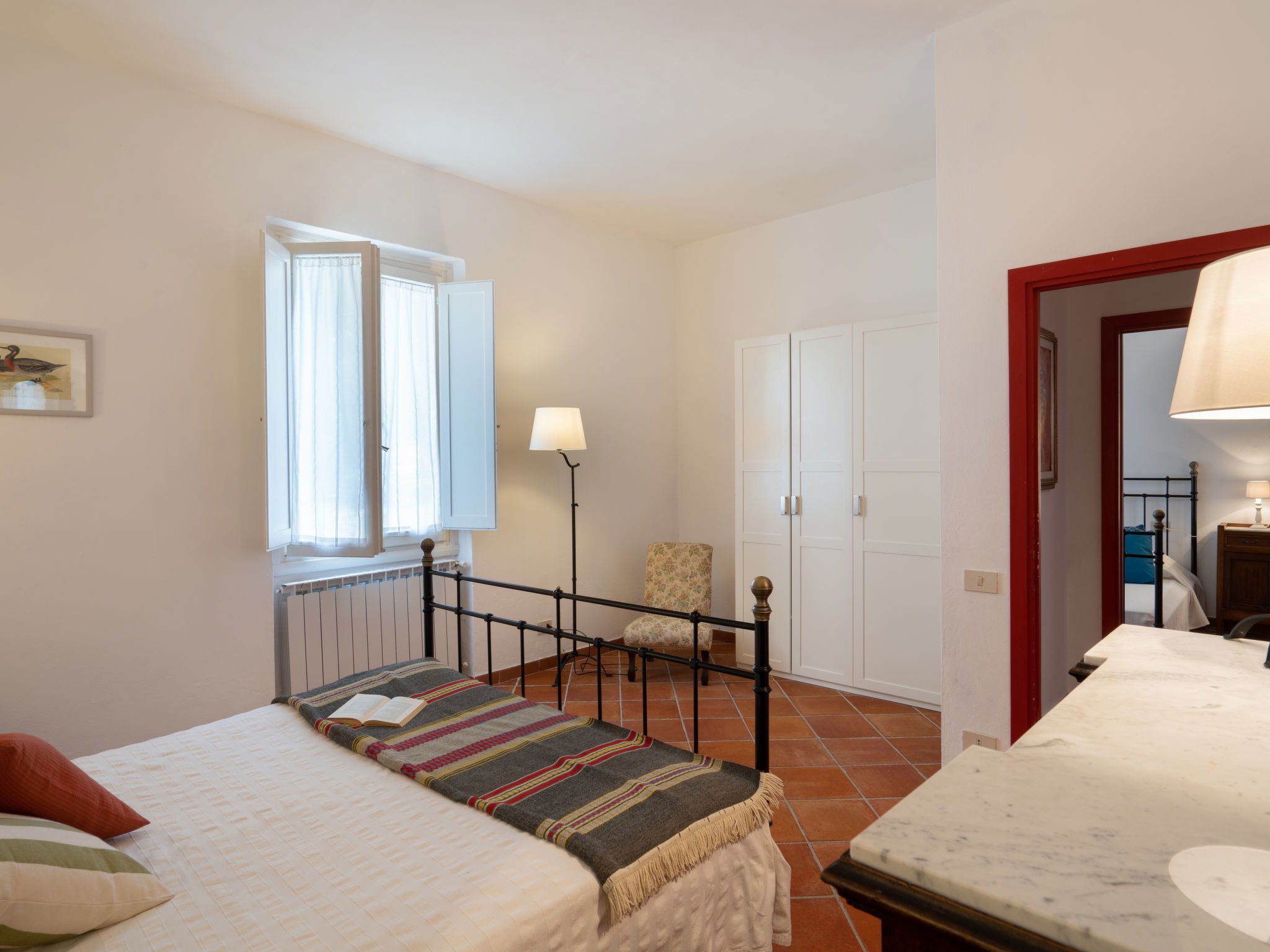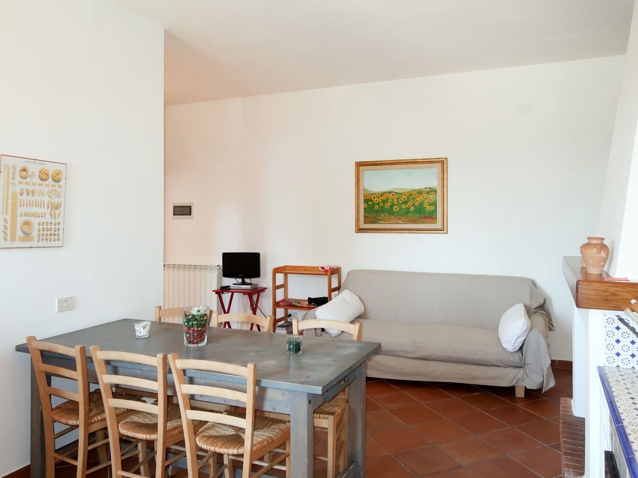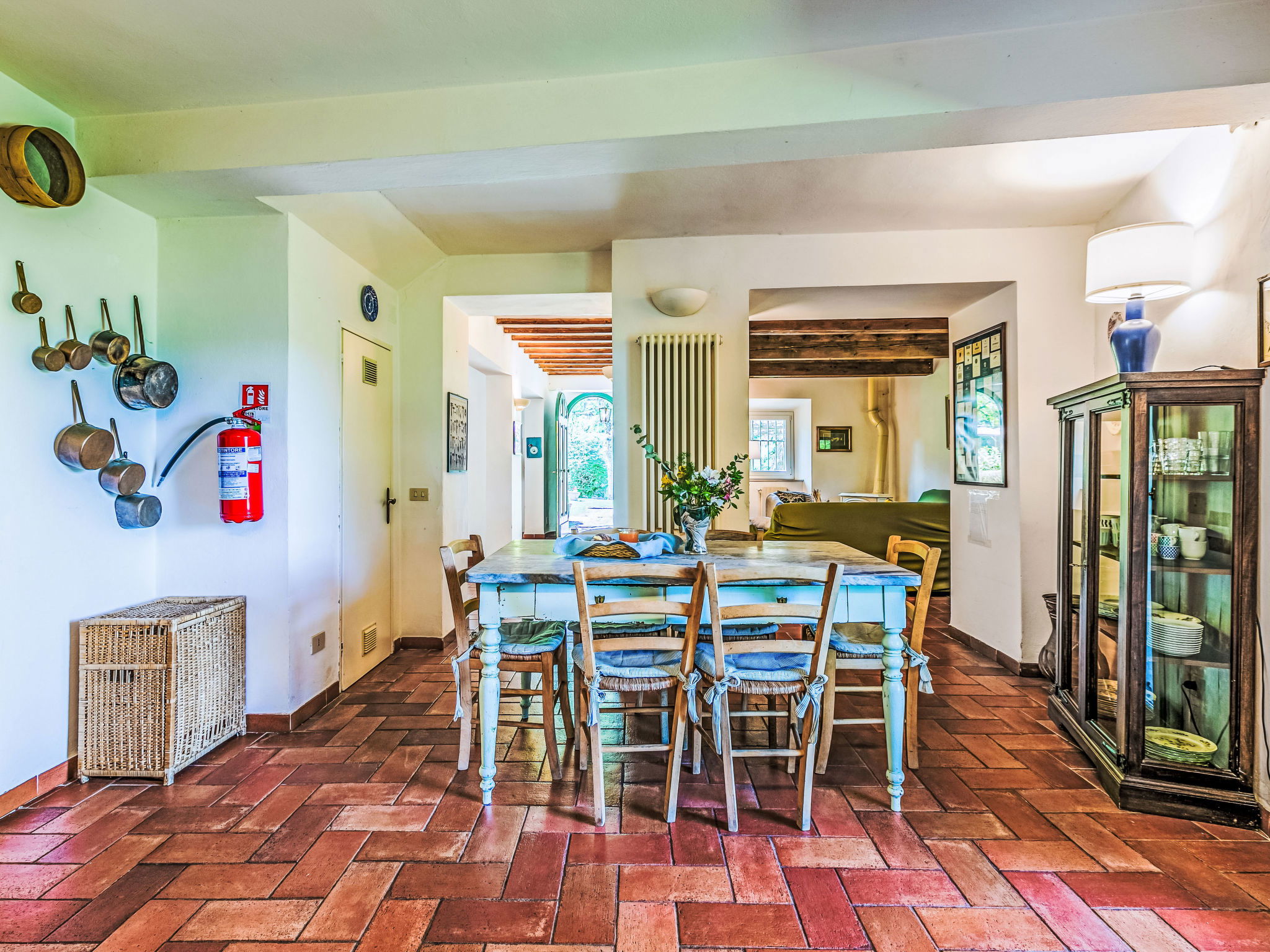 "Borgo Castagnoli", 14-room house 470 m2 on 2 levels. Wooden furniture furnishings: living/dining room with open-hearth fireplace, dining table, kitchen corner and satellite TV. Living/dining room with dining table and satellite TV. 1 room with 1 french bed (160 cm). 1 room with 2 beds (80 cm). Open kitchen (oven, dishwasher, 5 gas rings, freezer, electric coffee machine) with small dining table, open-hearth fireplace. Shower/WC, sep. WC. Upper floor: living/dining room with open-hearth fireplace, dining table and satellite TV. 5 rooms, each room with 1 french bed (160 cm). 3 rooms, each room with 2 beds (80 cm). Open kitchen (oven, dishwasher, 4 gas rings, freezer, electric coffee machine). Bath/WC, 4 showers/WC. Gas heating. Parquet floors. Terrace roofed. Facilities: washing machine, iron, baby cot for up to 2 year olds. Internet (WiFi, free). Parking (5 cars) at the house. Please note: non-smokers only. Maximum 1 pet/ dog allowed. Smoke alarm. No internal connecting door between the separated properties. The pool mentioned in the description is for private use. When booking this property you make a reservation for the whole house. Facilities for shared use are then for private use. No mandatory extra charges to be paid on-site except for local tax. IT048021B49F5V68X8