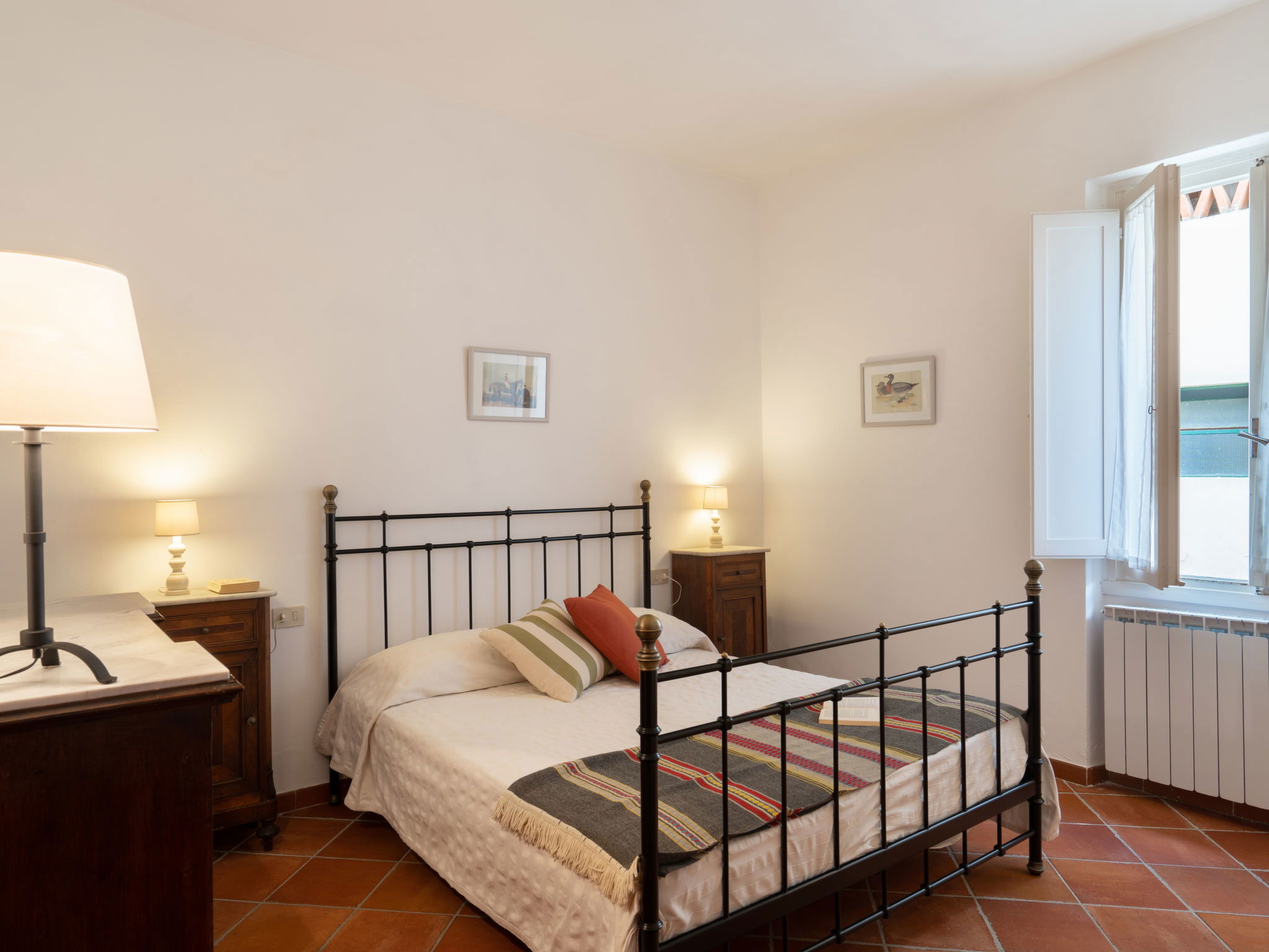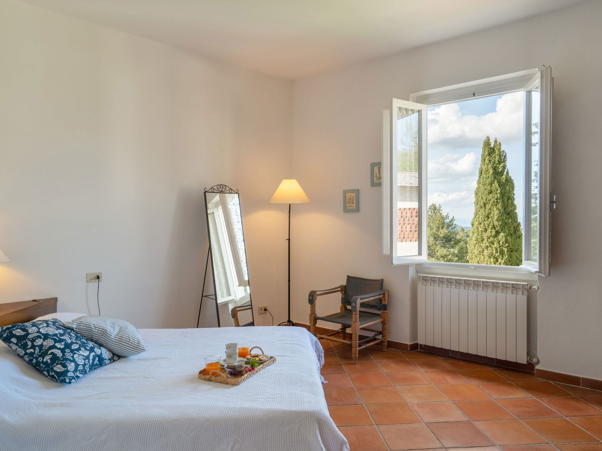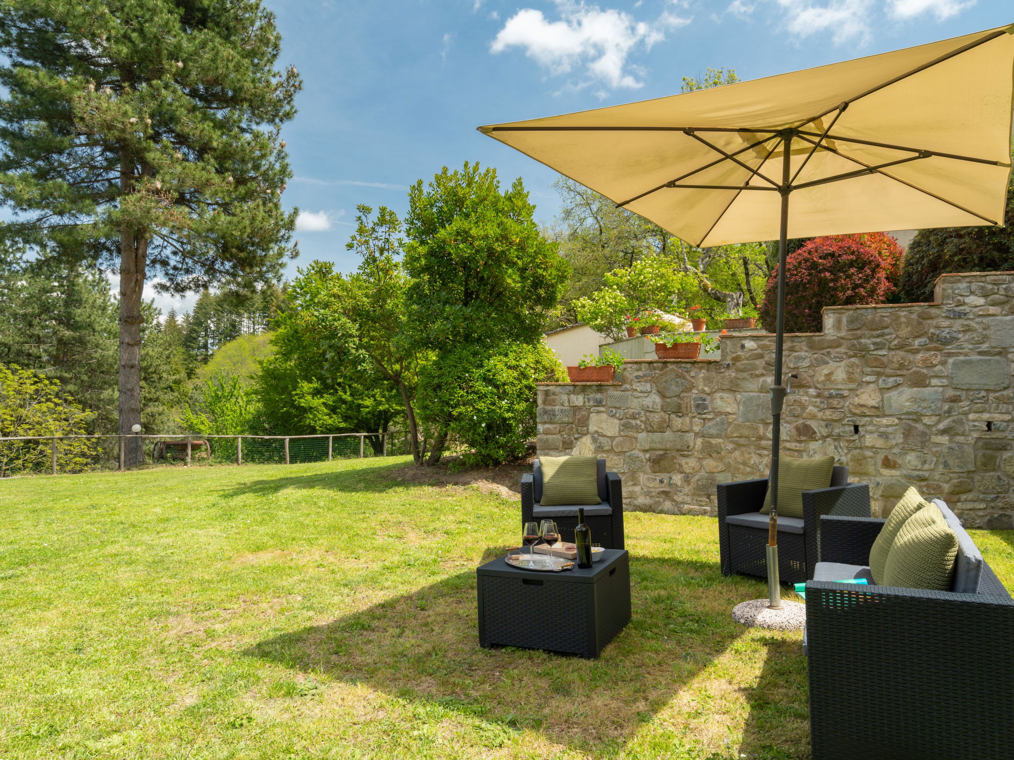 Manor house "Castagnoli", 650 m a.s.l., surrounded by fields and vineyards. 12 km from the centre of Greve in Chianti, 2 km from the centre of Lucolena, in a secluded position, in the countryside. Private: property 40 ha, park, beautiful, well-kept garden (not fenced) with flowers and trees, lawn for sunbathing, swimming pool (10 x 5 m, depth 100 - 200 cm, seasonal availability: 10.May. - 10.Oct.). Outdoor shower, terrace, barbecue, pool maintenance by the owner/gardener. 500 m long bumpy motor access (via unmade road). Parking on the premises. Shop 2 km, supermarket 10 km, bus stop 3 km, sandy beach "Marina di Cecina" 85 km. Golf course (18 hole) 20 km, walking paths from the house 50 m. Nearby attractions: Siena 30 km, Volterra 44 km, Firenze 50 km, Arezzo 75 km. Please note: car recommended. Baby equipment (included). Groups of teenagers on request only.