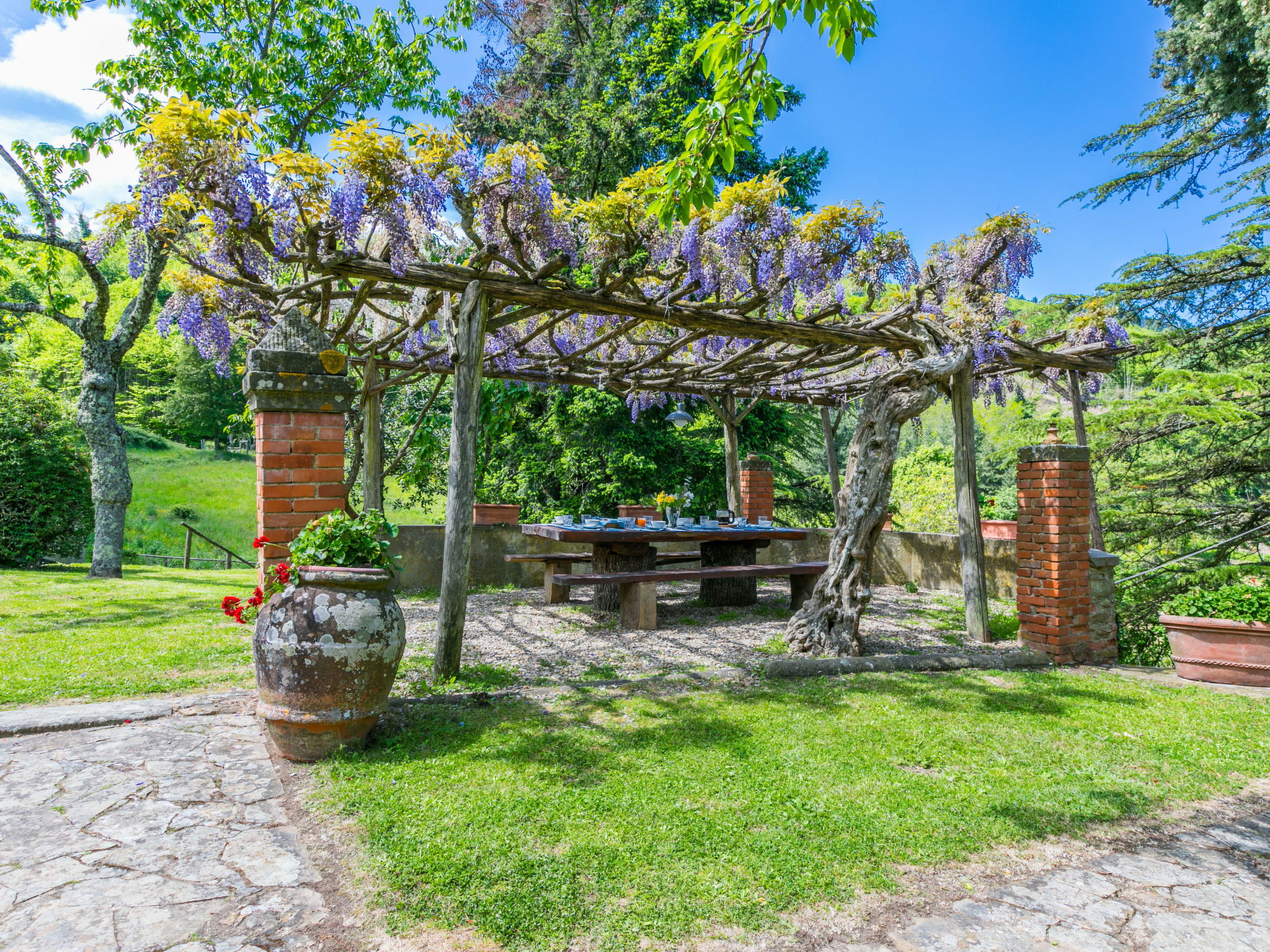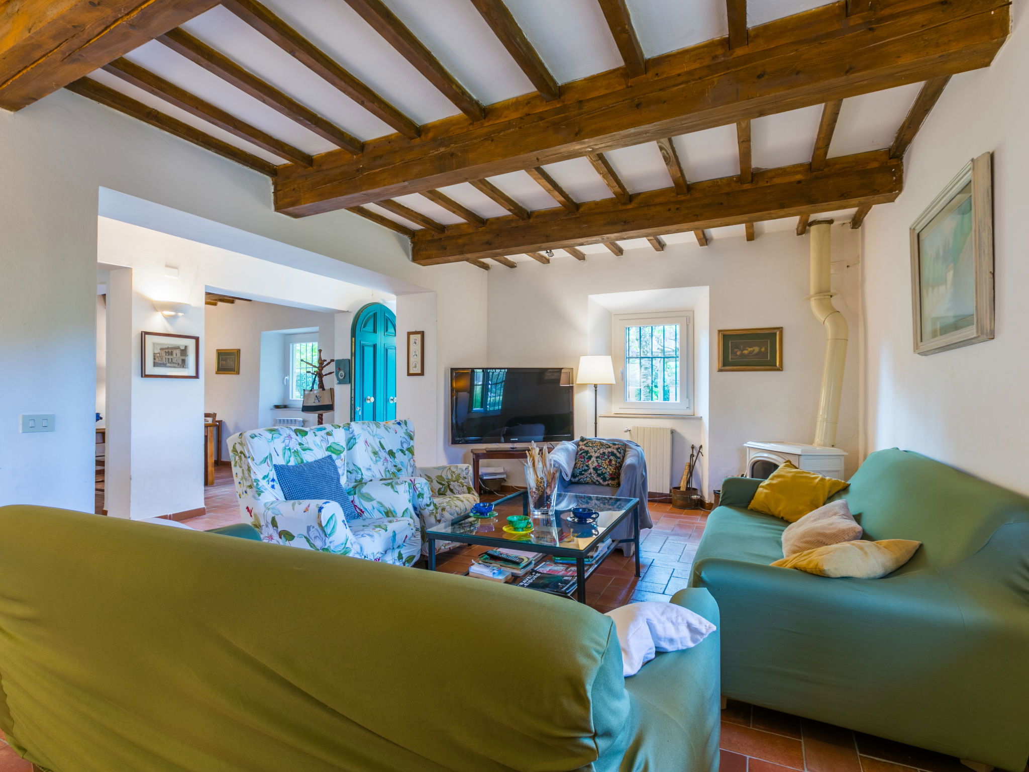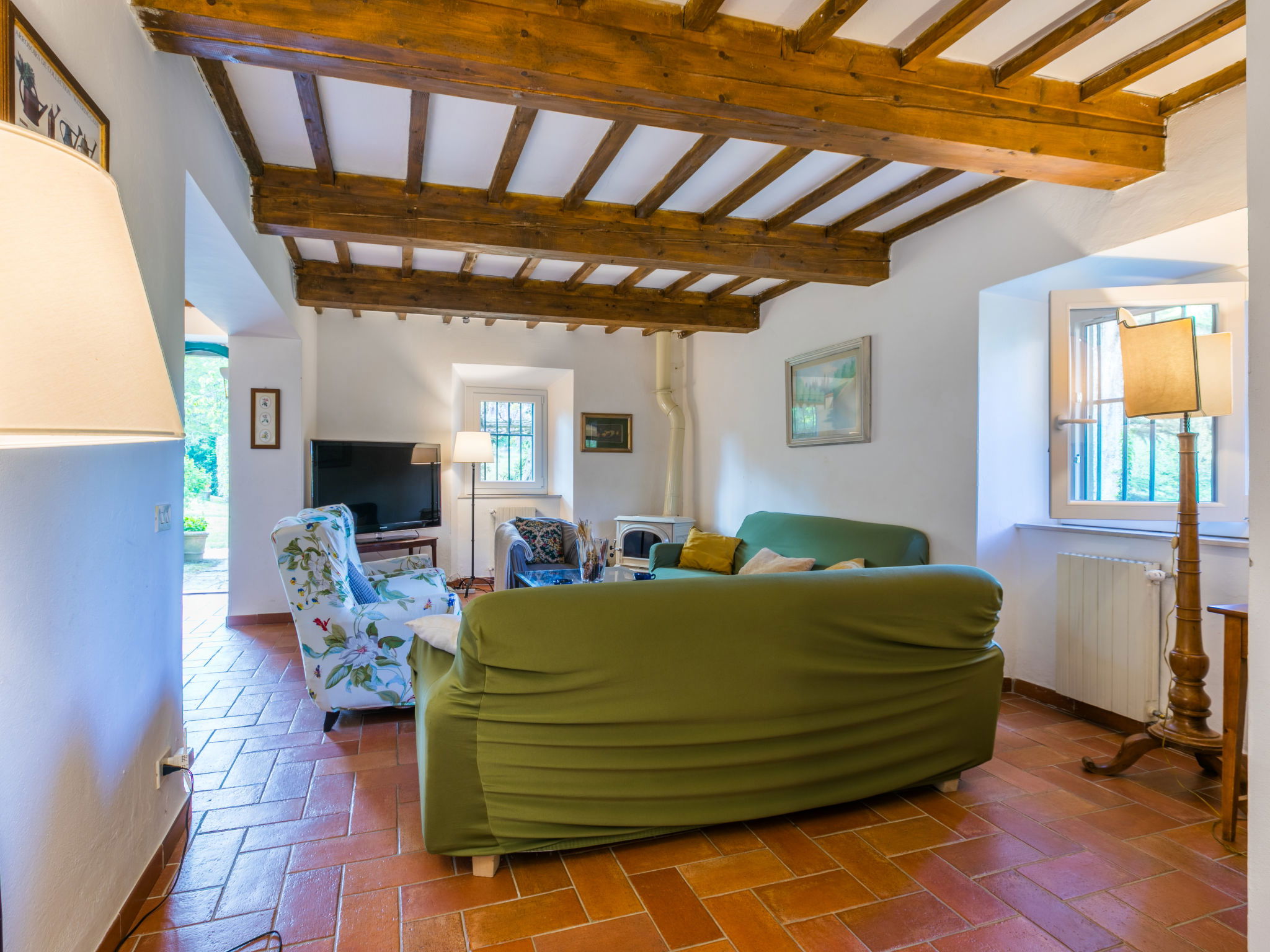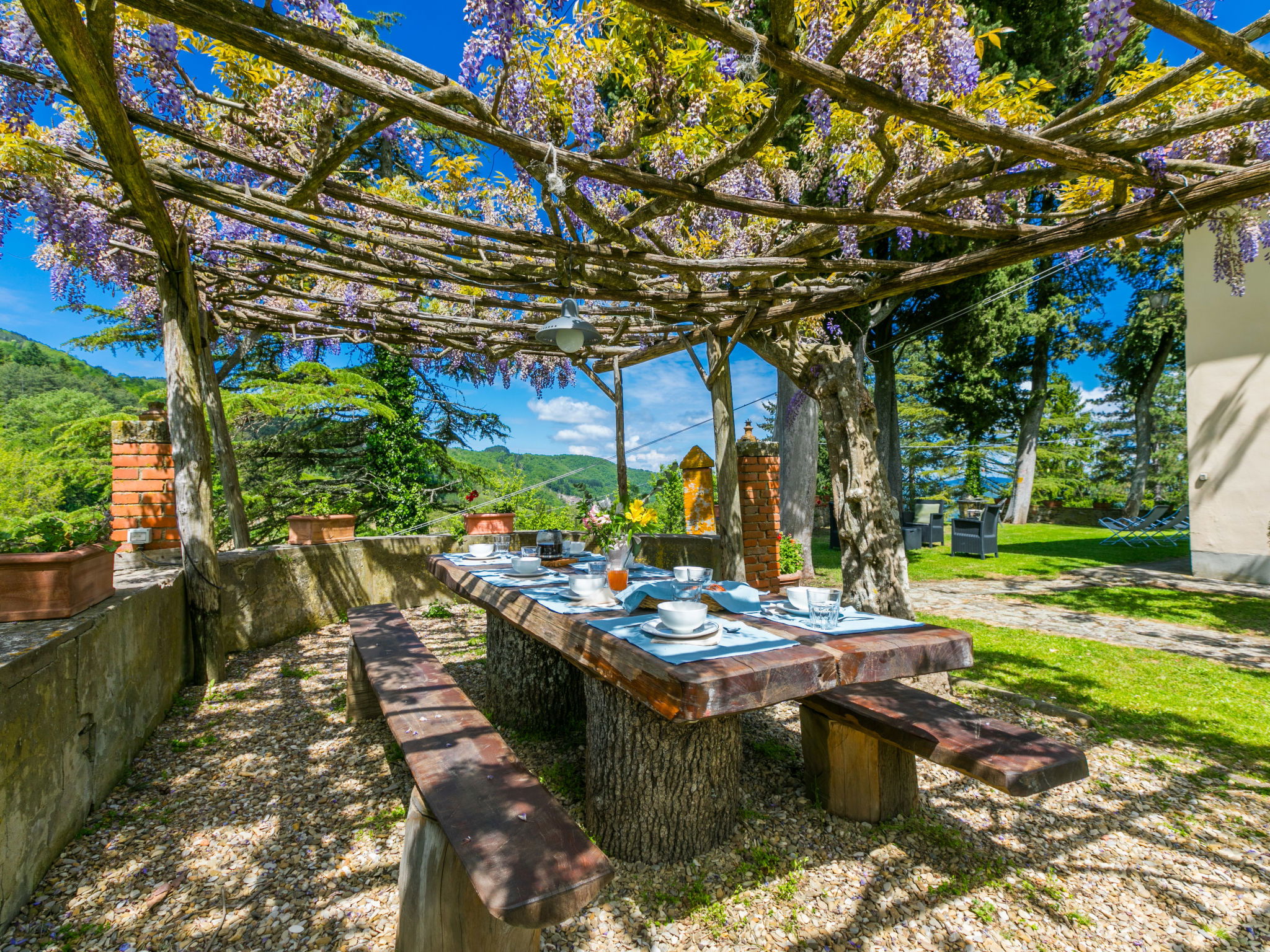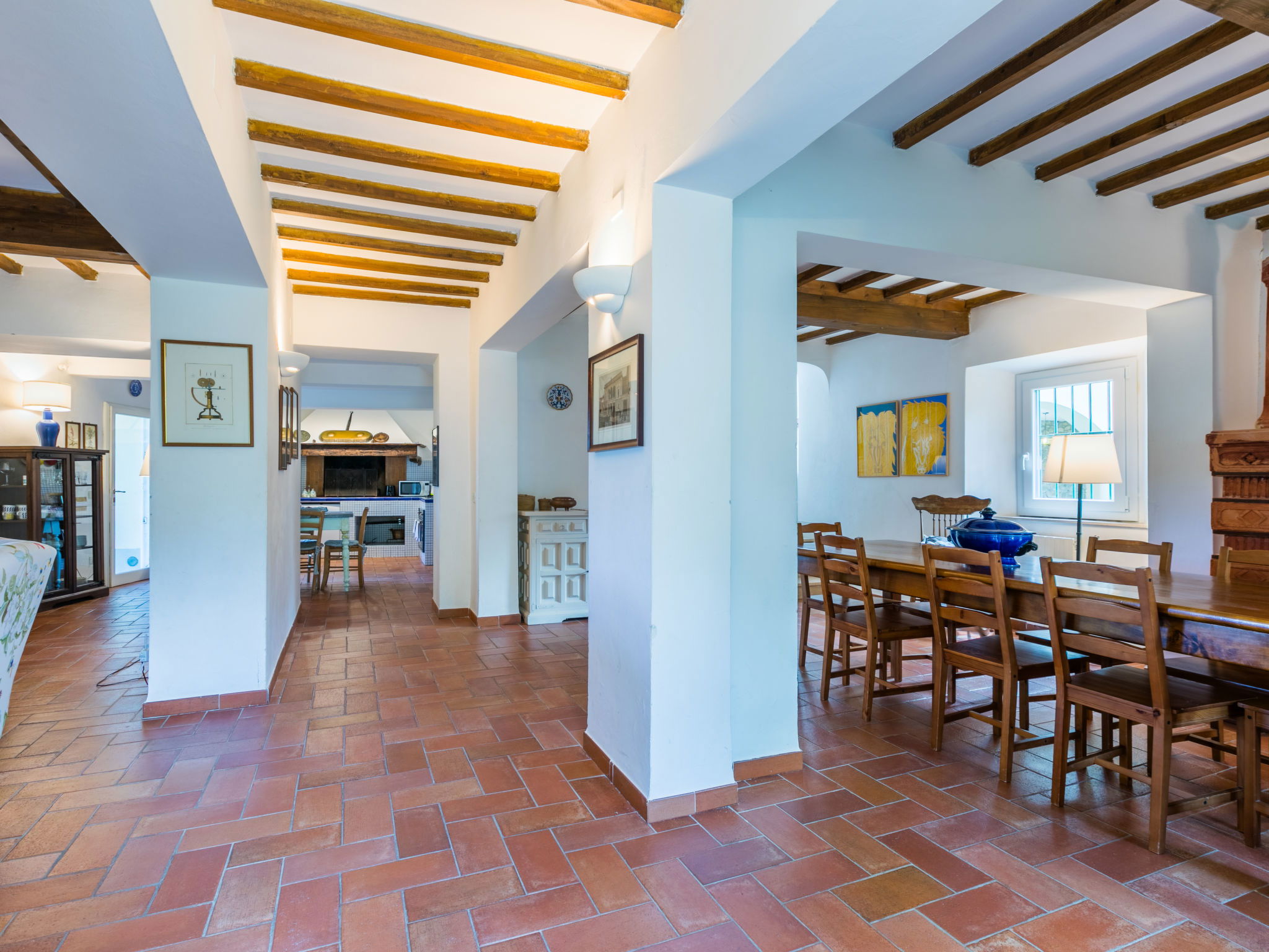 "Villa Castagnoli", 7-room villa 250 m2 on 2 levels. Comfortable and wooden furniture furnishings: living/dining room with open-hearth fireplace, dining table and satellite TV (flat screen). Exit to the garden. Open kitchen (oven, dishwasher, 5 gas rings, freezer, electric coffee machine) with open-hearth fireplace. Sep. WC. Upper floor: 3 rooms, each room with 1 french bed (160 cm). 2 rooms, each room with 2 beds (80 cm). Bath/WC, 2 showers/WC. Gas heating. Parquet floors. Terrace roofed. View of the valley and the garden. Facilities: washing machine, iron, baby cot for up to 2 year olds. Internet (WiFi, free). Parking (4 cars) at the house. Please note: non-smokers only. Maximum 1 pet/ dog allowed. No mandatory extra charges to be paid on-site except for local tax. IT048021B49F5V68X8