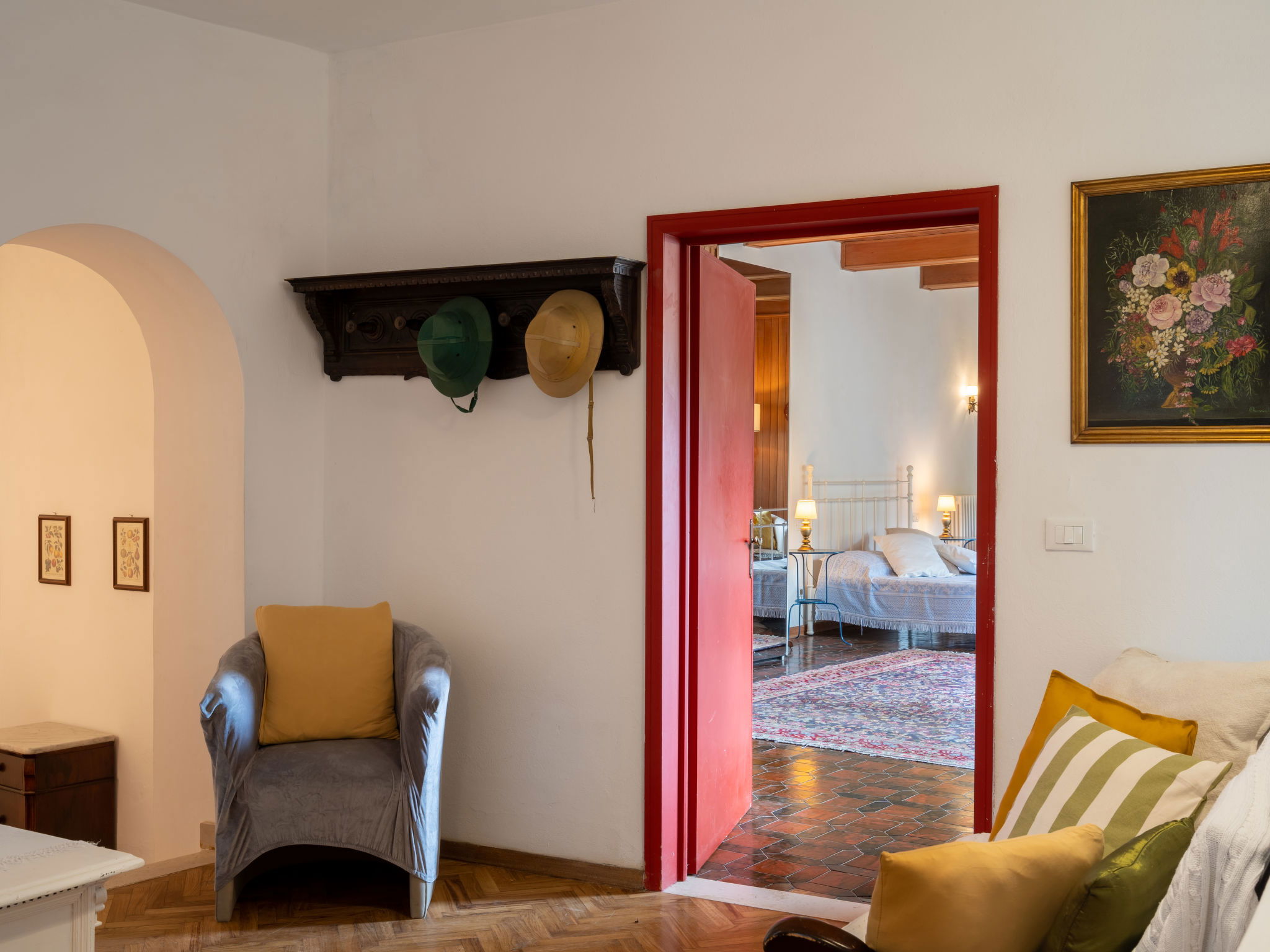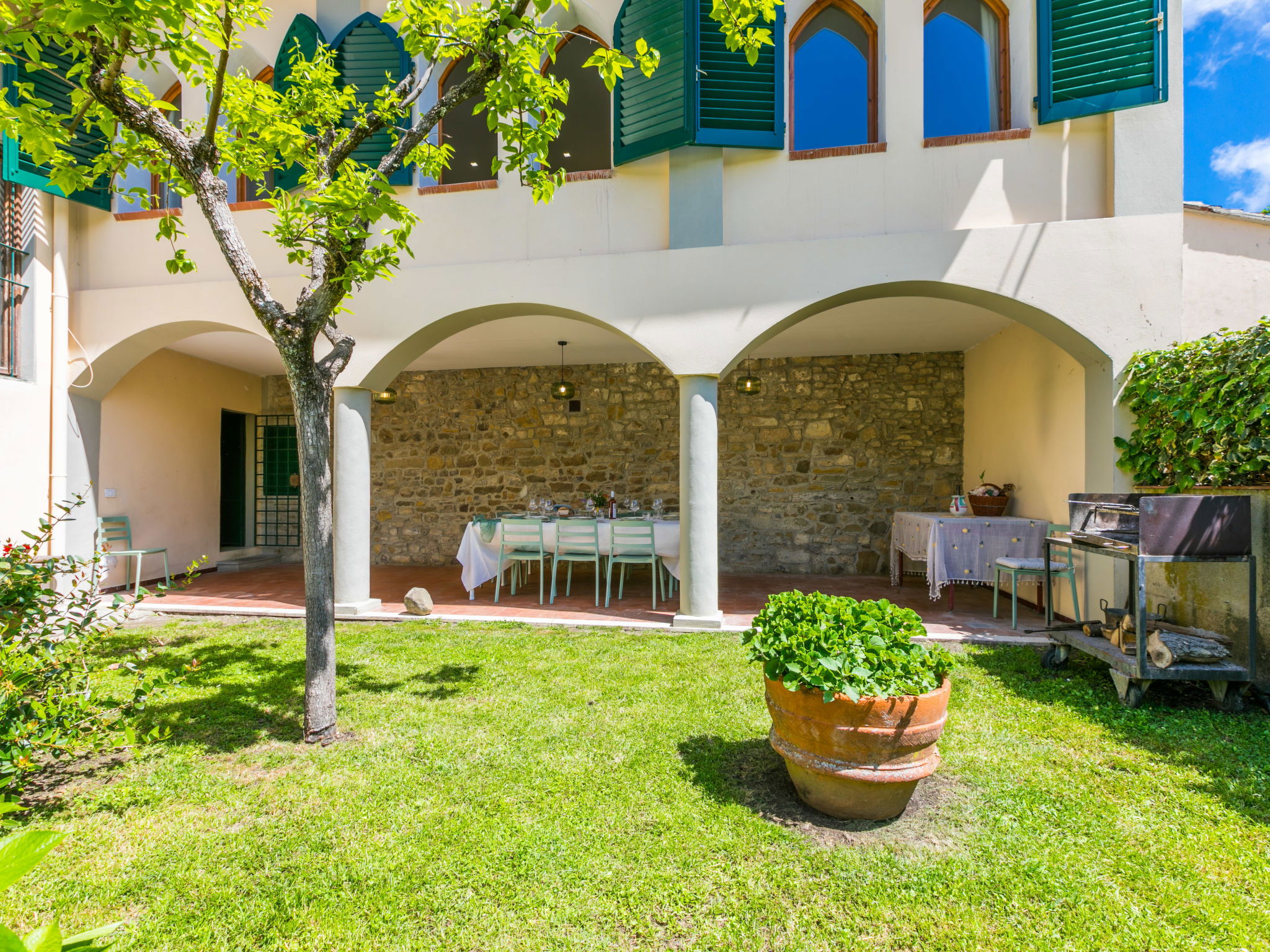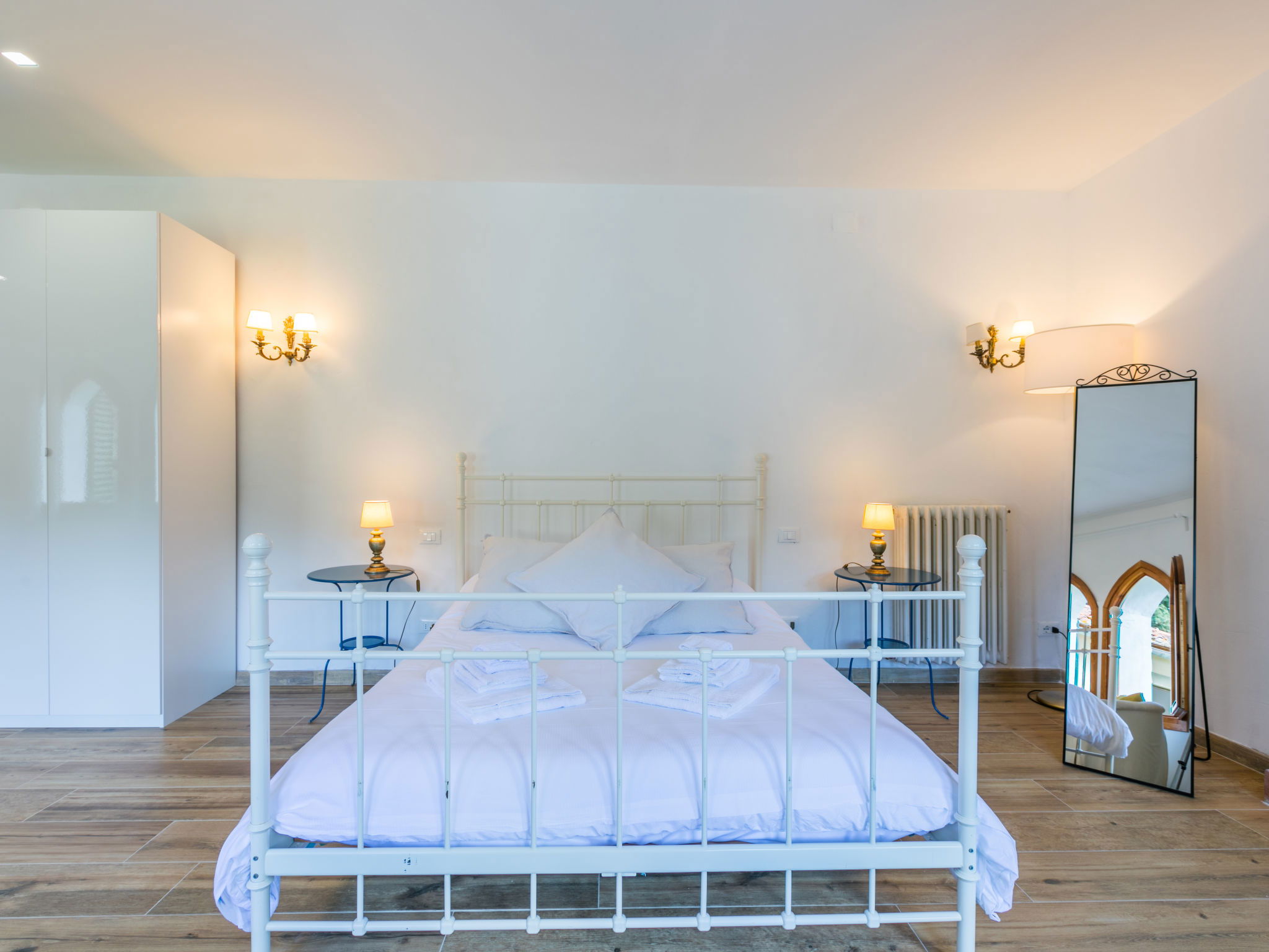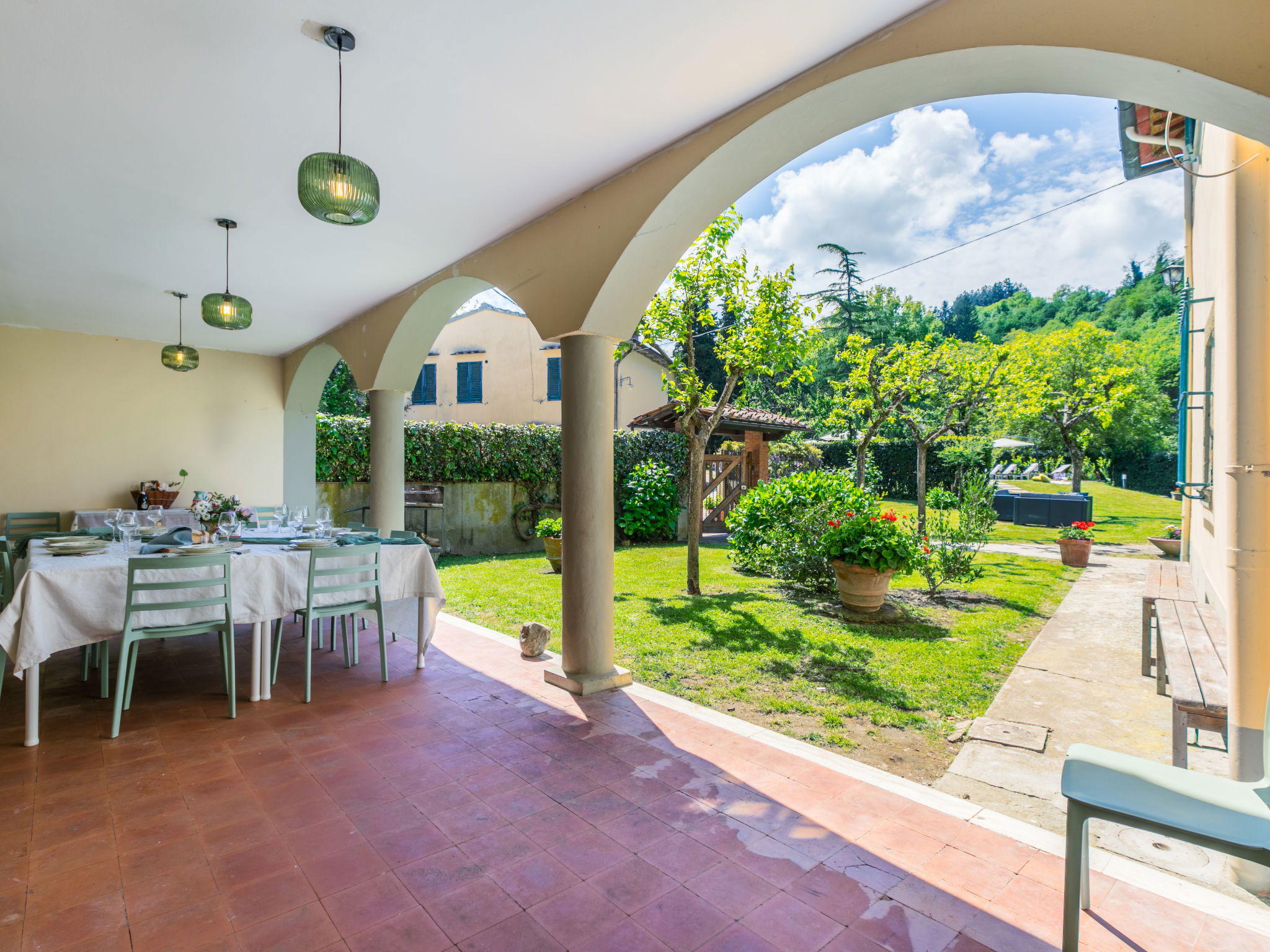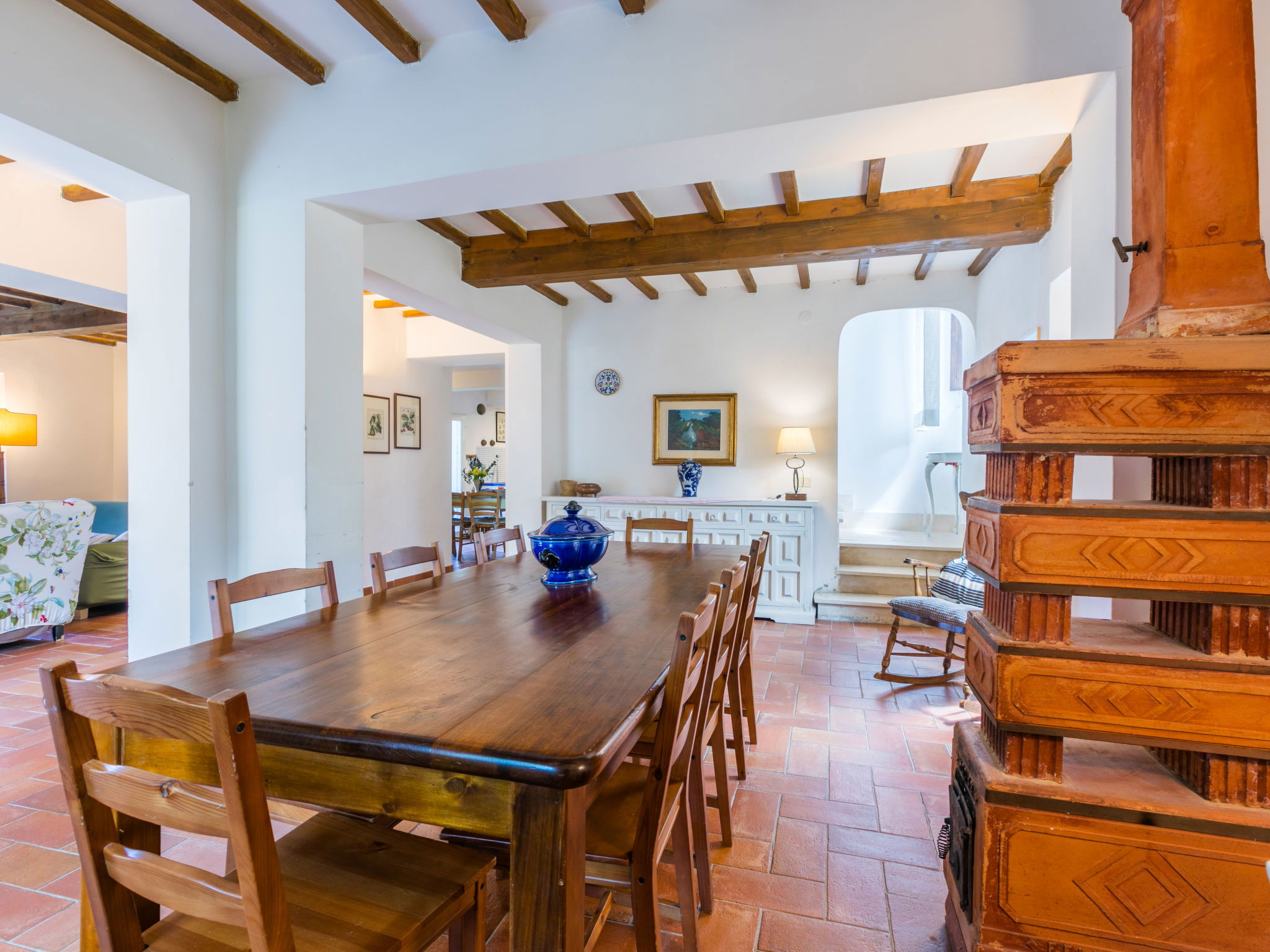 "Villa Castagnoli", 7-room villa 250 m2 on 2 levels. Comfortable and wooden furniture furnishings: living/dining room with open-hearth fireplace, dining table and satellite TV (flat screen). Exit to the garden. Open kitchen (oven, dishwasher, 5 gas rings, freezer, electric coffee machine) with open-hearth fireplace. Sep. WC. Upper floor: 3 rooms, each room with 1 french bed (160 cm). 2 rooms, each room with 2 beds (80 cm). Bath/WC, 2 showers/WC. Gas heating. Parquet floors. Terrace roofed. View of the valley and the garden. Facilities: washing machine, iron, baby cot for up to 2 year olds. Internet (WiFi, free). Parking (4 cars) at the house. Please note: non-smokers only. Maximum 1 pet/ dog allowed. No mandatory extra charges to be paid on-site except for local tax. IT048021B49F5V68X8