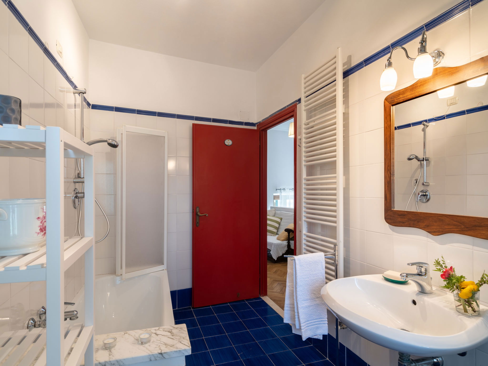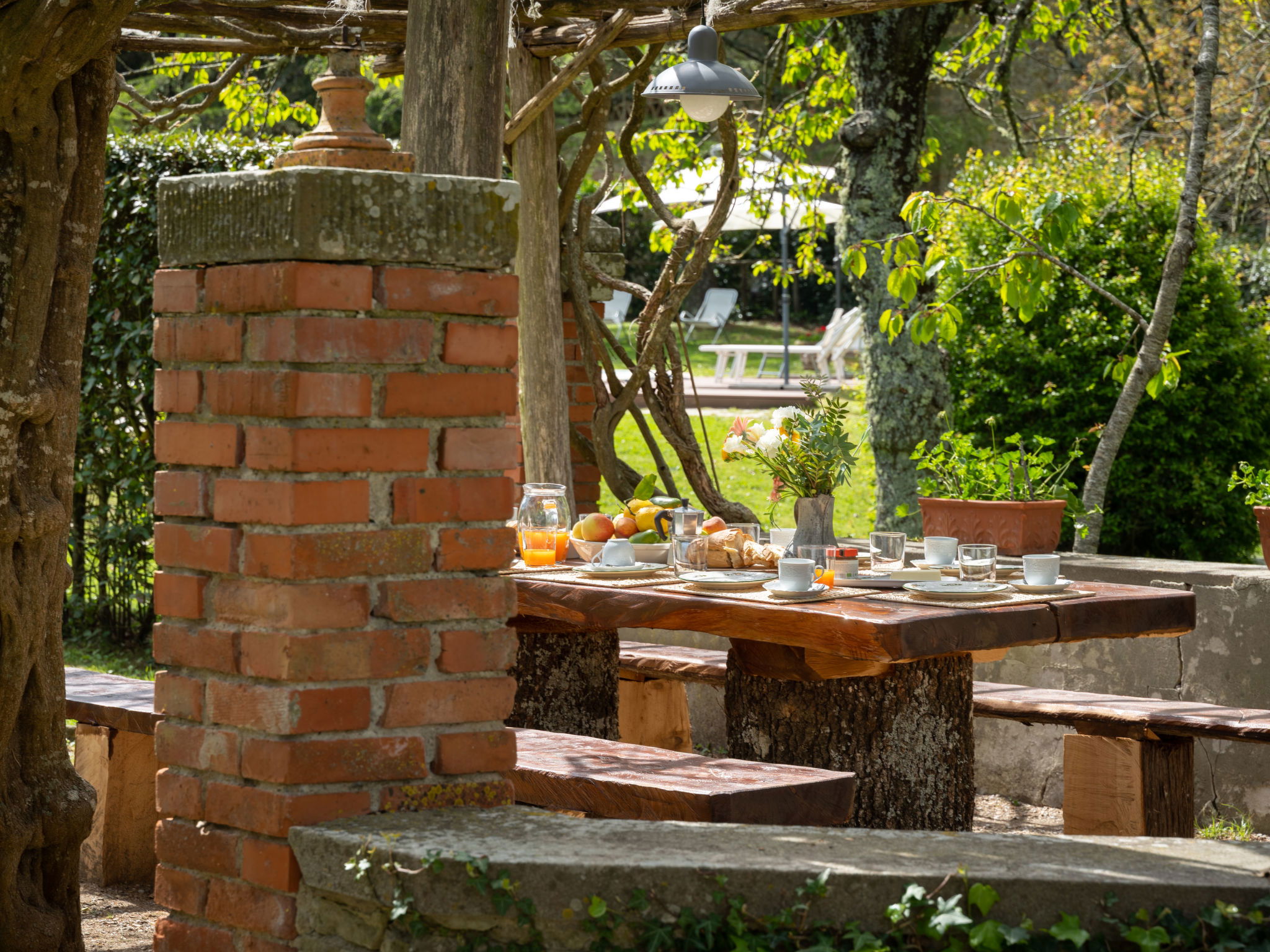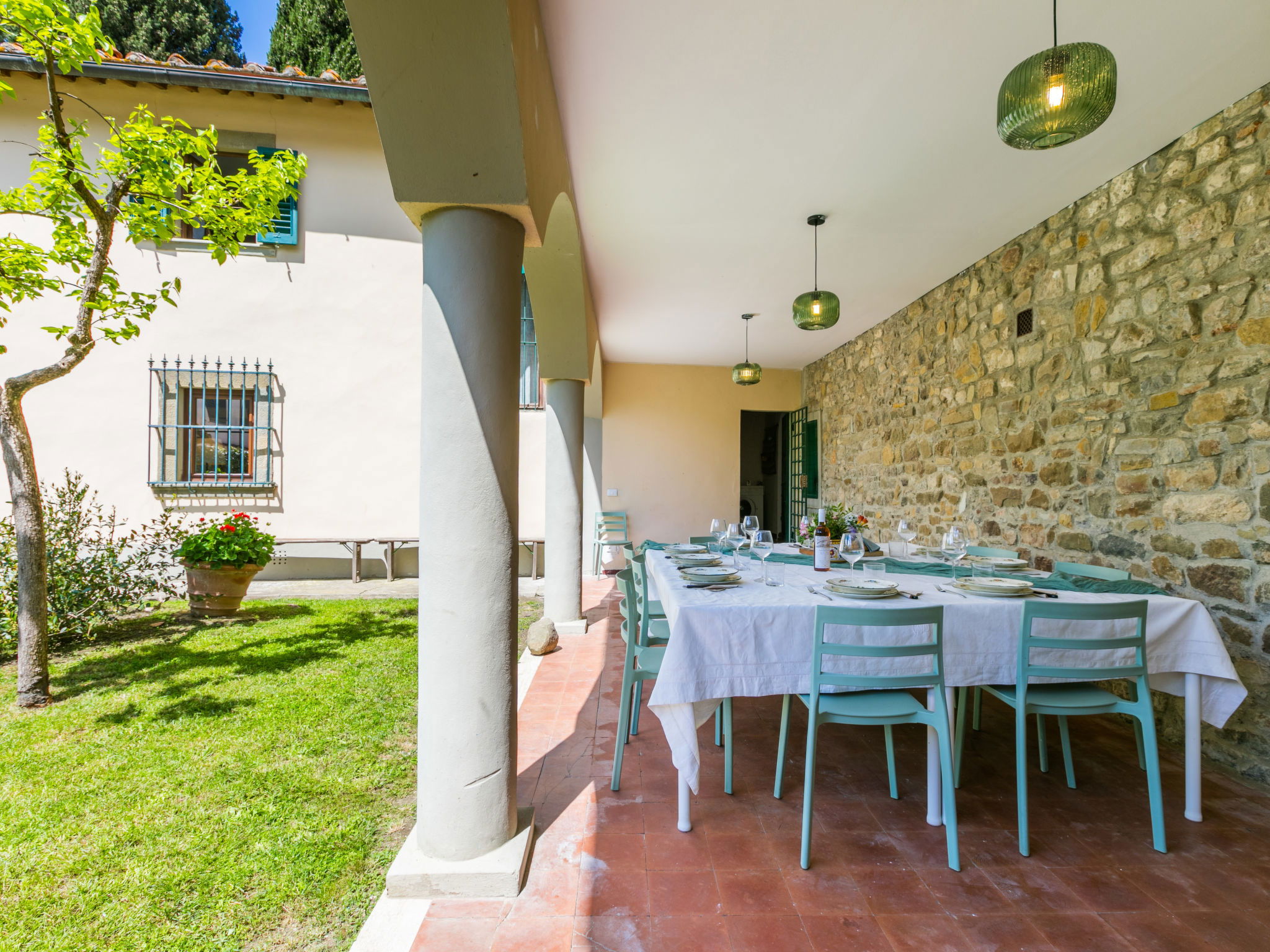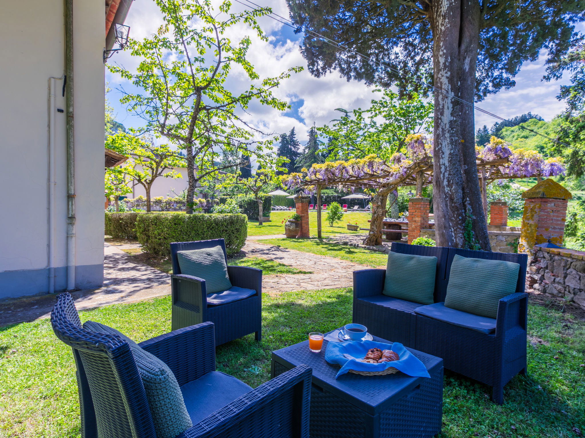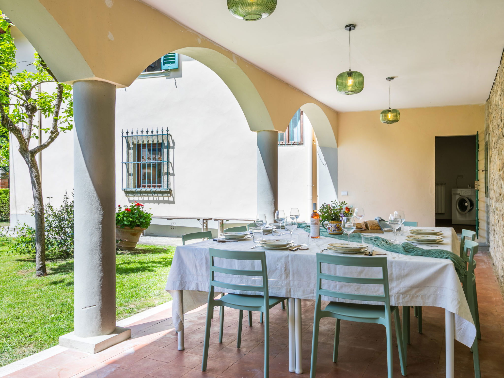 "Villa Castagnoli", 7-room villa 250 m2 on 2 levels. Comfortable and wooden furniture furnishings: living/dining room with open-hearth fireplace, dining table and satellite TV (flat screen). Exit to the garden. Open kitchen (oven, dishwasher, 5 gas rings, freezer, electric coffee machine) with open-hearth fireplace. Sep. WC. Upper floor: 3 rooms, each room with 1 french bed (160 cm). 2 rooms, each room with 2 beds (80 cm). Bath/WC, 2 showers/WC. Gas heating. Parquet floors. Terrace roofed. View of the valley and the garden. Facilities: washing machine, iron, baby cot for up to 2 year olds. Internet (WiFi, free). Parking (4 cars) at the house. Please note: non-smokers only. Maximum 1 pet/ dog allowed. No mandatory extra charges to be paid on-site except for local tax. IT048021B49F5V68X8