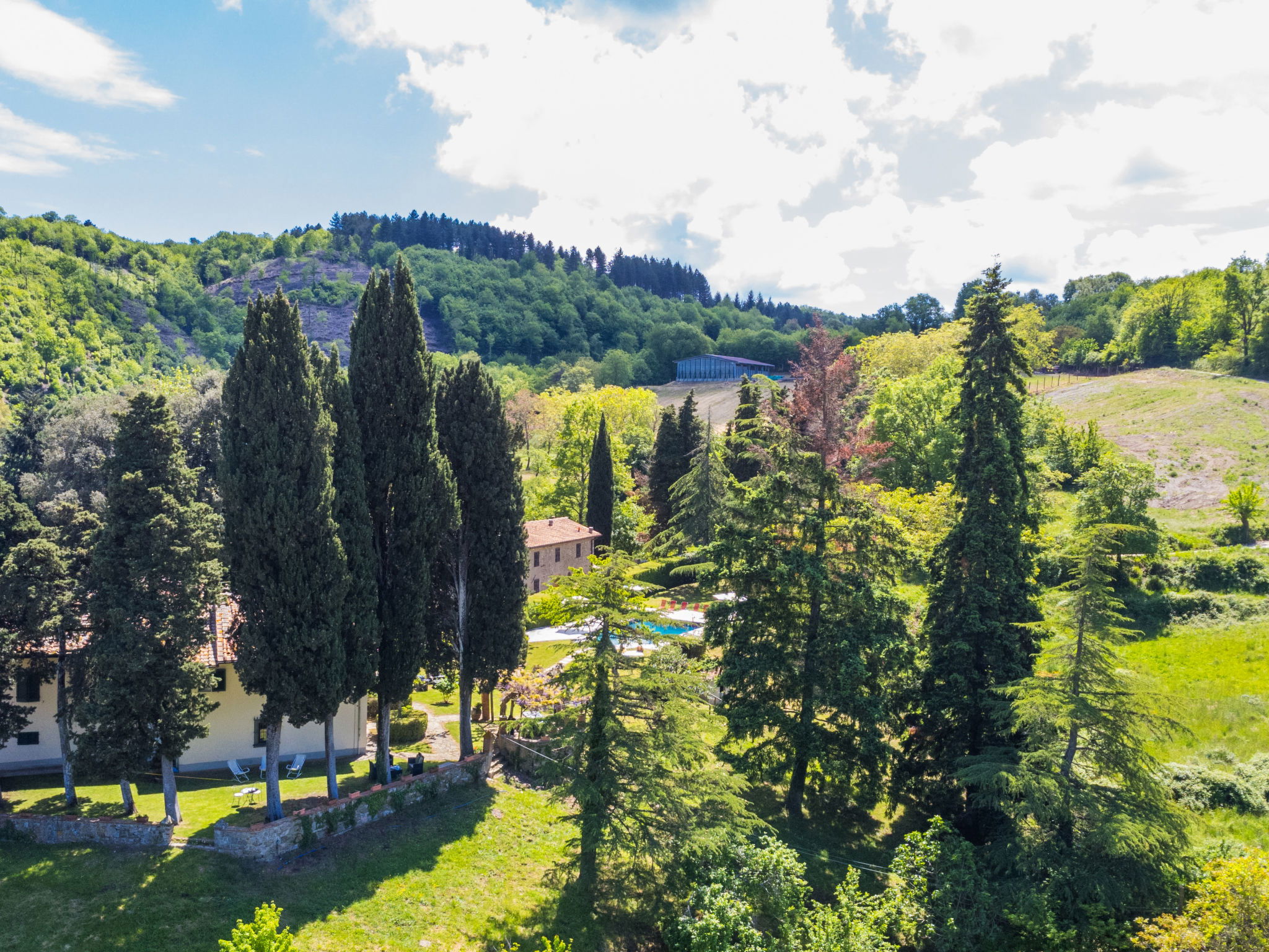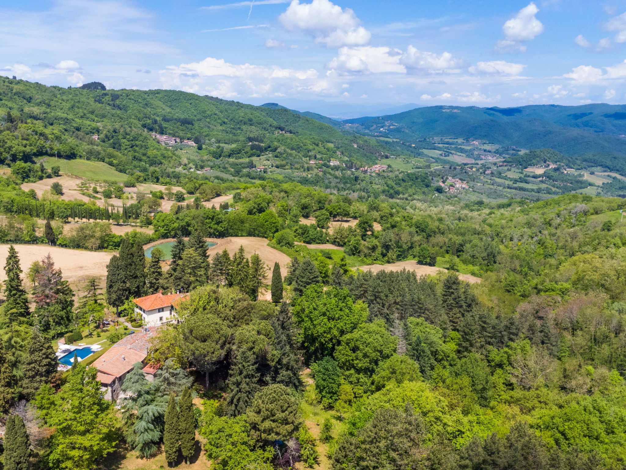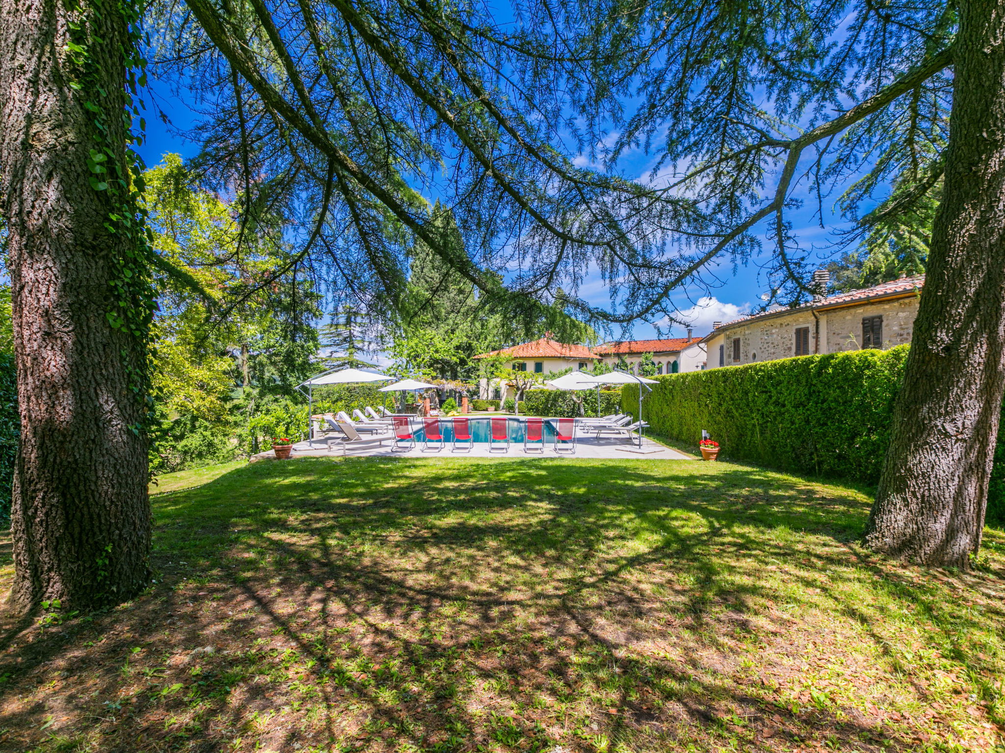 Manor house "Castagnoli", 650 m a.s.l., surrounded by fields and vineyards. 12 km from the centre of Greve in Chianti, 2 km from the centre of Lucolena, in a secluded position, in the countryside. Private: property 40 ha, park, beautiful, well-kept garden (not fenced) with flowers and trees, lawn for sunbathing, swimming pool (10 x 5 m, depth 100 - 200 cm, seasonal availability: 10.May. - 10.Oct.). Outdoor shower, terrace, barbecue, pool maintenance by the owner/gardener. 500 m long bumpy motor access (via unmade road). Parking on the premises. Shop 2 km, supermarket 10 km, bus stop 3 km, sandy beach "Marina di Cecina" 85 km. Golf course (18 hole) 20 km, walking paths from the house 50 m. Nearby attractions: Siena 30 km, Volterra 44 km, Firenze 50 km, Arezzo 75 km. Please note: car recommended. Baby equipment (included). Groups of teenagers on request only.
