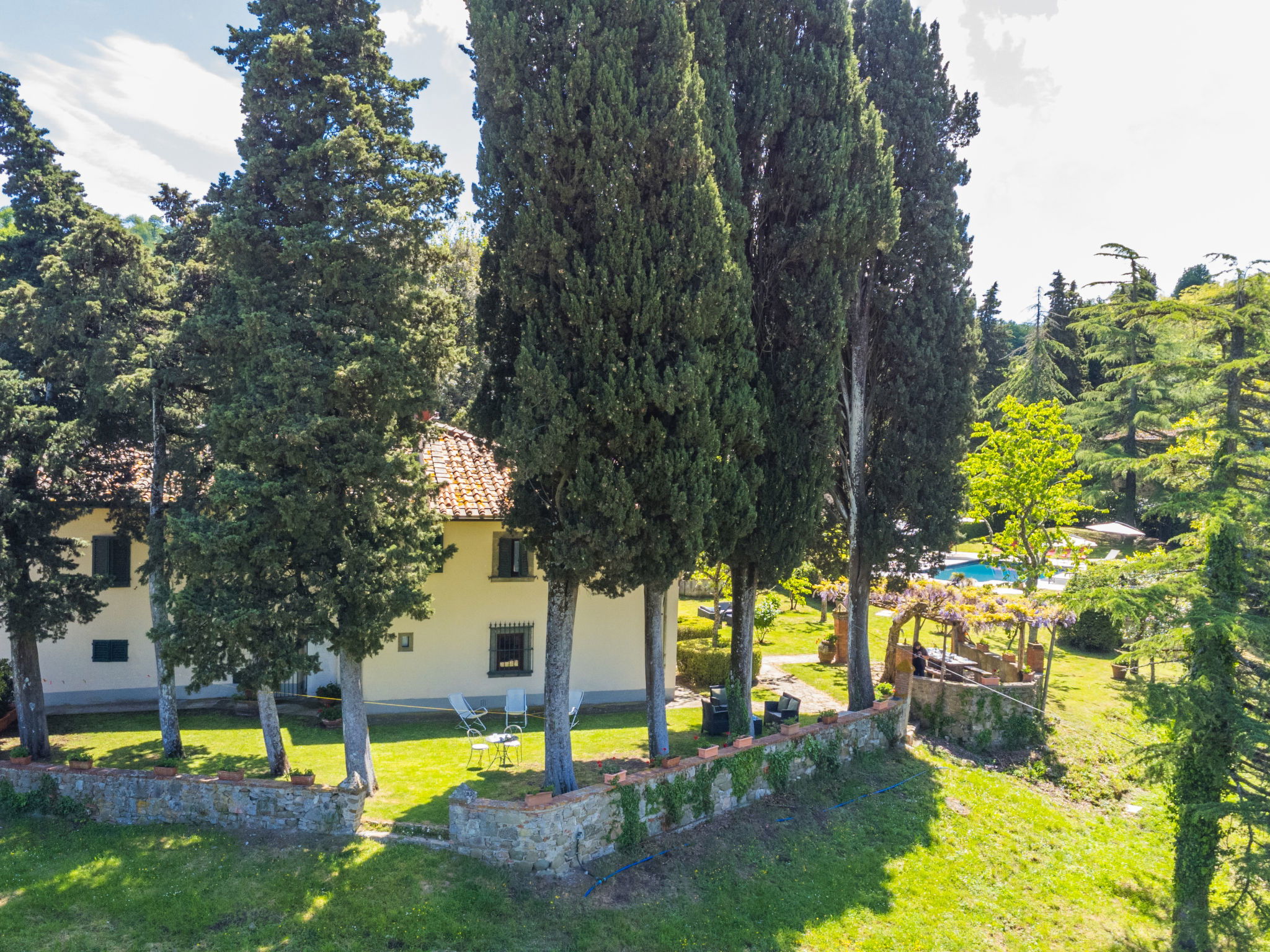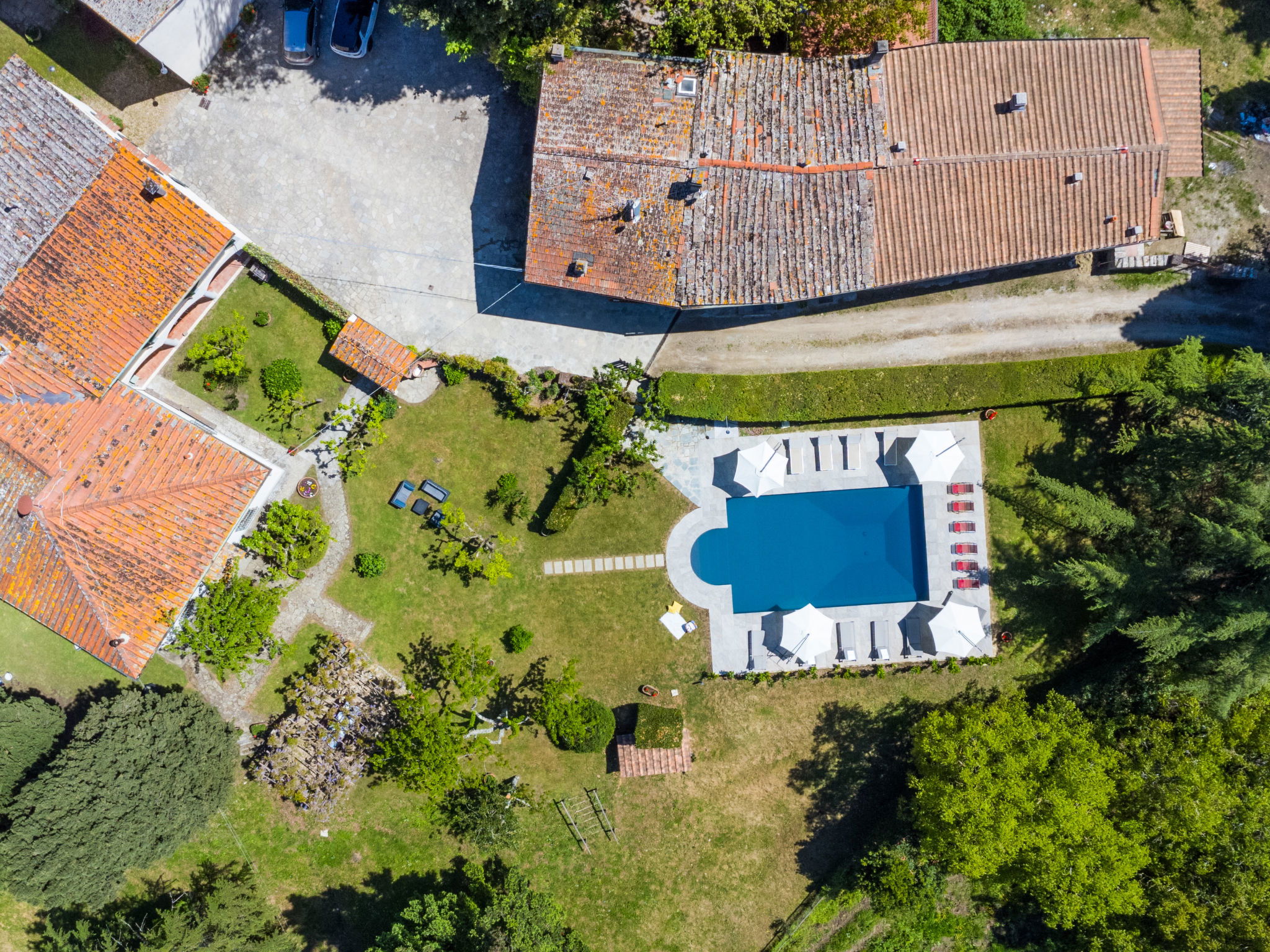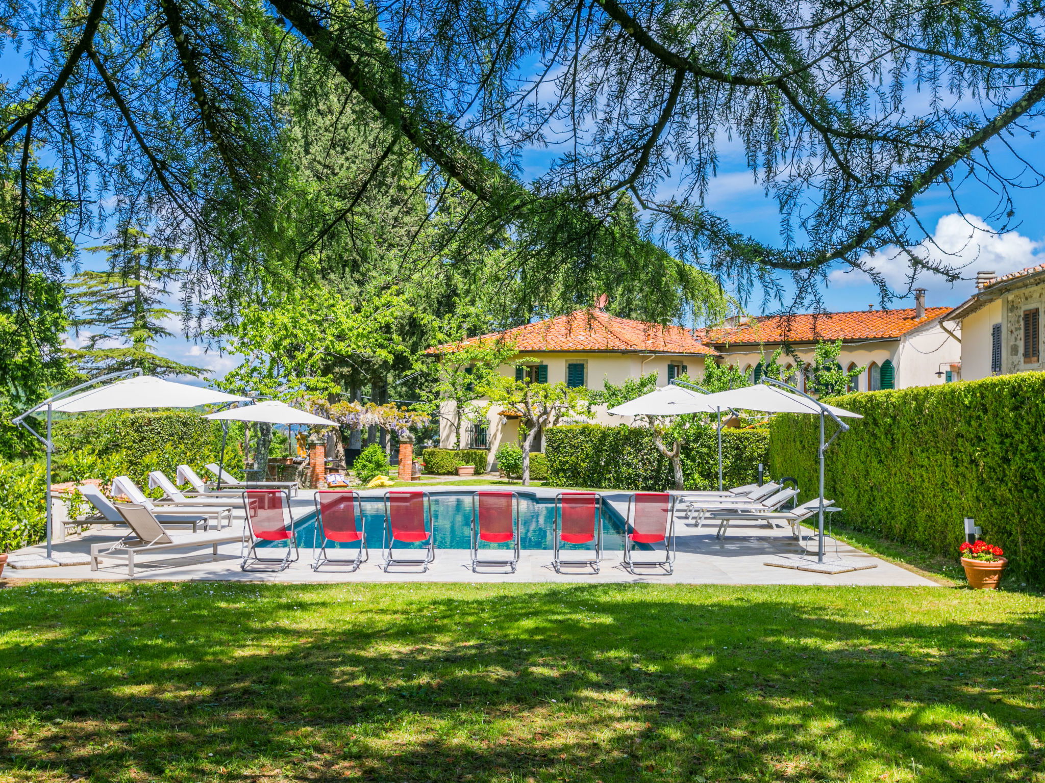 Manor house "Castagnoli", 650 m a.s.l., surrounded by fields and vineyards. 12 km from the centre of Greve in Chianti, 2 km from the centre of Lucolena, in a secluded position, in the countryside. Private: property 40 ha, park, beautiful, well-kept garden (not fenced) with flowers and trees, lawn for sunbathing, swimming pool (10 x 5 m, depth 100 - 200 cm, seasonal availability: 10.May. - 10.Oct.). Outdoor shower, terrace, barbecue, pool maintenance by the owner/gardener. 500 m long bumpy motor access (via unmade road). Parking on the premises. Shop 2 km, supermarket 10 km, bus stop 3 km, sandy beach "Marina di Cecina" 85 km. Golf course (18 hole) 20 km, walking paths from the house 50 m. Nearby attractions: Siena 30 km, Volterra 44 km, Firenze 50 km, Arezzo 75 km. Please note: car recommended. Baby equipment (included). Groups of teenagers on request only.