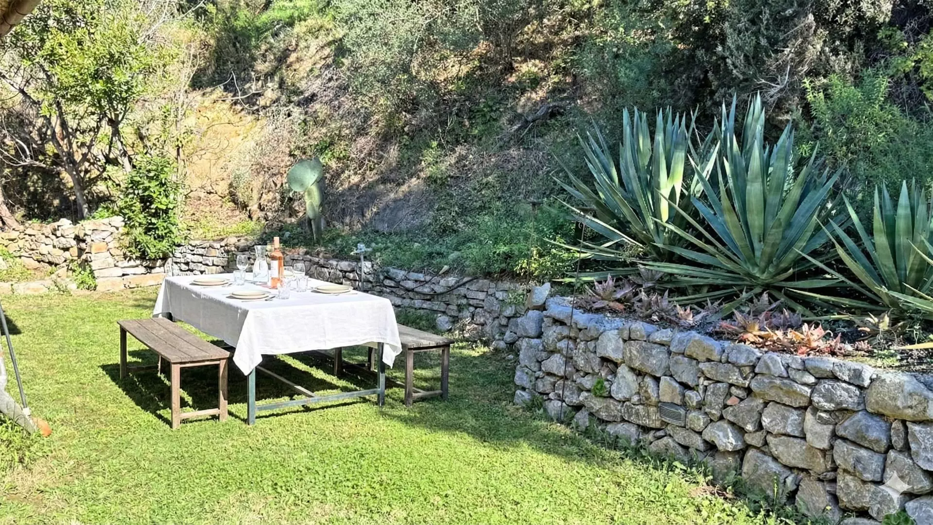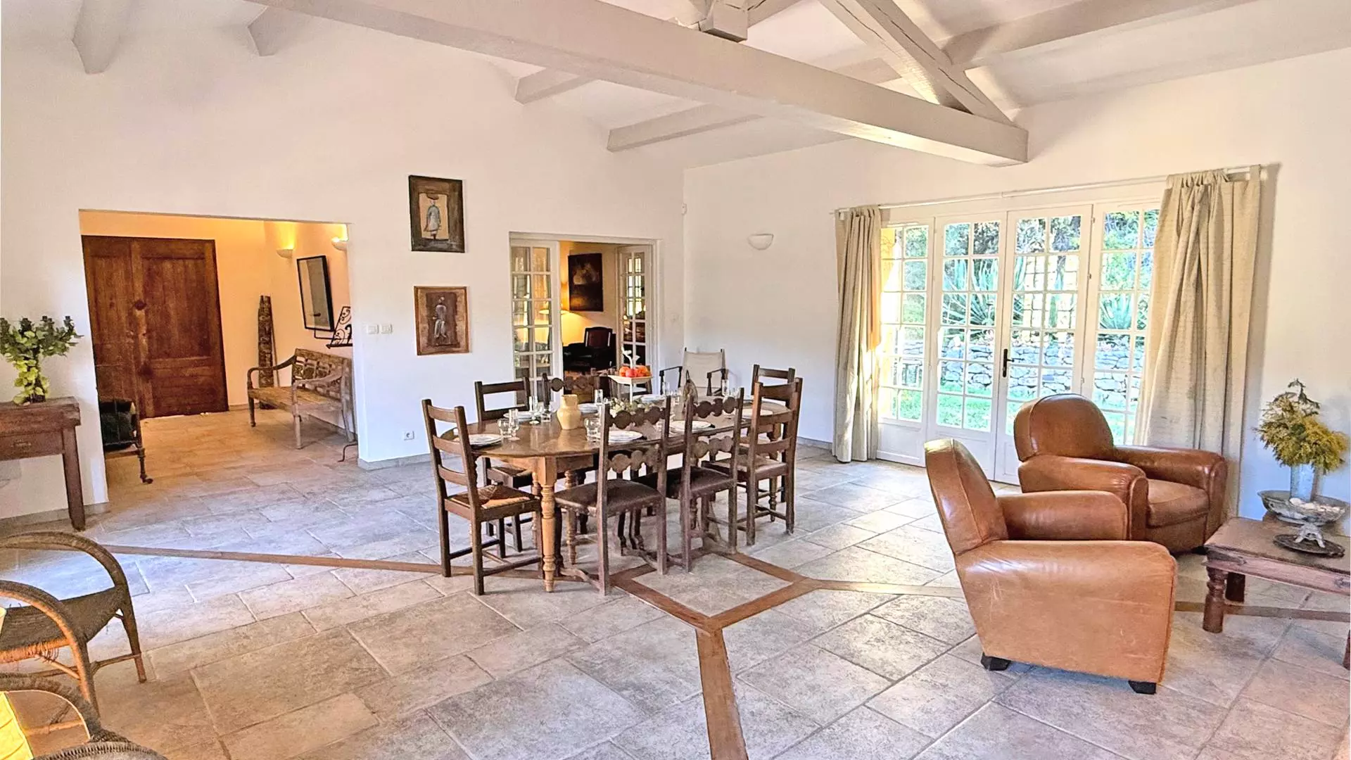 - East-facing terrace with dining area for 10/12 people, access to the dining room and swimming pool