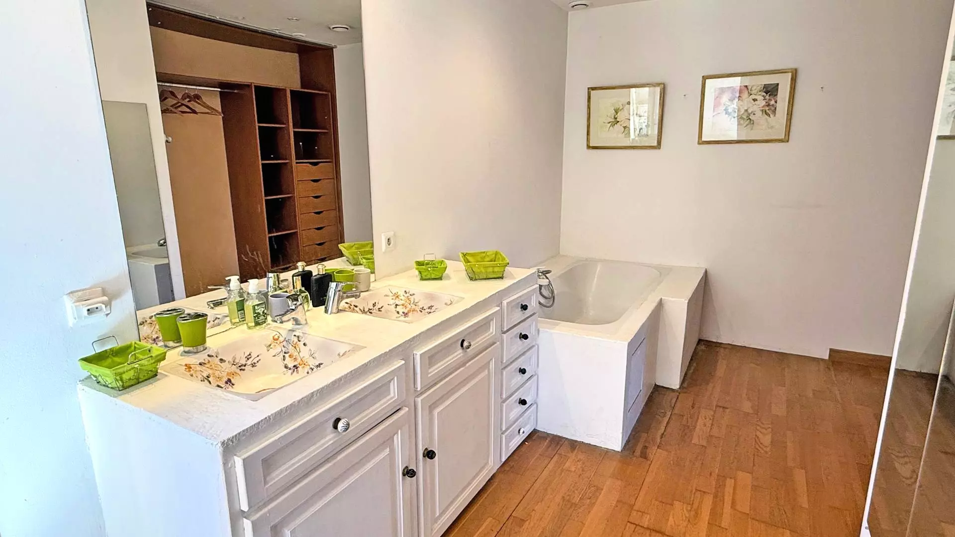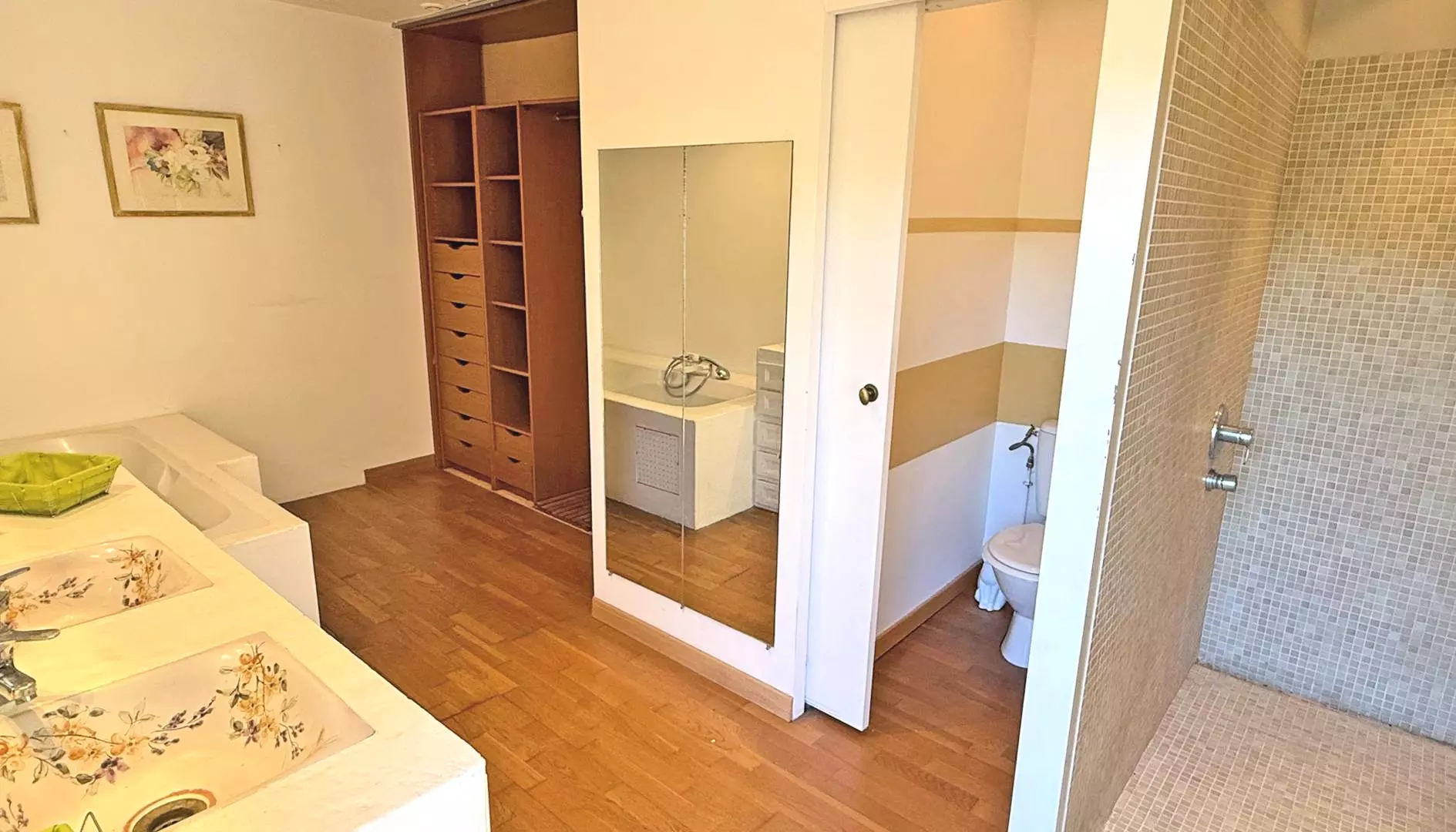 - Air-conditioned bedroom 1 with en suite: 160cm double bed, dressing room, double sinks, walk-in shower and bathtub, separate WC - Exterior access by the pool