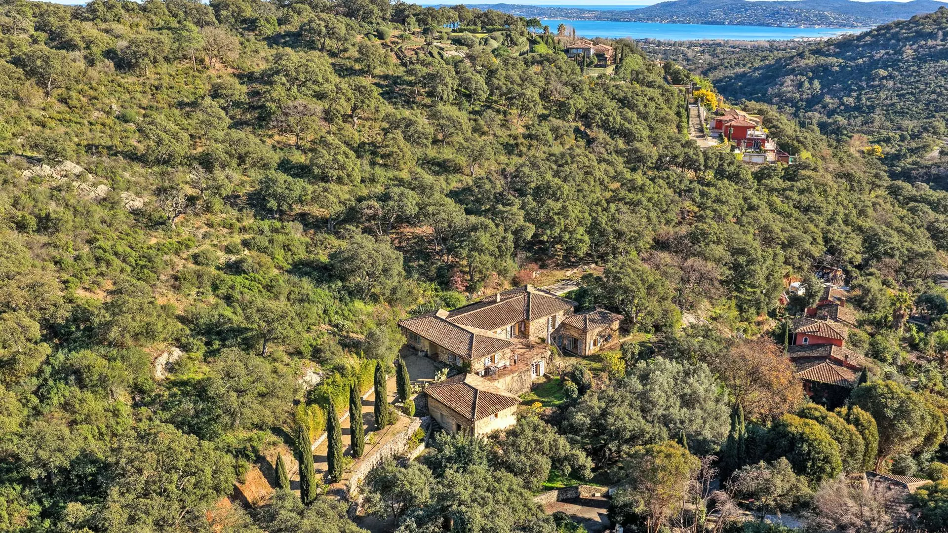 Beautiful 340 m² villa nestled in the hills between Grimaud and Plan de la Tour. This haven of peace, ideal for 12 people with its 6 bedrooms, offers an idyllic setting in a quiet, green environment on the edge of the forest. Enjoy the swimming pool, sauna, pétanque court, or the beaches located just 4 km away. Perfect for an unforgettable holiday with family or friends!