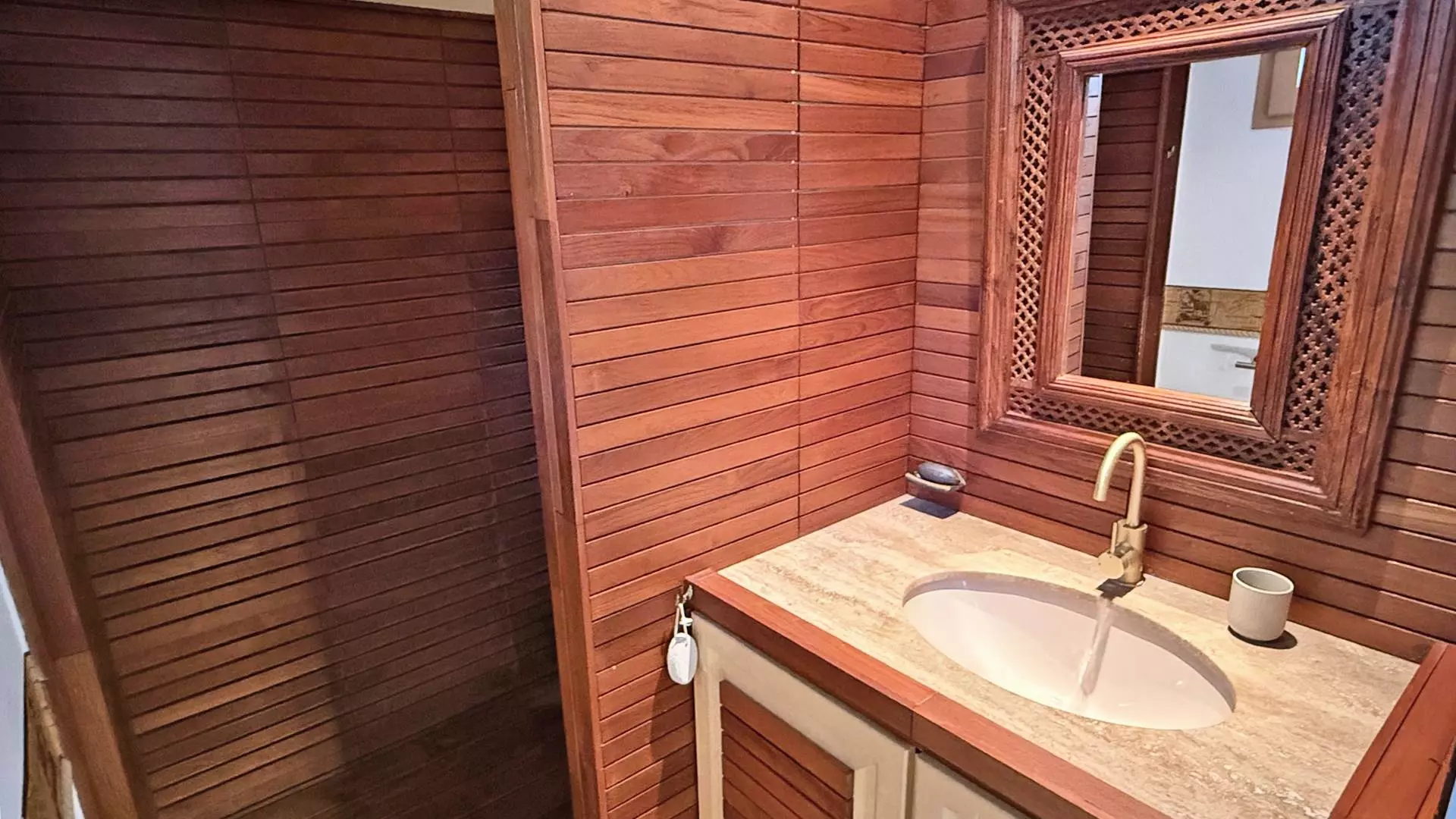 - Sauna with sink and shower
