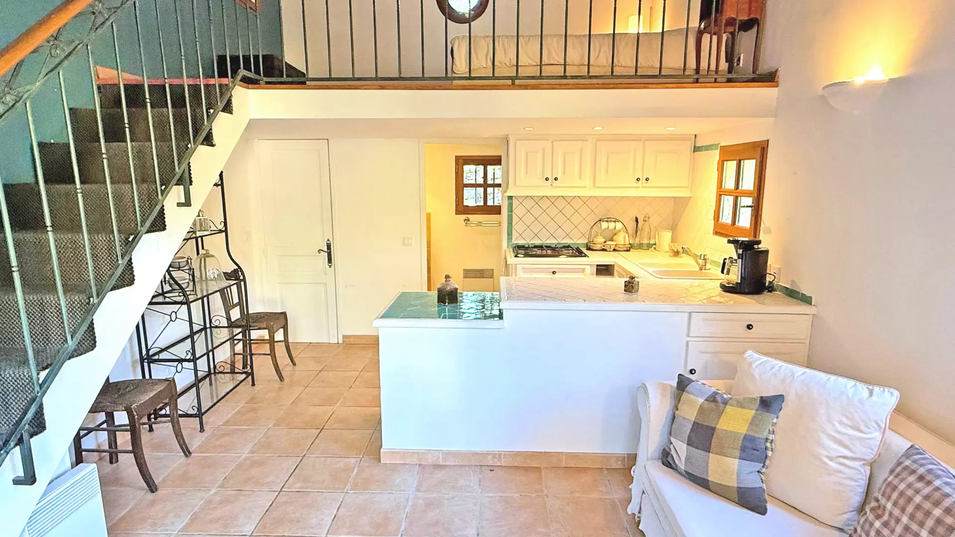 - Fully equipped kitchen: gas hob, small refrigerator, coffee maker, crockery