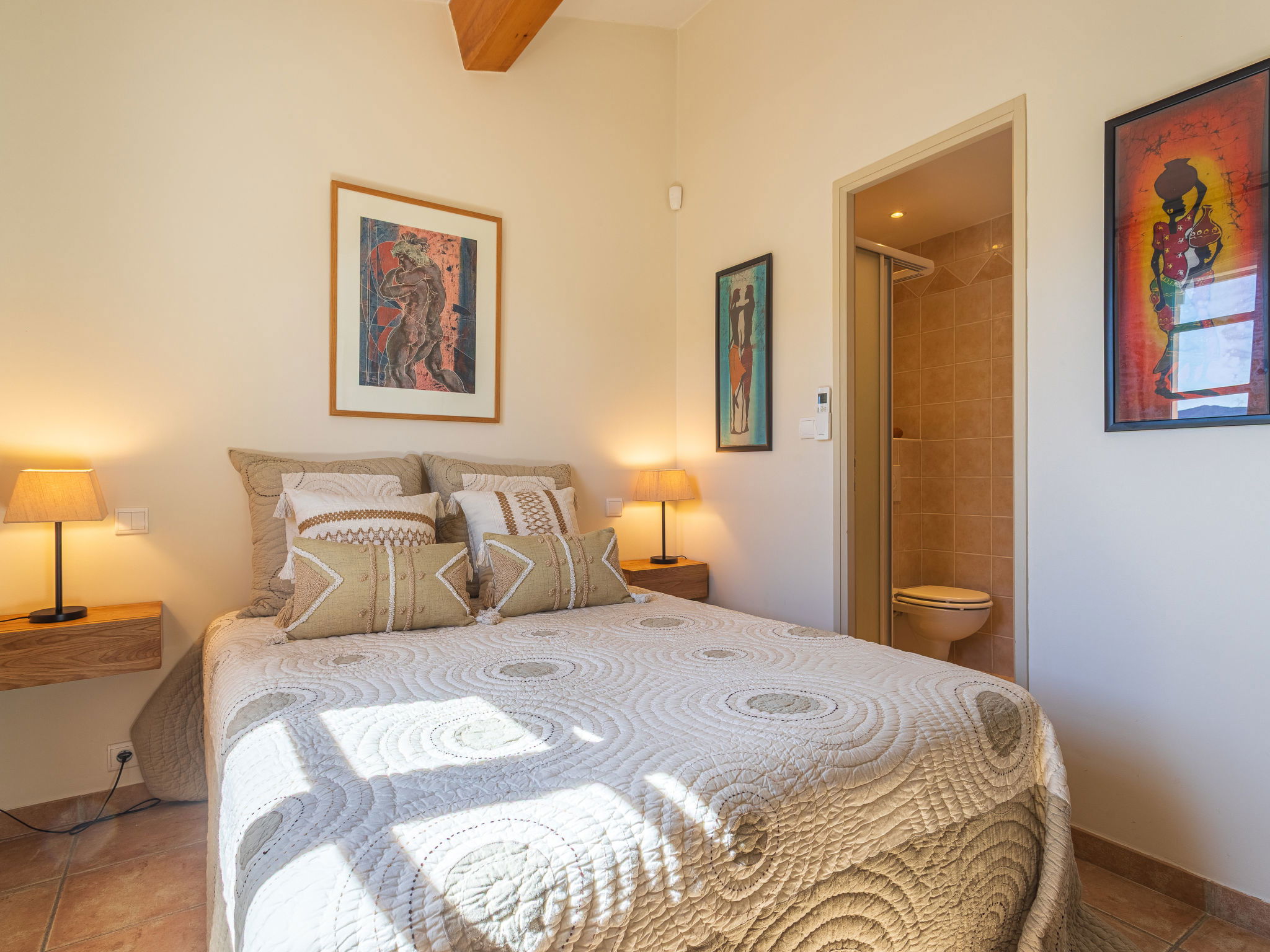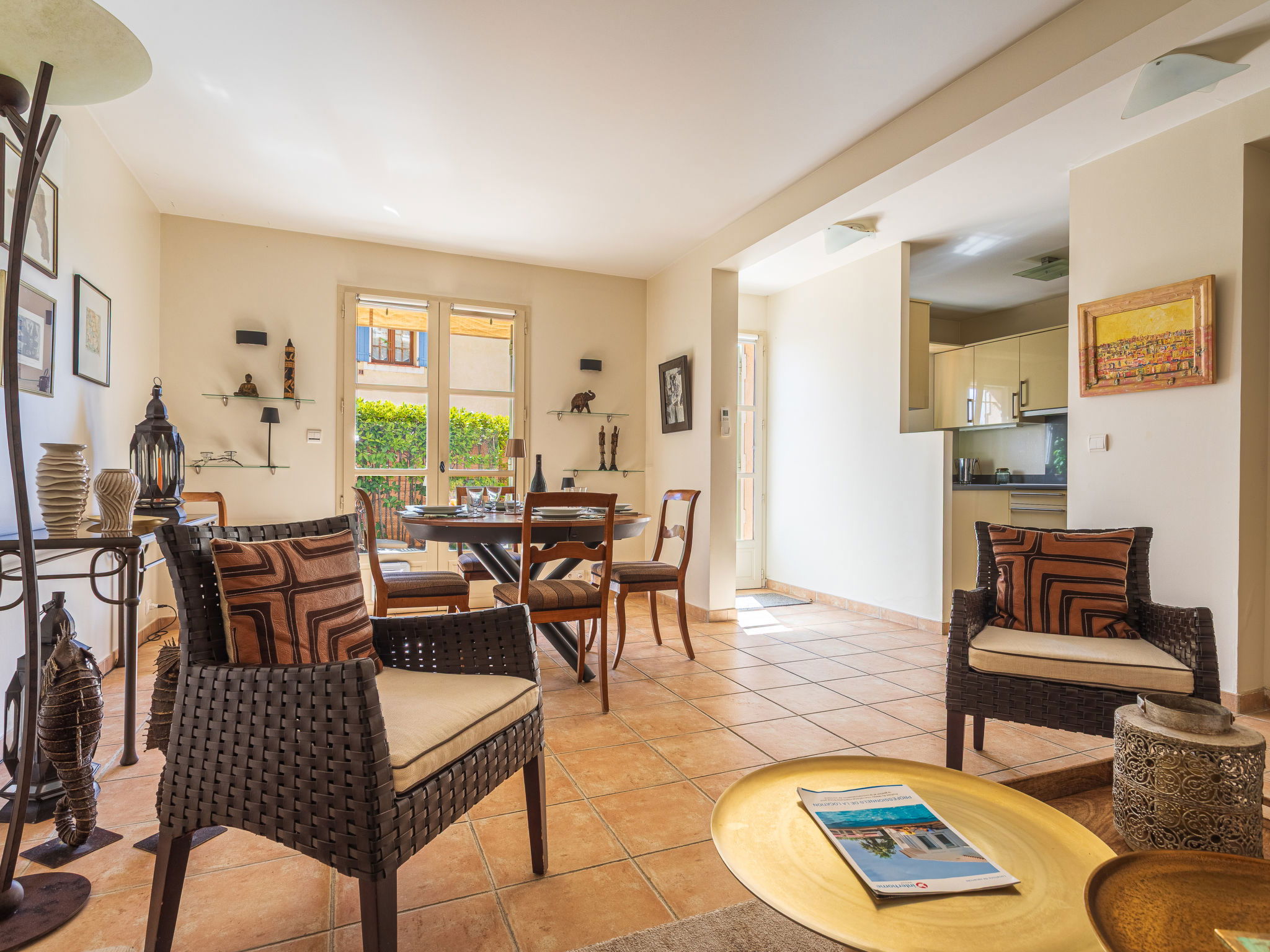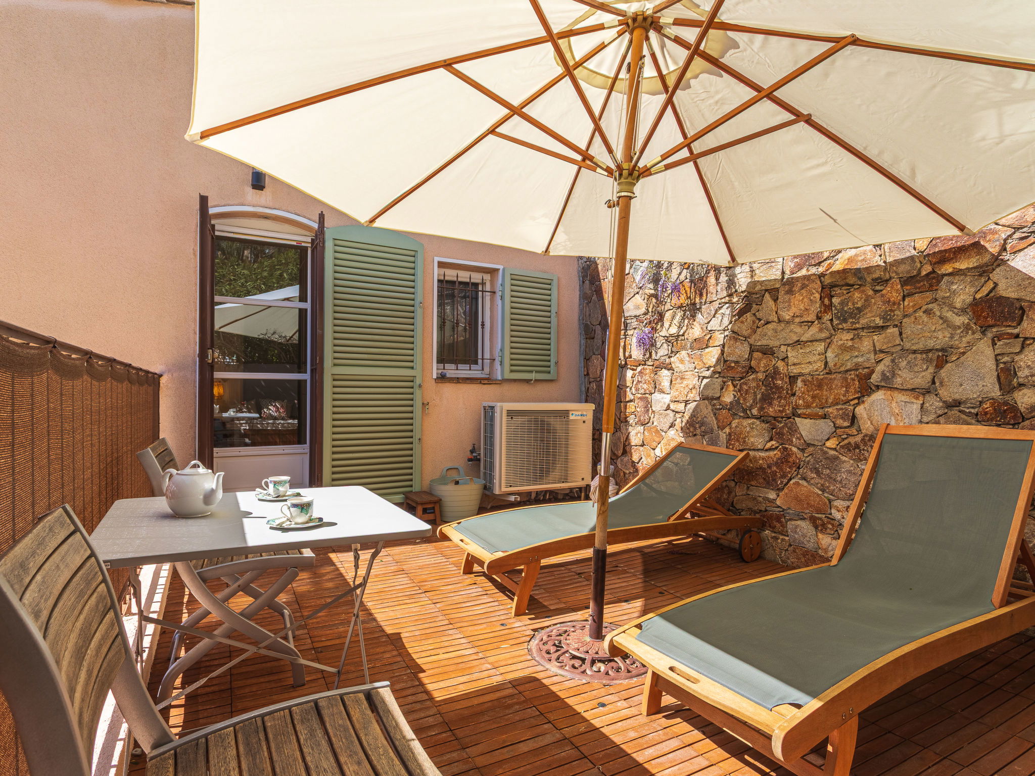 Beautiful terraced house "Les Migraniers 2", 2 storeys. In the resort 400 m from the centre of Grimaud, 7 km from the sea, 7 km from the beach. Shop, grocery, restaurant, bar, bakery 400 m, bus stop "Village Grimaud" 400 m, sandy beach "Port Grimaud" 7 km. Sports harbour 5 km, golf course (18 hole) 9 km. Nearby attractions: Saint Tropez 12 km, Sainte Maxime 13 km, Plages de Pampelonne 19 km, Cannes 85 km, Nice 110 km. Well-known lakes can easily be reached: Le lac de Sainte Croix 98 km. Hiking paths: Le Massif de l'Esterel 50 km. Please note: car recommended.