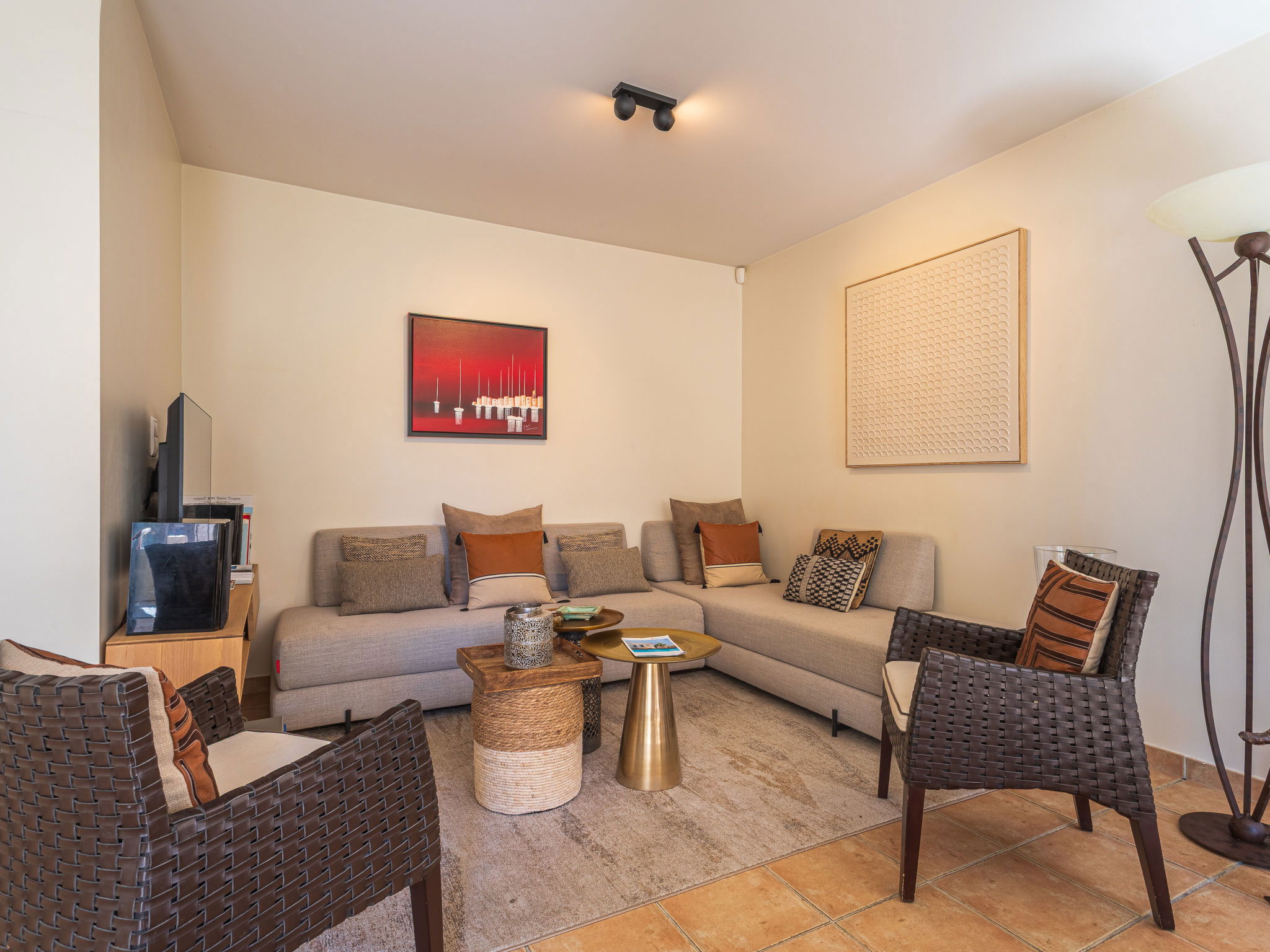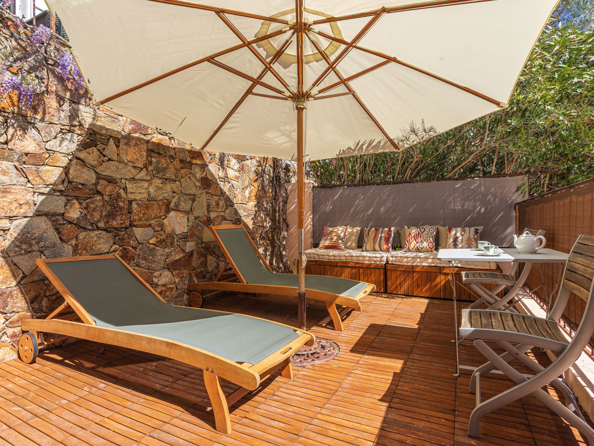 3-room semi-detached house 67 m2 on 2 levels. Cosy furnishings: living/dining room with TV (flat screen). Exit to the terrace. Open kitchen (oven, dishwasher, 4 induction hot plates, toaster, kettle, microwave, freezer, electric coffee machine, Capsules for coffee machine (Nespresso) extra). Sep. WC. Upper floor: 1 room with 1 french bed (180 cm, length 200 cm), shower/WC. Exit to the balcony. 1 room with 1 french bed (140 cm, length 190 cm), shower/WC. Electric heating, air-conditioning. Balcony 20 m2, south facing position, terrace 20 m2, south facing position. Terrace furniture, deck chairs (2). Facilities: washing machine. Internet (WiFi, free). Parking (1 car). Please note: non-smoking house. 1 small pet/ dog allowed. Smoke alarm. Offer by a private individual according to Art. 155, IV of CGI. 83068002397Y6