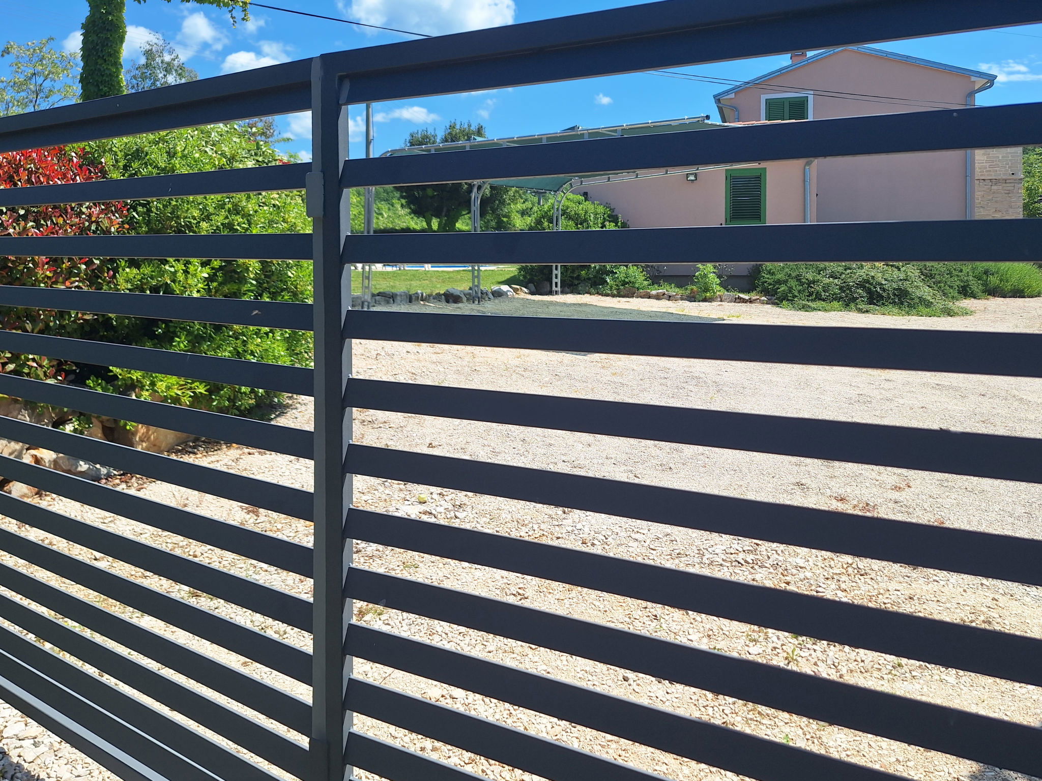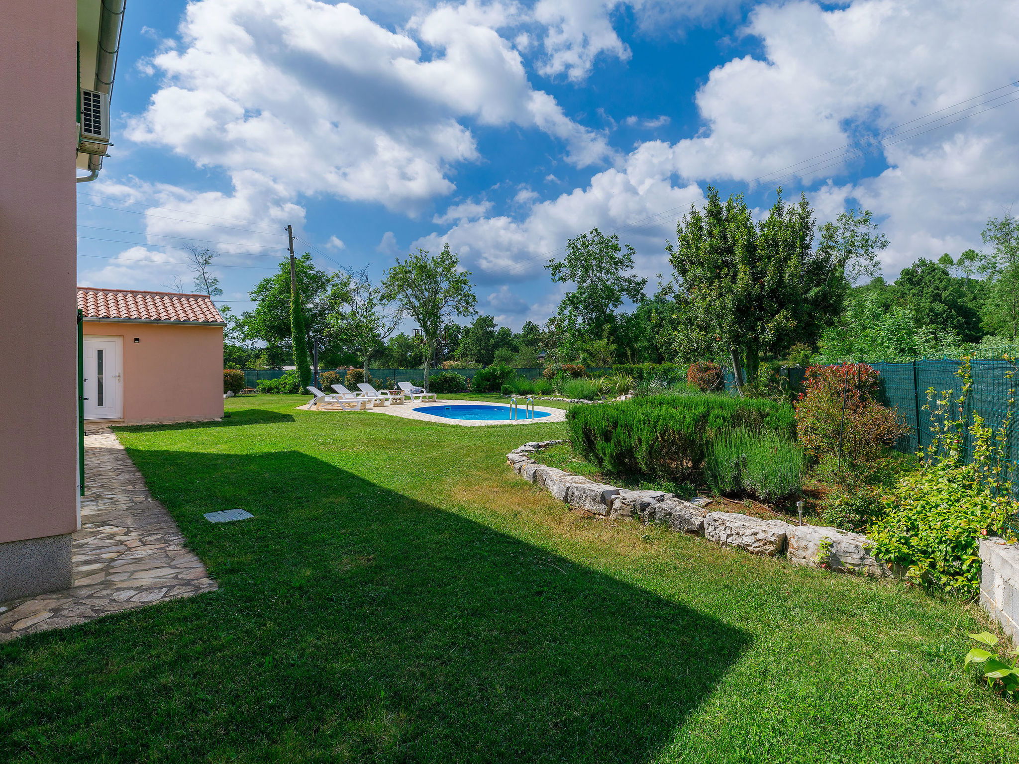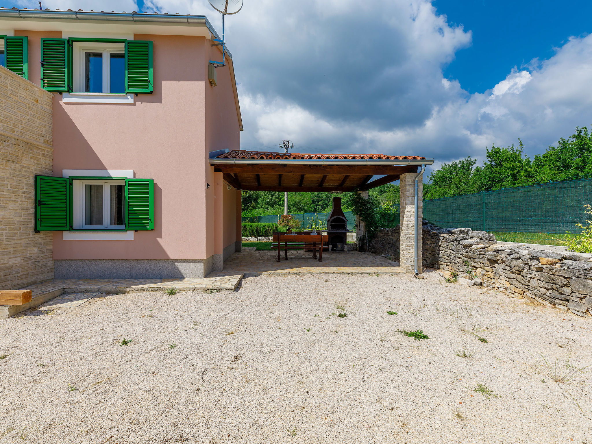 Single-family house "Villa Malini", 2 storeys. In the hamlet Rovini 5 km from the centre of Grožnjan, 17 km from the centre of Motovun, in a quiet, sunny position, 20 km from the sea. Private: property 1'000 m2, garden with lawn, swimming pool (18 m2, depth 150 cm, seasonal availability: 15.May. - 30.Sep.). Outdoor shower, terrace (26 m2), garden furniture, barbecue. In the house: internet access, washing machine. Parking (for 2 cars) at the house on the premises. Shop 5 km, supermarket 8 km, restaurant 5 km, bus stop 10 km, railway station 33 km, pebble beach 20 km. Golf course (18 hole) 25 km, tennis 8 km, walking paths from the house 50 m, cycle lane 500 m. Nearby attractions: Aquapark 18 km.