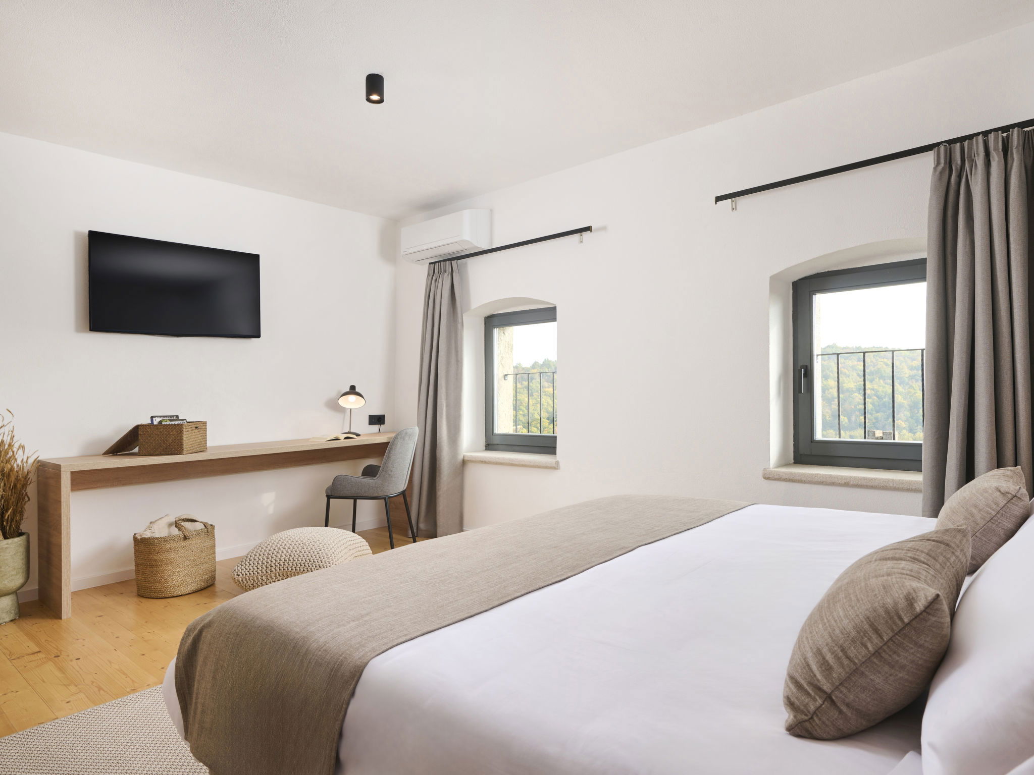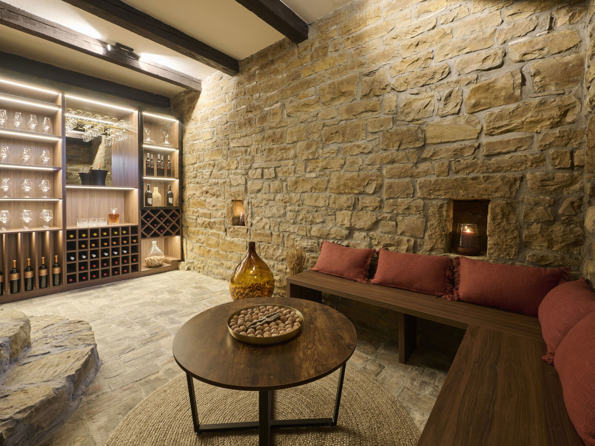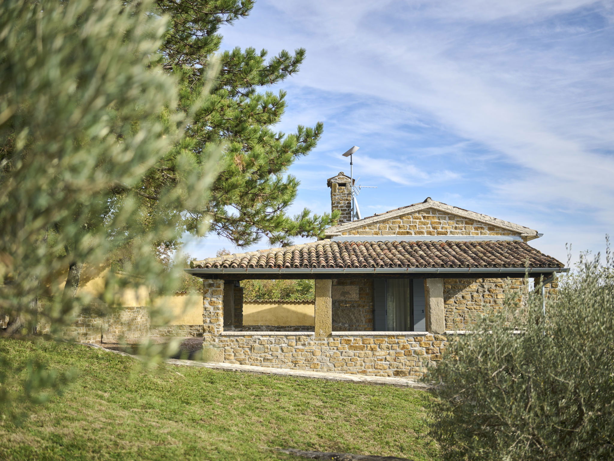 10-room villa 490 m2 on 4 levels. Spacious, fully renovated in 2024, rustic and tasteful furnishings: billiard room with open-hearth fireplace and TV. Exit to the swimming pool. 1 room with 1 french bed (180 cm, length 200 cm), shower/bidet/WC, TV and air conditioning. 1 room with 2 beds (90 cm, length 200 cm), shower/bidet/WC, TV and air conditioning. Shower/WC. On the lower ground floor: shower, Sauna. Upper floor: 1 room with 1 french bed (180 cm, length 200 cm), TV and air conditioning. 1 room with 1 french bed (180 cm, length 200 cm), shower/bidet/WC, TV and air conditioning. Exit to the terrace. 1 room with 1 french bed (180 cm, length 200 cm), shower/bidet/WC, TV and air conditioning. (spiral staircase) living/dining room with TV and air conditioning. Exit to the terrace. 1 room with 2 beds (90 cm, length 200 cm), TV and air conditioning. Open kitchen (oven, dishwasher, 4 induction hot plates, toaster, kettle, freezer). 2nd upper floor: living/dining room with TV and air conditioning. Exit to the terrace. Open kitchen (oven, dishwasher, 4 induction hot plates, toaster, kettle, microwave, freezer, electric coffee machine). Shower/WC, double hand-basin. Wood heating, forced-air heating. Terrace 10 m2, roofed terrace 15 m2, roofed. Terrace furniture, barbecue (portable), deck chairs. Beautiful view of the countryside. Facilities: iron, children's high chair, baby cot, hair dryer, logs (free). Internet (WiFi, free). Please note: non-smoking house. Maximum 2 pets/ dogs allowed. One house: sauna and hot tub in the basement, billiard room and wine cellar (extra charge) on the ground floor, 3 bedrooms on the 1st floor, living room and open kitchen on the 2nd floor. Second house: 2 bedrooms on the ground floor, living room, open kitchen and 1 bedroom on the 1st floor.