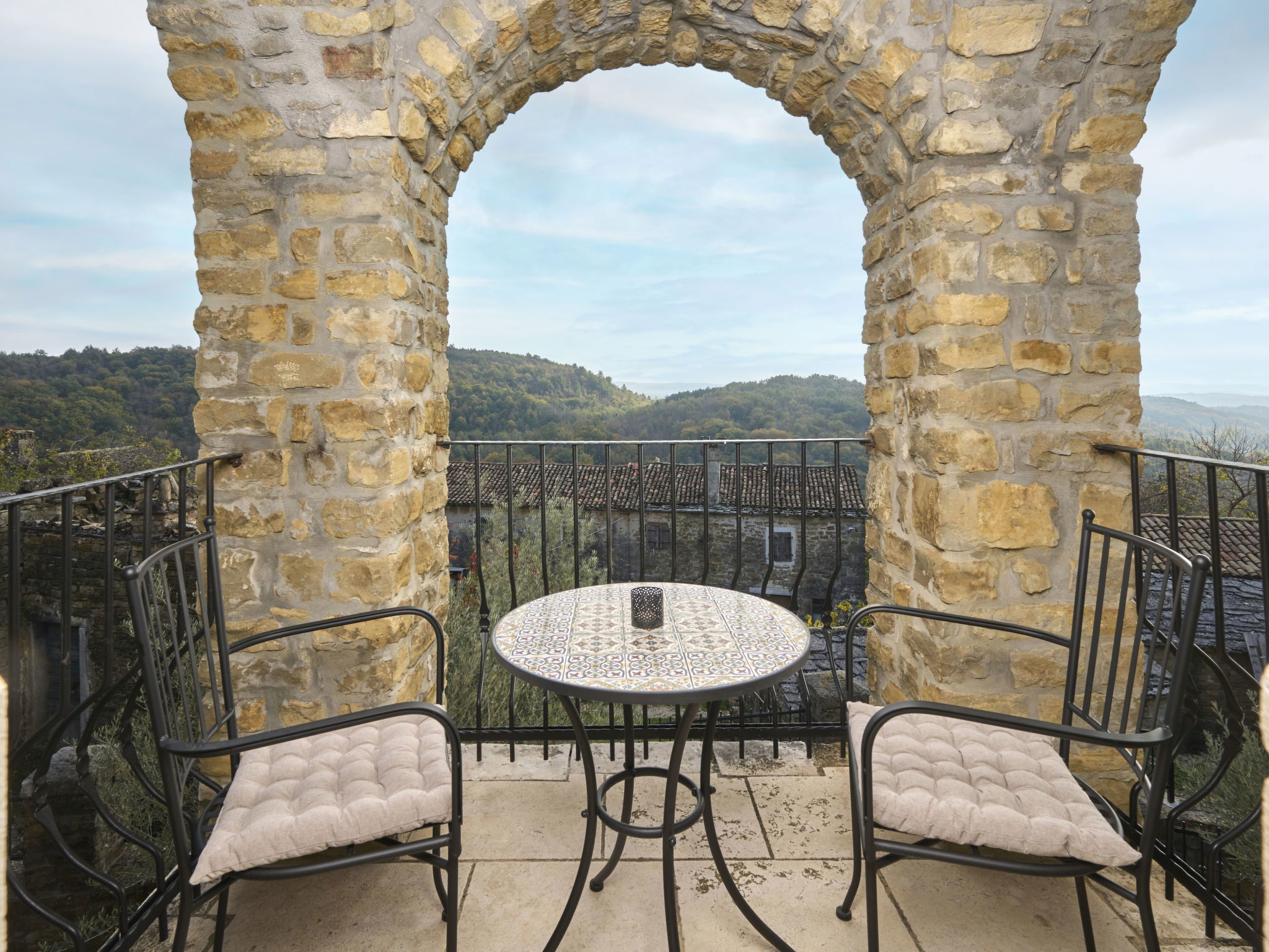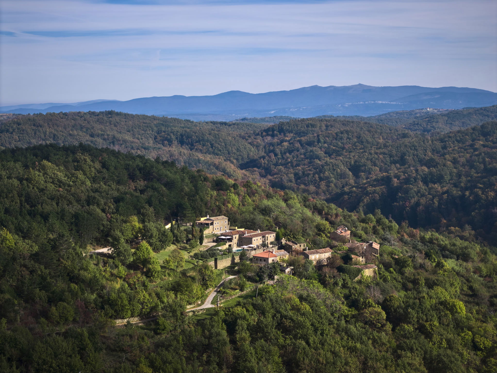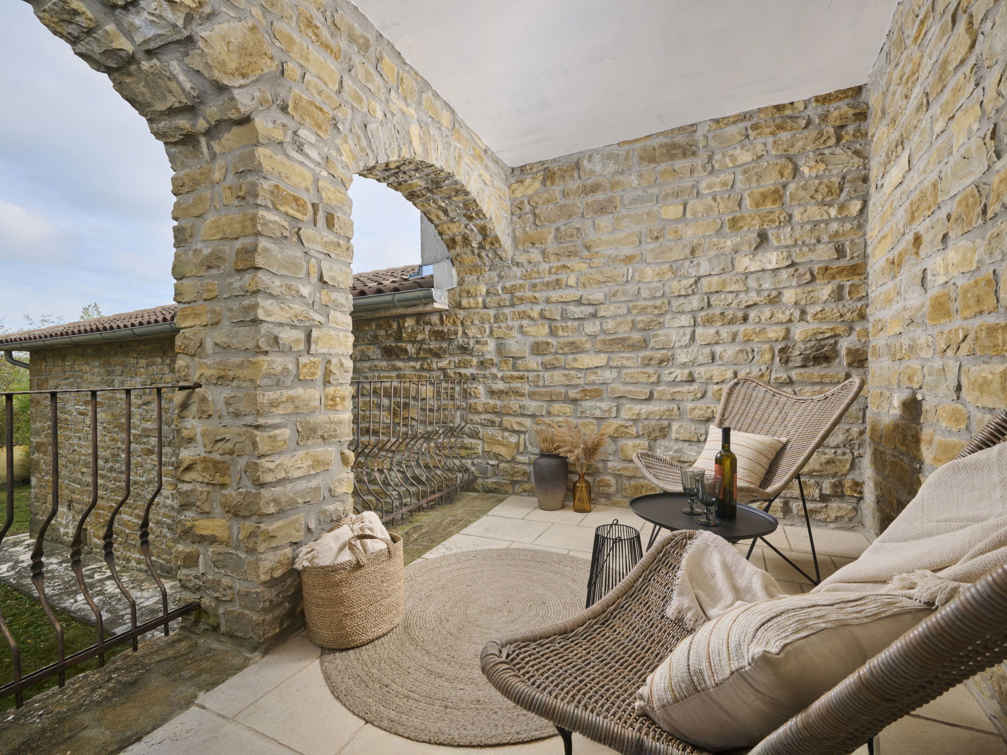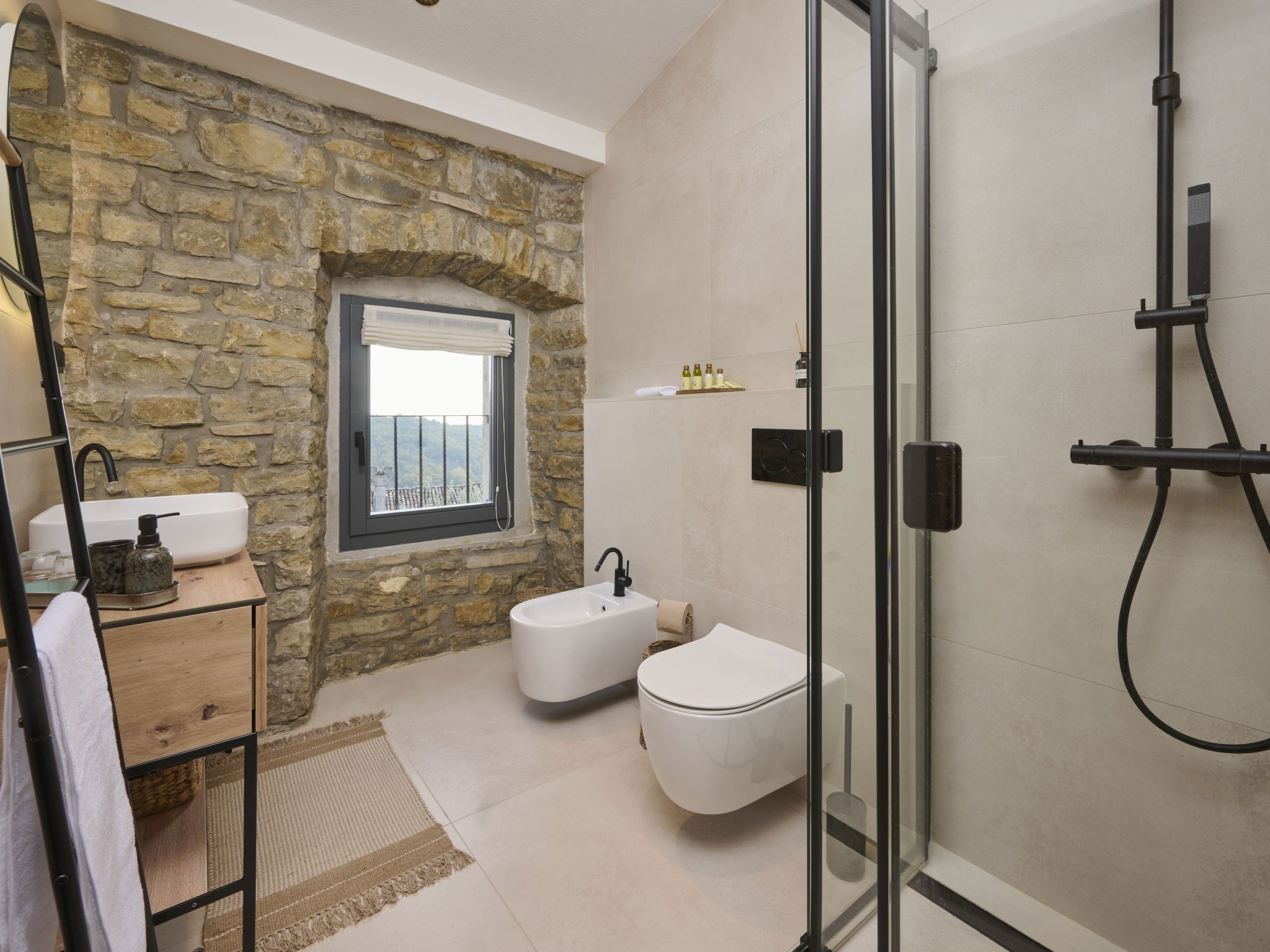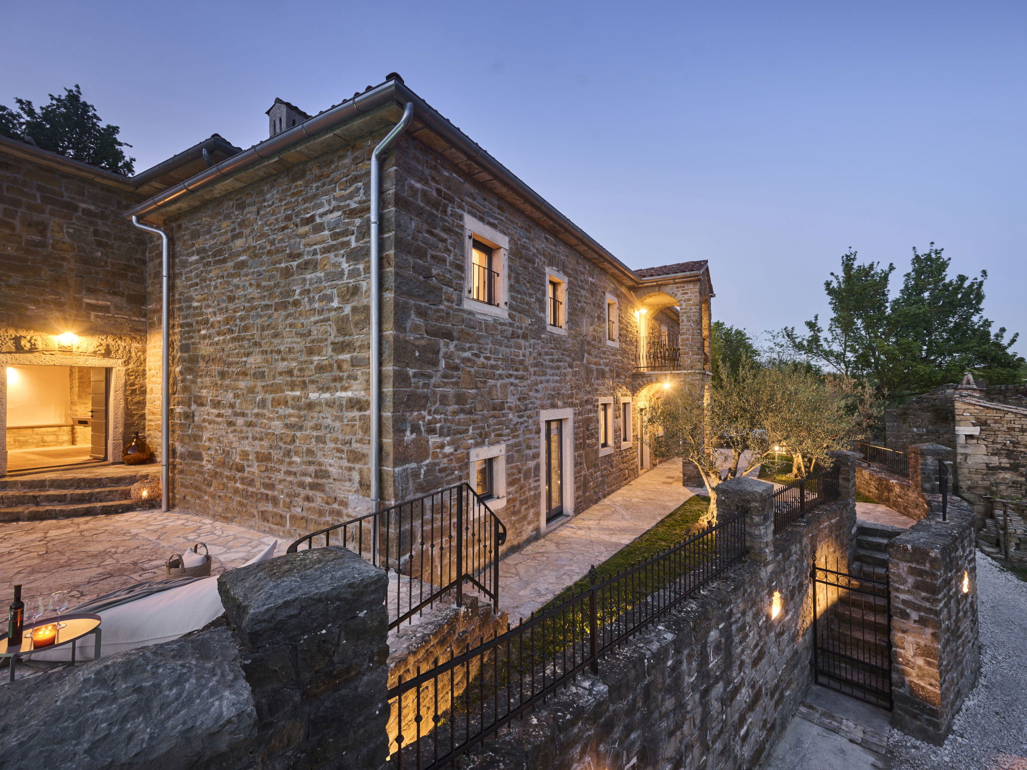 Very beautiful, rustic villa "Stanzia Butori", 4 storeys, renovated in 2025, surrounded by trees. In the hamlet Butori 12 km from the centre of Grožnjan, 20 km from the centre of Motovun, 24 km from the centre of Umag, in a quiet, sunny position, 21 km from the sea, 2.5 km from the lake, in a cul-de-sac, in the countryside. Private: property 3'000 m2 with lawn and trees, swimming pool heated (60 m2, depth 110 - 150 cm, seasonal availability: 01.May. - 01.Oct.) with internal staircase. Unconventional pool shape. Outdoor shower, table tennis, volleyball, badminton, terrace (25 m2), garden furniture, barbecue house, pool maintenance by the owner/gardener. In the house: internet access, sauna, hot tub, spa area, billiard table, table football, washing machine, tumble dryer, bicycle rental. (extra). Cook on request (extra). Parking (for 5 cars) at the house on the premises. Shop 13 km, supermarket 13 km, restaurant 6 km, bus stop 21 km, rocky beach 21 km. Walking paths from the house 50 m, cycle lane 100 m. Nearby attractions: Istrian desert 5 km, Waterfall Butori 2.5 km, Winery 12 km. Please note: airfield 86 km from the property. Swimming pool heated (extra). It is necessary to announce 7 days in advance if the pool heating is required. Video surveillance of the driveway and parking. Available: darts (included). The unit consists of 2 houses rented as one unit.