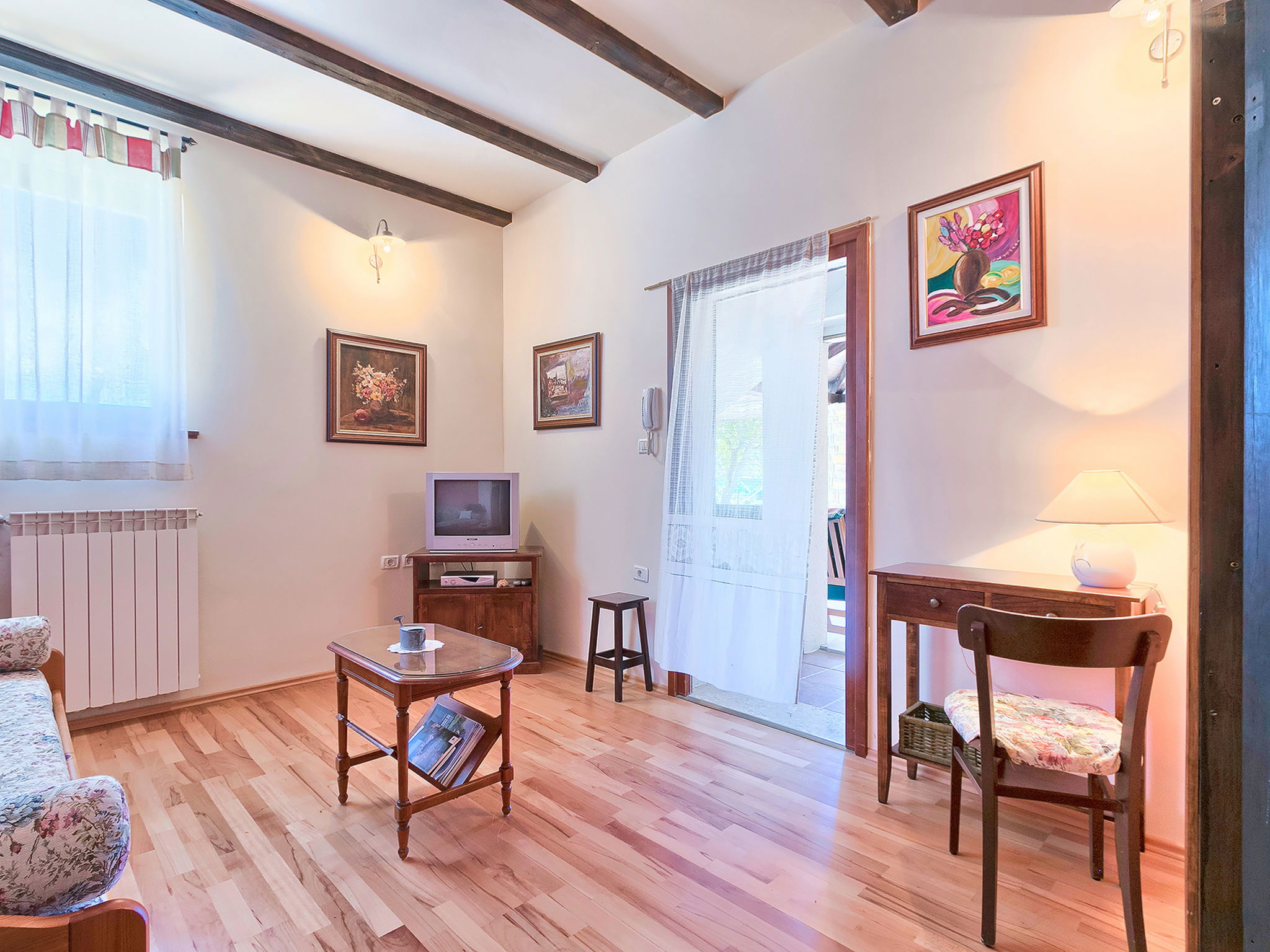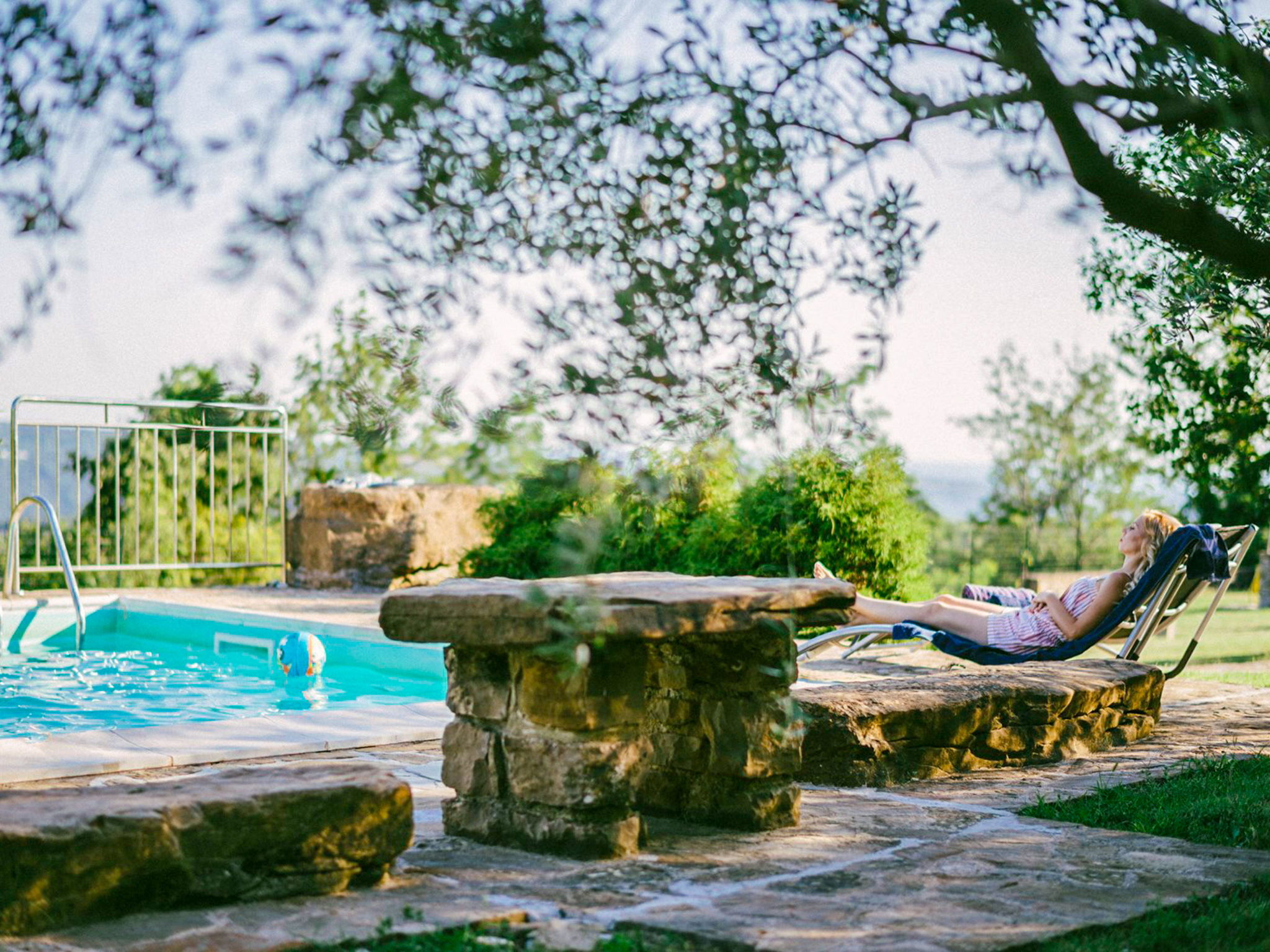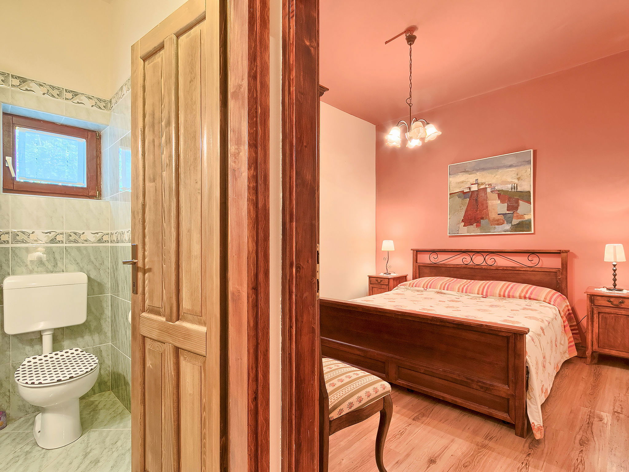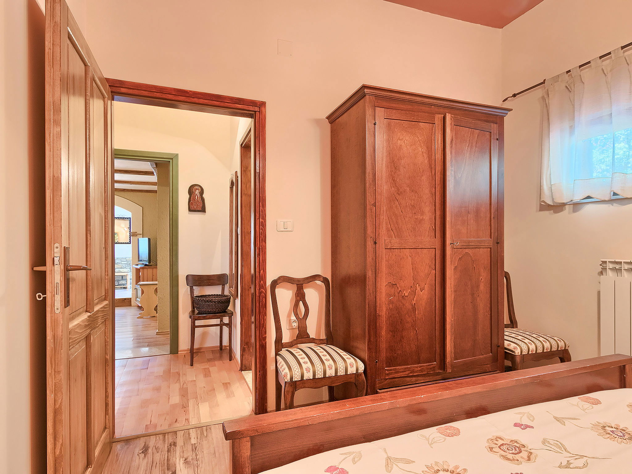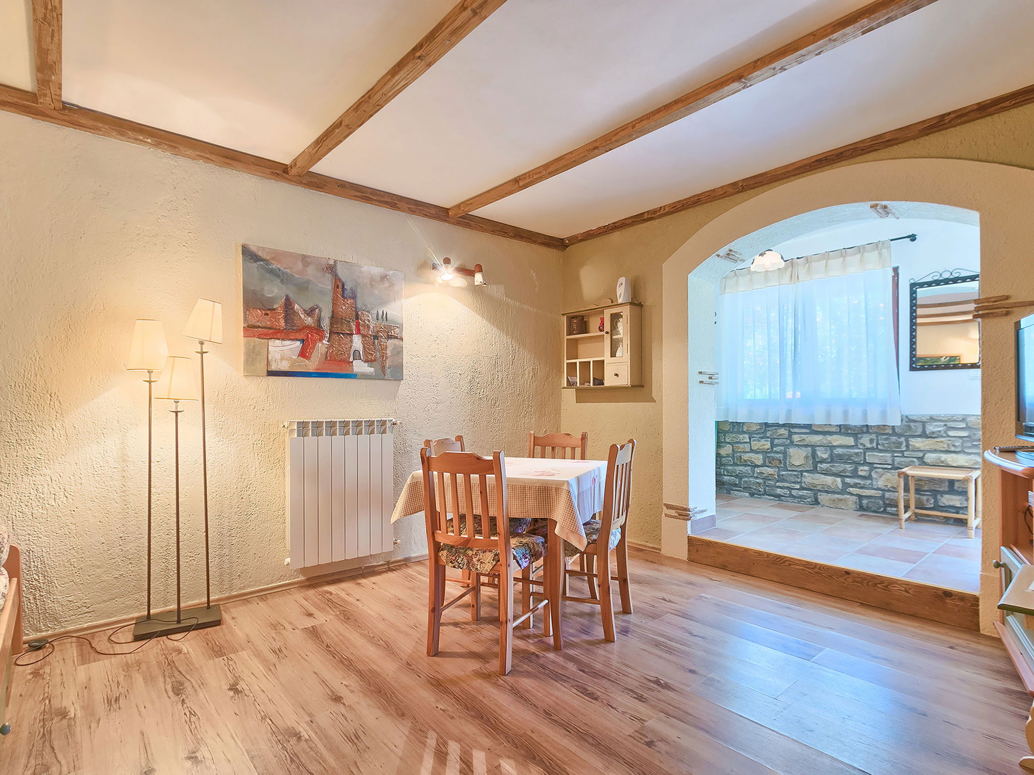 Beautiful 3-family house "Margherita", 2 storeys. In the hamlet Peroj 1 km from the centre of Grožnjan, in a quiet, sunny, elevated position, 20 km from the sea. Private: property 3'000 m2 (fenced), beautiful garden with lawn and wildlife garden, swimming pool angular (8 x 4 m, depth 140 cm, seasonal availability: 01.May. - 29.Sep.). Outdoor shower, barbecue. In the house: internet access, washing machine. Parking at the house on the premises. Shop 1 km, supermarket 8 km, restaurant 1 km, bus stop 8 km, railway station 35 km, pebble beach 20 km. Walking paths from the house 100 m, cycle lane 150 m.