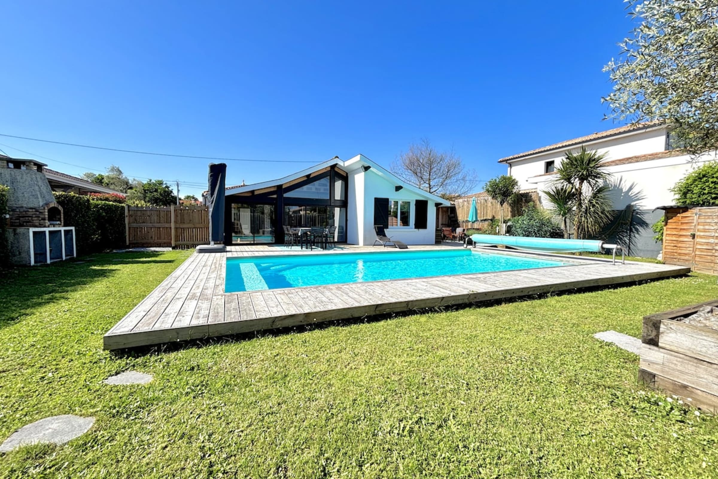 Located in a peaceful and secluded setting, this elegant, fully air-conditioned, single-story villa welcomes you for a stay dedicated to comfort, relaxation, and the art of living in the Arcachon Basin.
