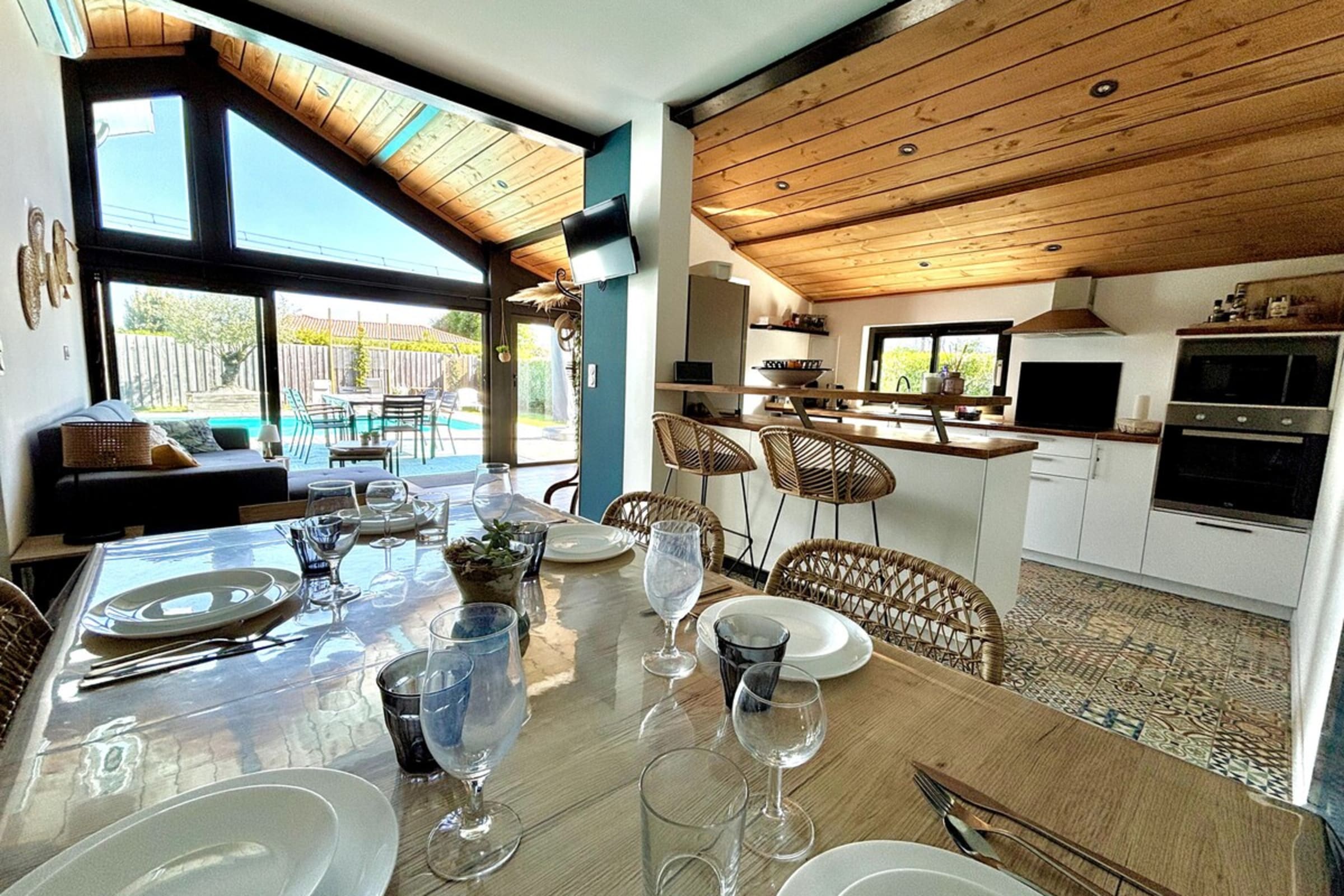 Designed to accommodate up to 6 guests and a baby, the house captivates from the moment you enter with its brightness and open-plan layout that seamlessly connects to the outdoors.