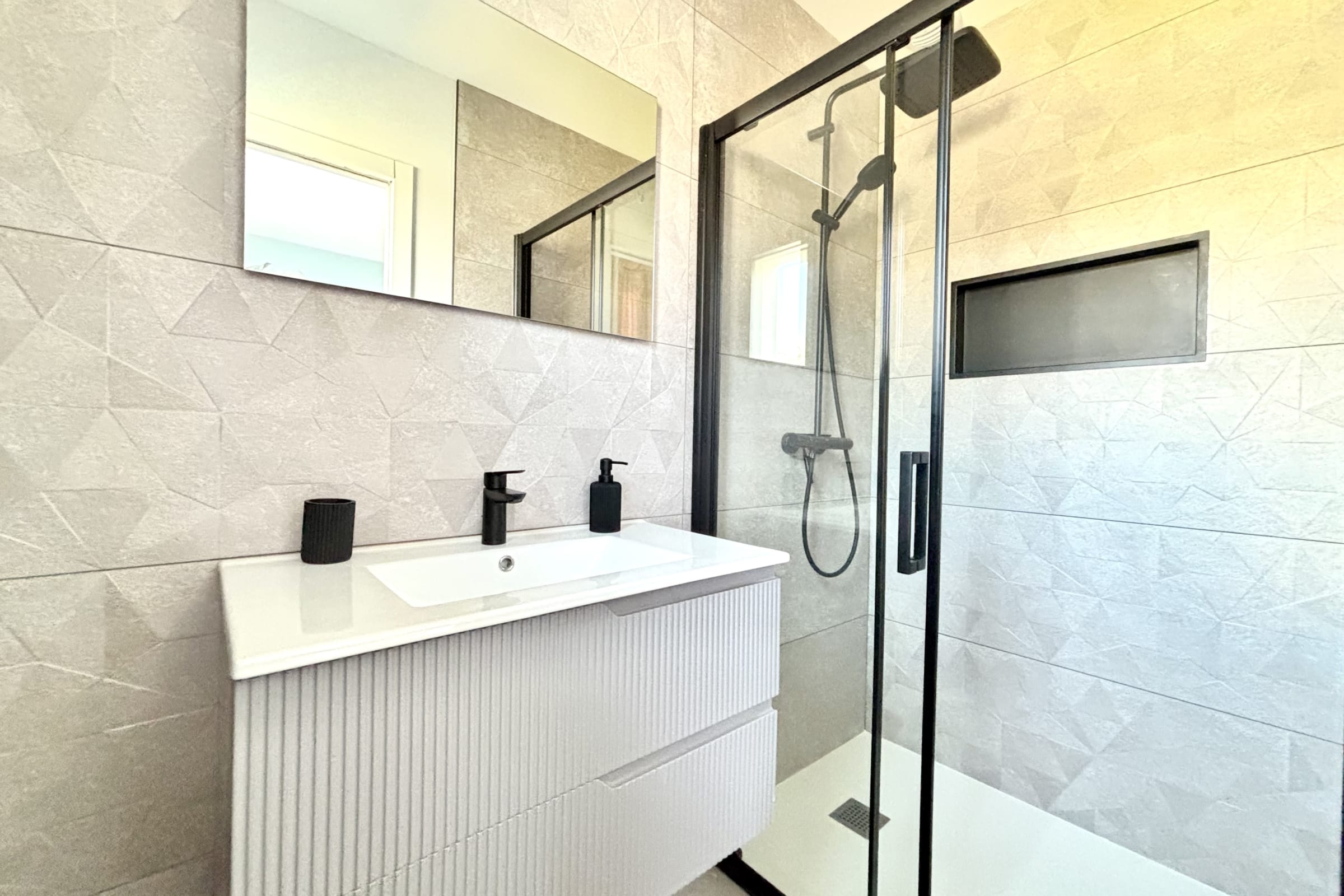 The sleeping area offers three double bedrooms, each with its own private shower room, ensuring comfort, privacy, and independence for every guest.