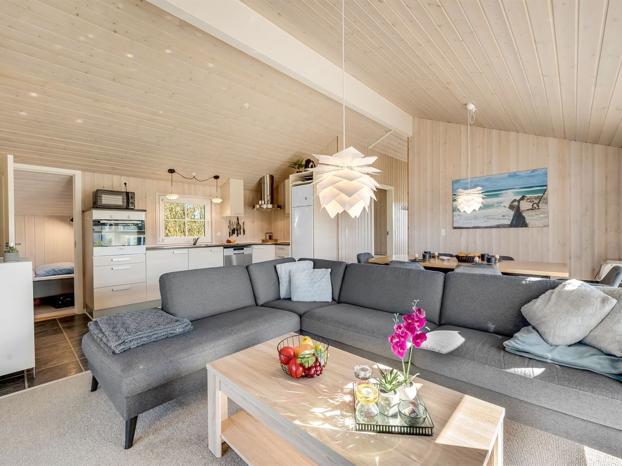 "Shalin" - 1.4km to the fjord", 3-room house 76 m2. Object suitable for 6 adults + 1 child. Living room with TV and CD-player. 1 room with 1 double bed. 1 room with 2 beds. 1 room with 1 double bed. Kitchen (oven, dishwasher, 4 ceramic glass hob hotplates, microwave, freezer). Shower/WC, hydro massage bath. Terrace 10 m2, roofed. Facilities: children's high chair, baby cot. Internet (WiFi). Please note: non-smokers only. Maximum 1 pet/ dog allowed. 760-7233