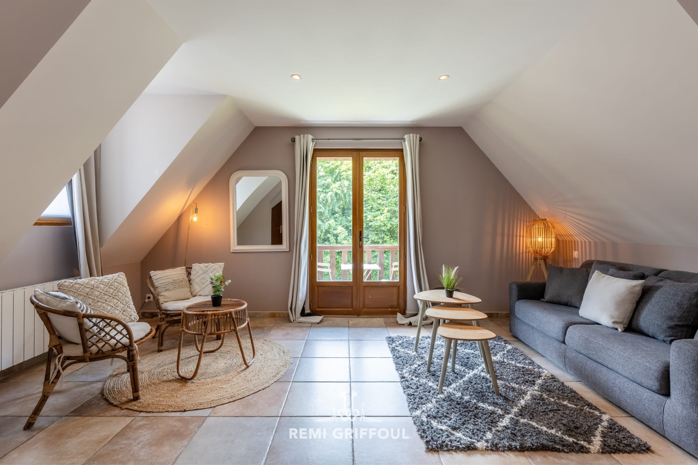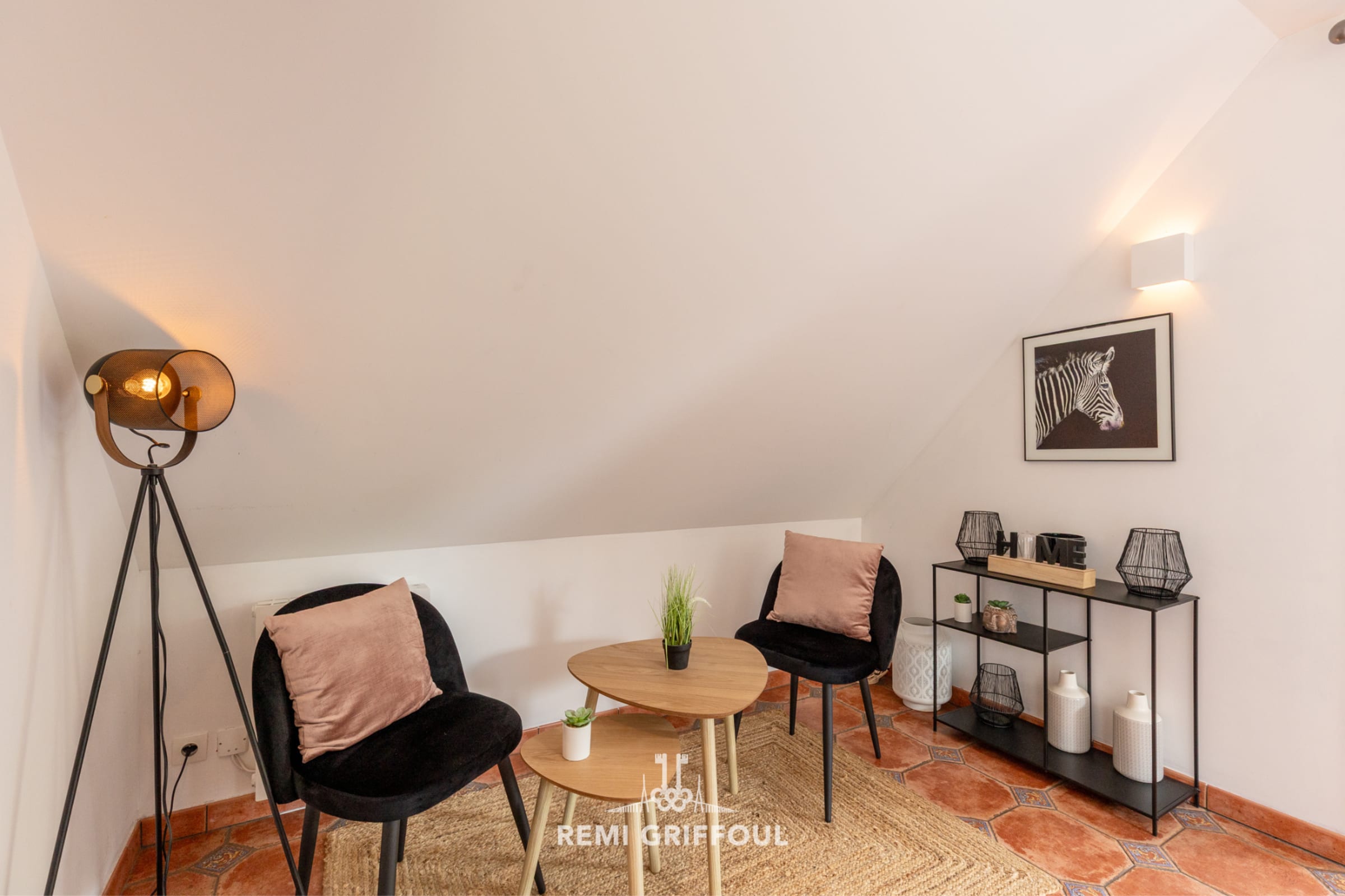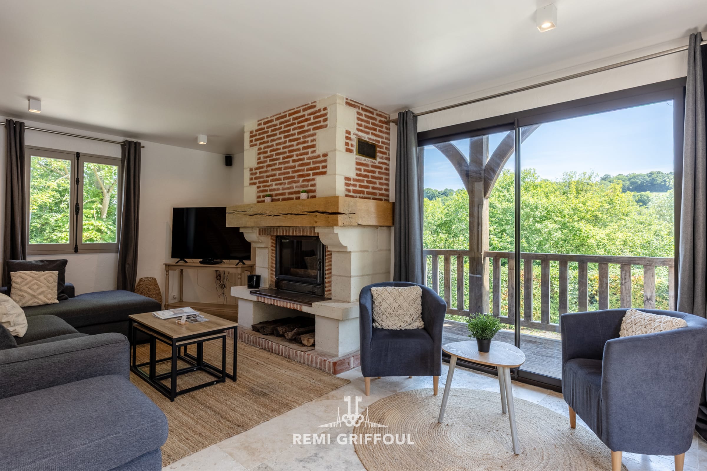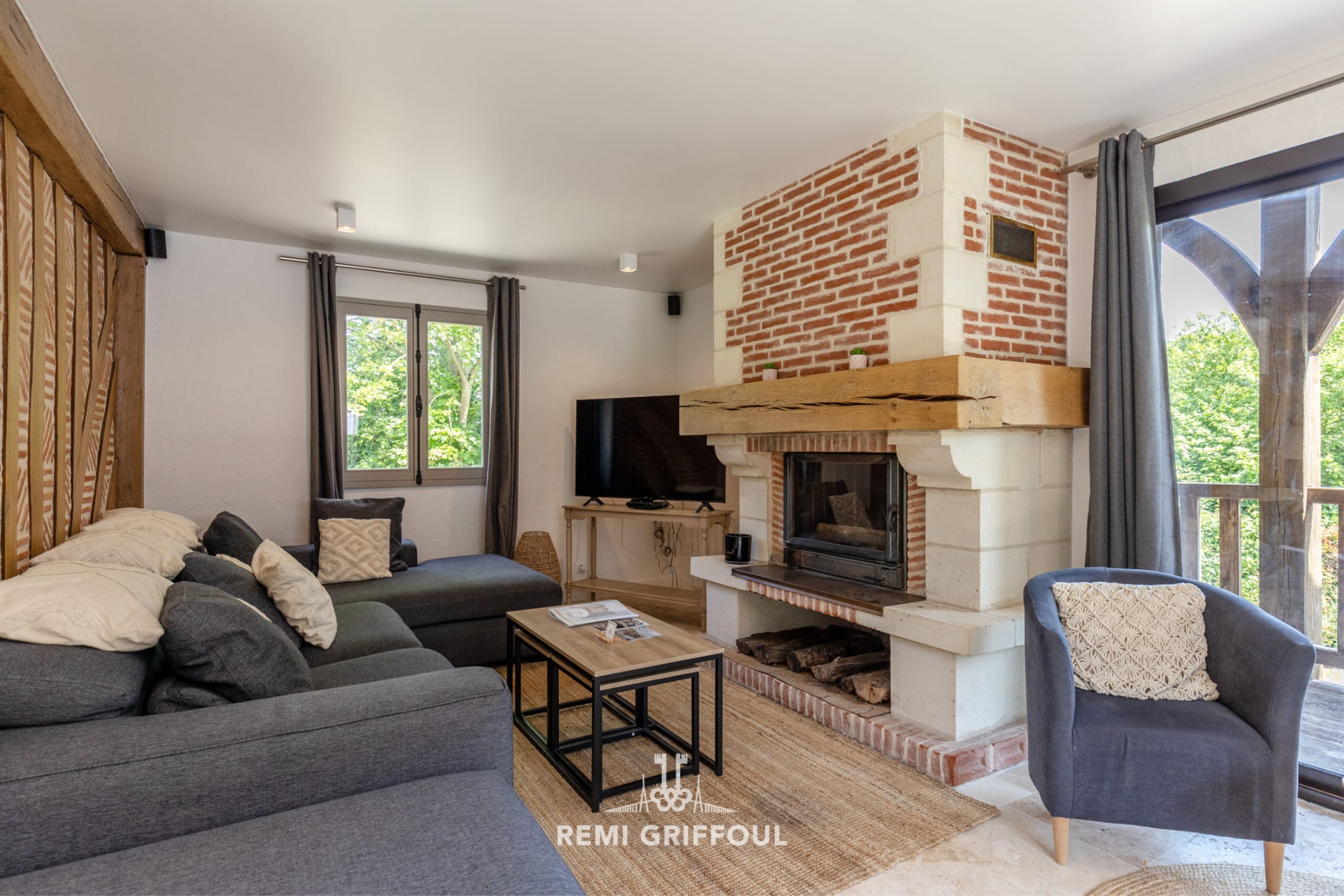 This living room will be the ideal place to get together in summer and winter with your friends or family around the fireplace.