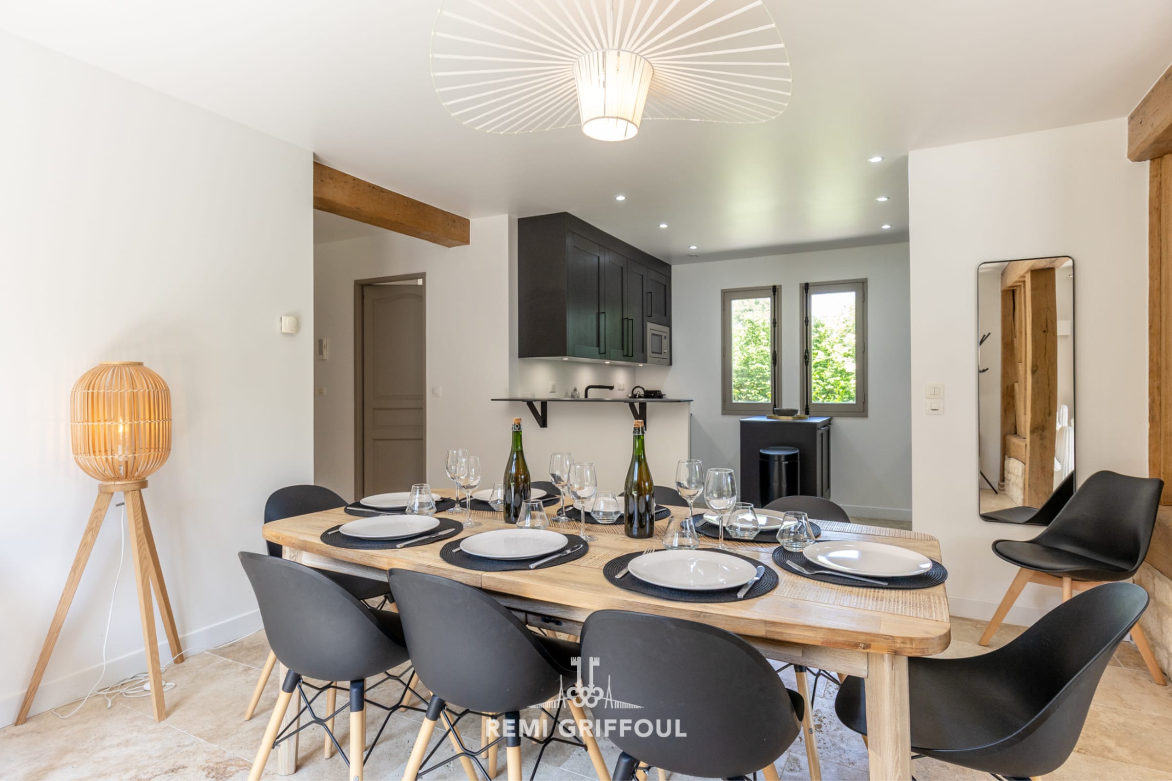 - A pretty equipped kitchen with a dining area overlooking the garden