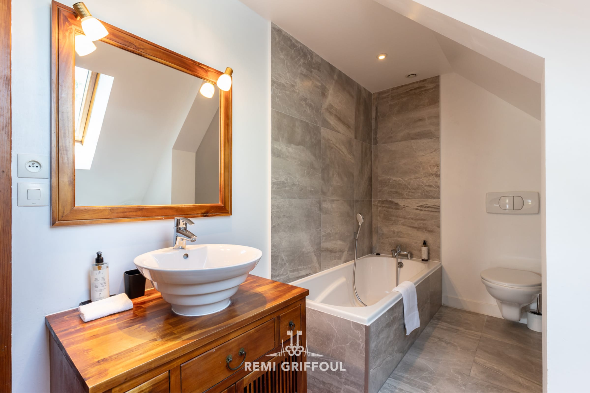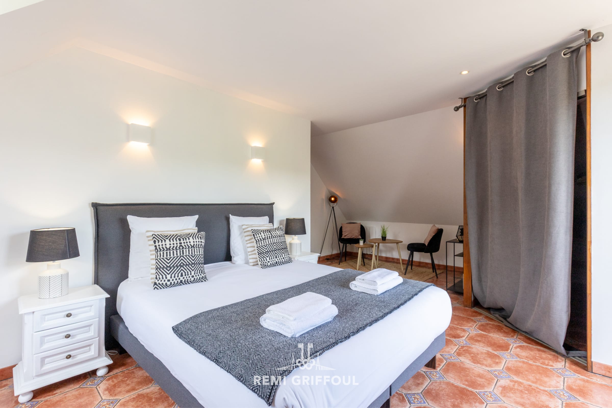 A second spacious bedroom with a Queen size bed (160X200 cm) and on request, a 140X190cm convertible sofa, TV, dressing room, private bathroom and toilet. If you wish to use the sofa bed, please let us know before your stay, a balcony completes this pretty master suite