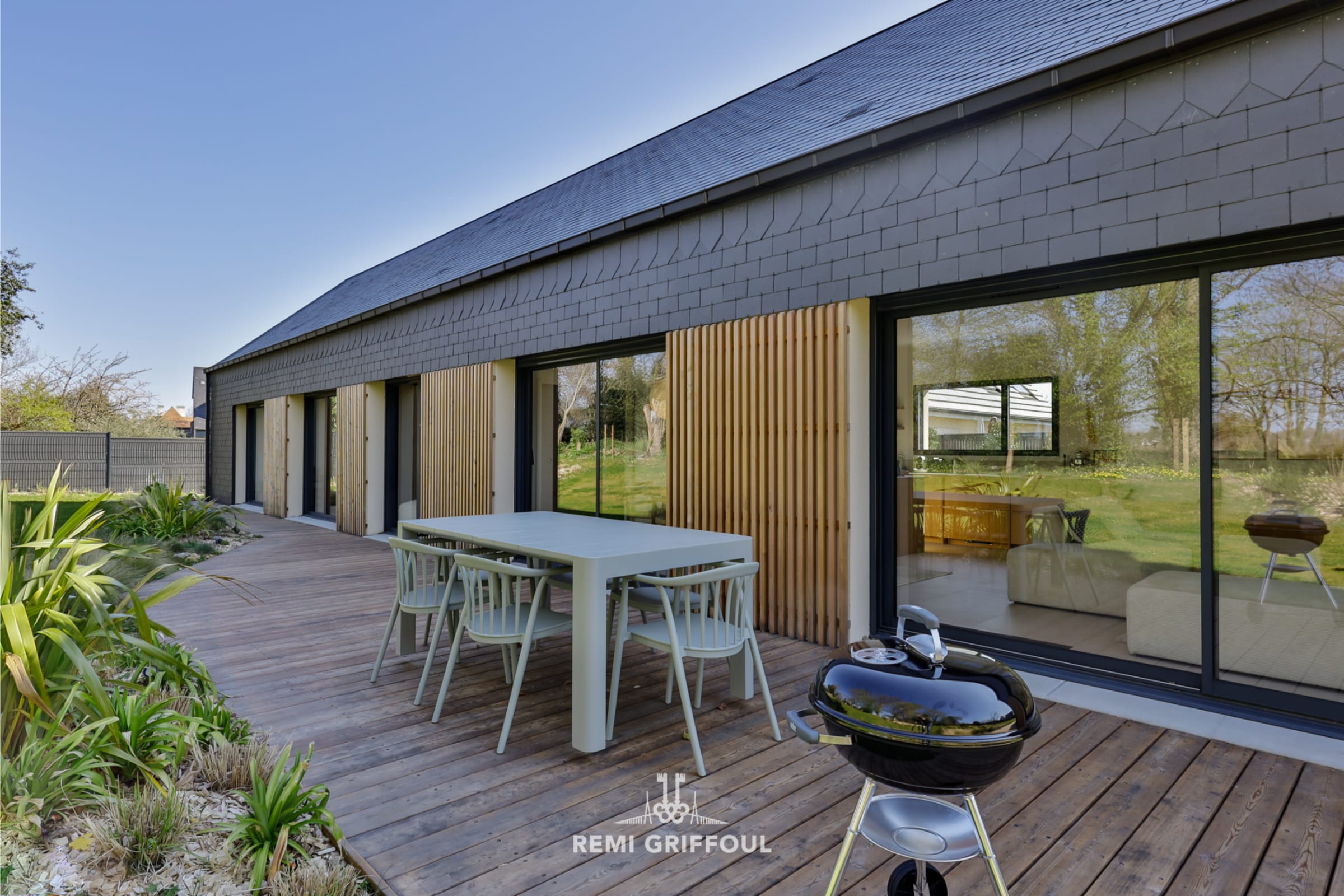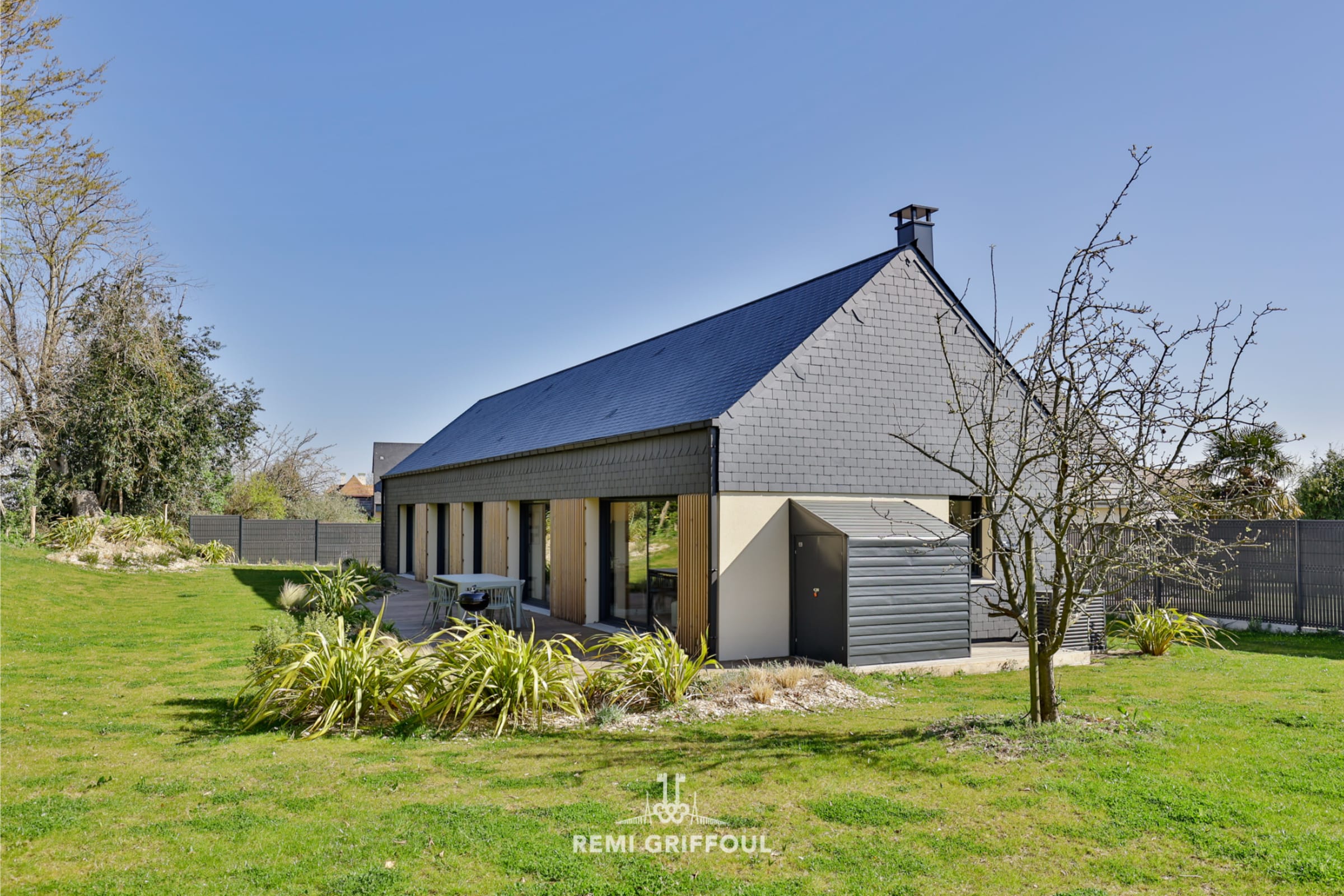 Welcome to "L'Élégance", nestled at the end of a residential cul-de-sac, just a 5-minute drive from the famous port of Honfleur. Discover an exceptional single-story home where contemporary design and high-end amenities come together to offer a unique living environment. Nestled in the heart of a peaceful setting, this 115 m² house captivates with its refined materials, impeccable finishes, and state-of-the-art features.