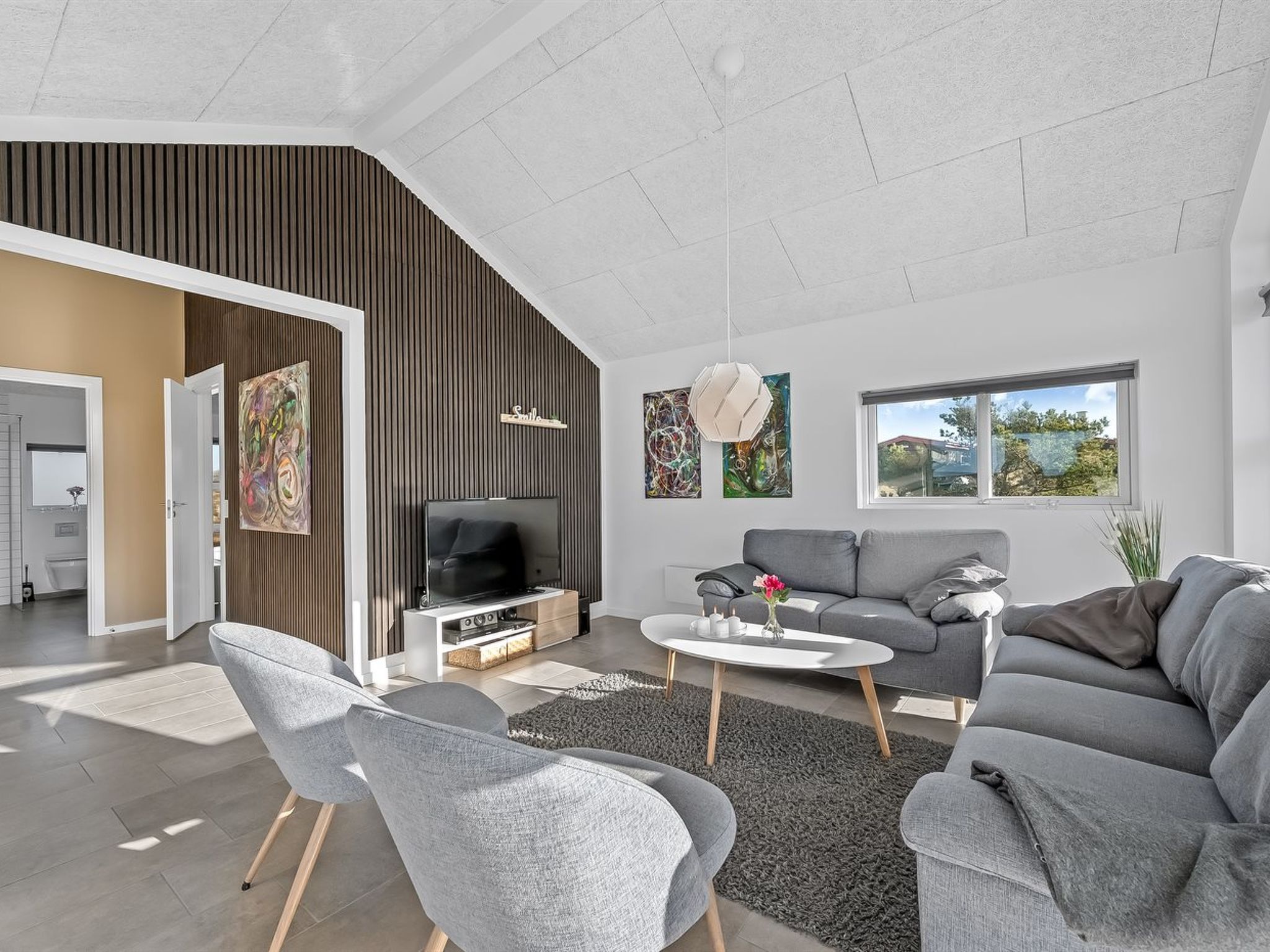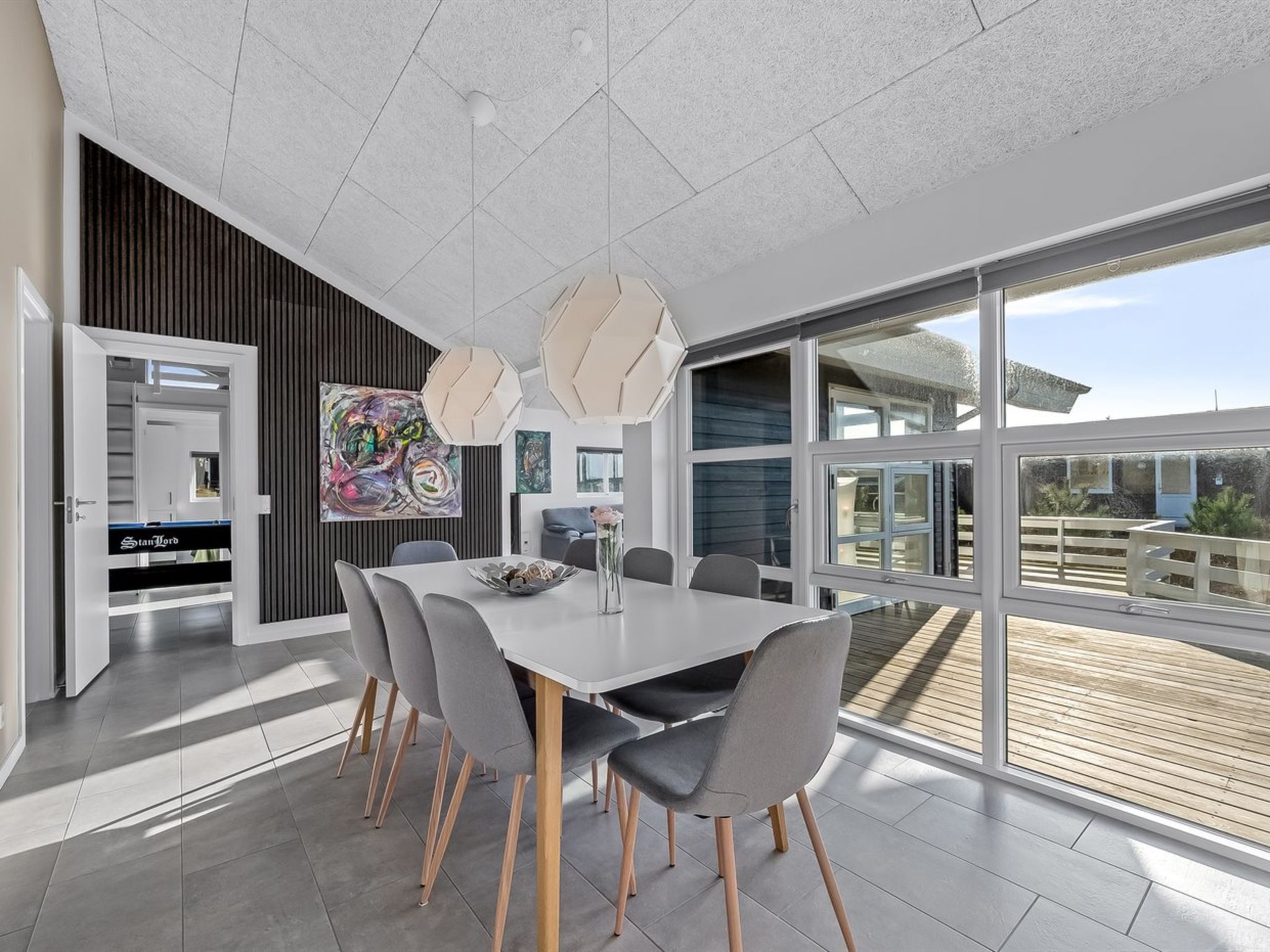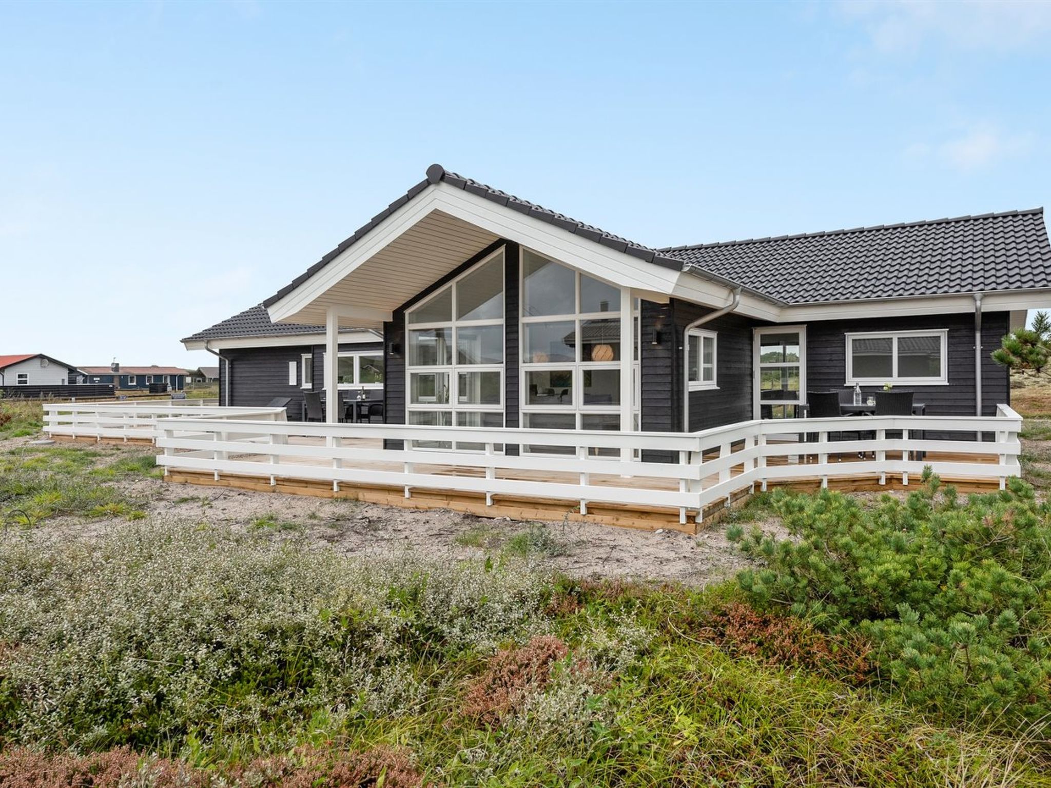 Single-family house, built in 2019. 600 m from the sea. Private: natural state property 1'301 m2. Terrace (67 m2), children's playground (swing). In the house: sauna, table football, washing machine, tumble dryer. Parking at the house. E-charging station. Grocery 1 km. The owner does not accept any youth groups.