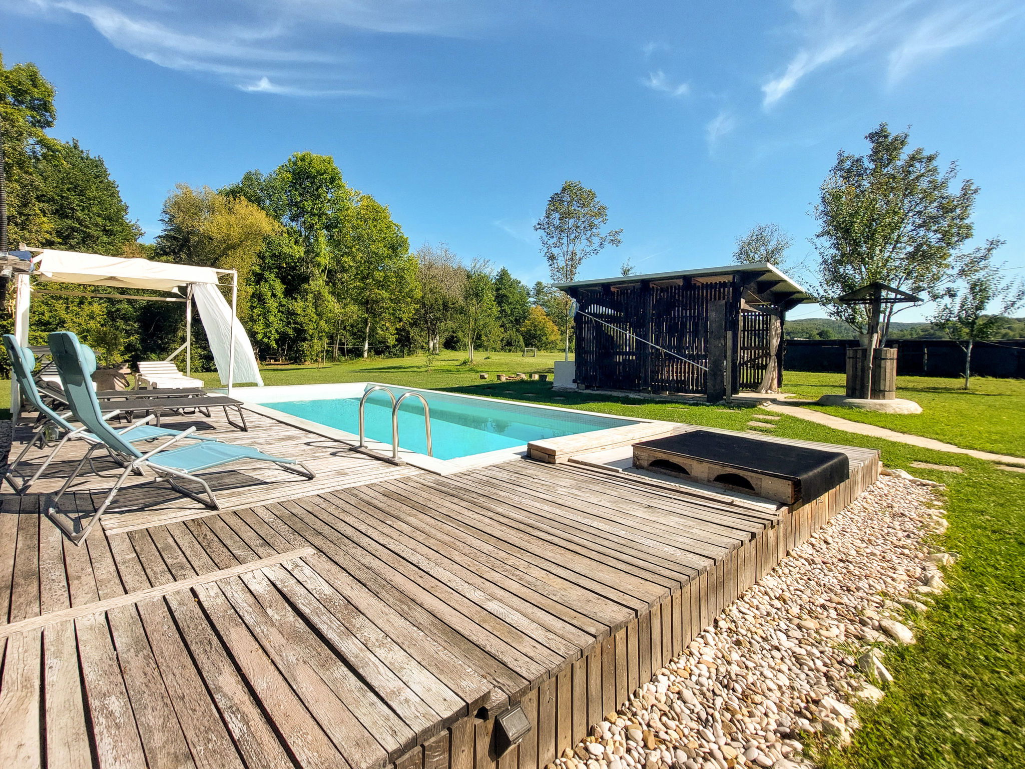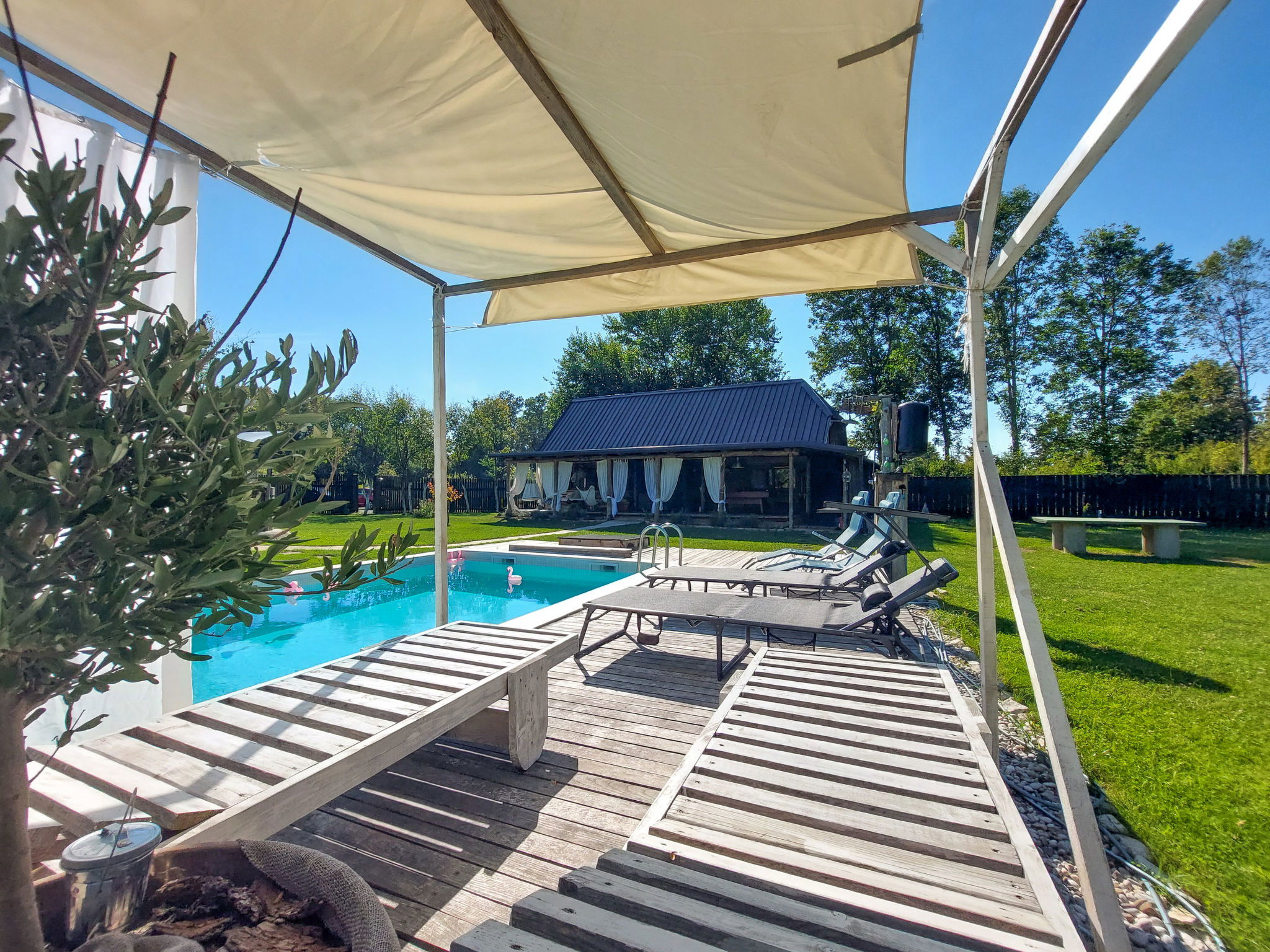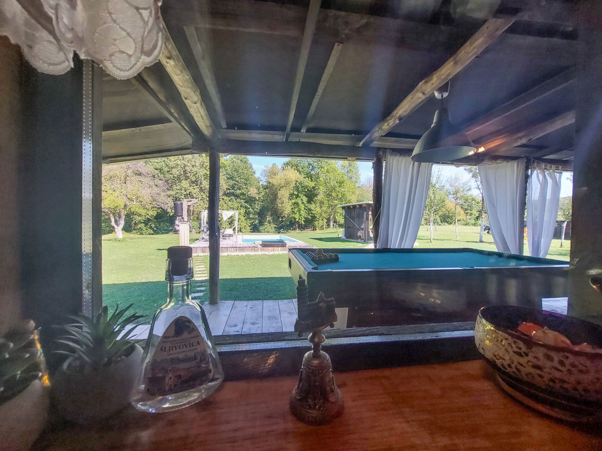 Cosy single-family house "Utinja", 2 storeys in 2024, surrounded by trees and meadows. In the hamlet Skakavac 14.5 km from the centre of Karlovac, 120 m from the sea, 12 km from the river, in the countryside. Private: property 8'000 m2, garden 2'000 m2 with wildlife garden and trees, swimming pool angular (7 x 4 m, depth 140 cm, seasonal availability: 01.May. - 01.Oct.) with internal staircase. Outdoor shower, table tennis, terrace (20 m2), garden furniture, barbecue. In the house: WiFi, sauna (extra). Billiard table, washing machine. Parking (for 4 cars) at the house on the premises. Grocery 950 m, supermarket 10 km, restaurant 1.5 km, bus stop 1 km. Nearby attractions: Rastoke Village 60 km, Baraćeve Caves, Kayaking on the River Mrežnica 55 km. Well-known lakes can easily be reached: Plitvička jezera 85 km. Hiking paths: Memorial Park Petrova Gora 45 km.
